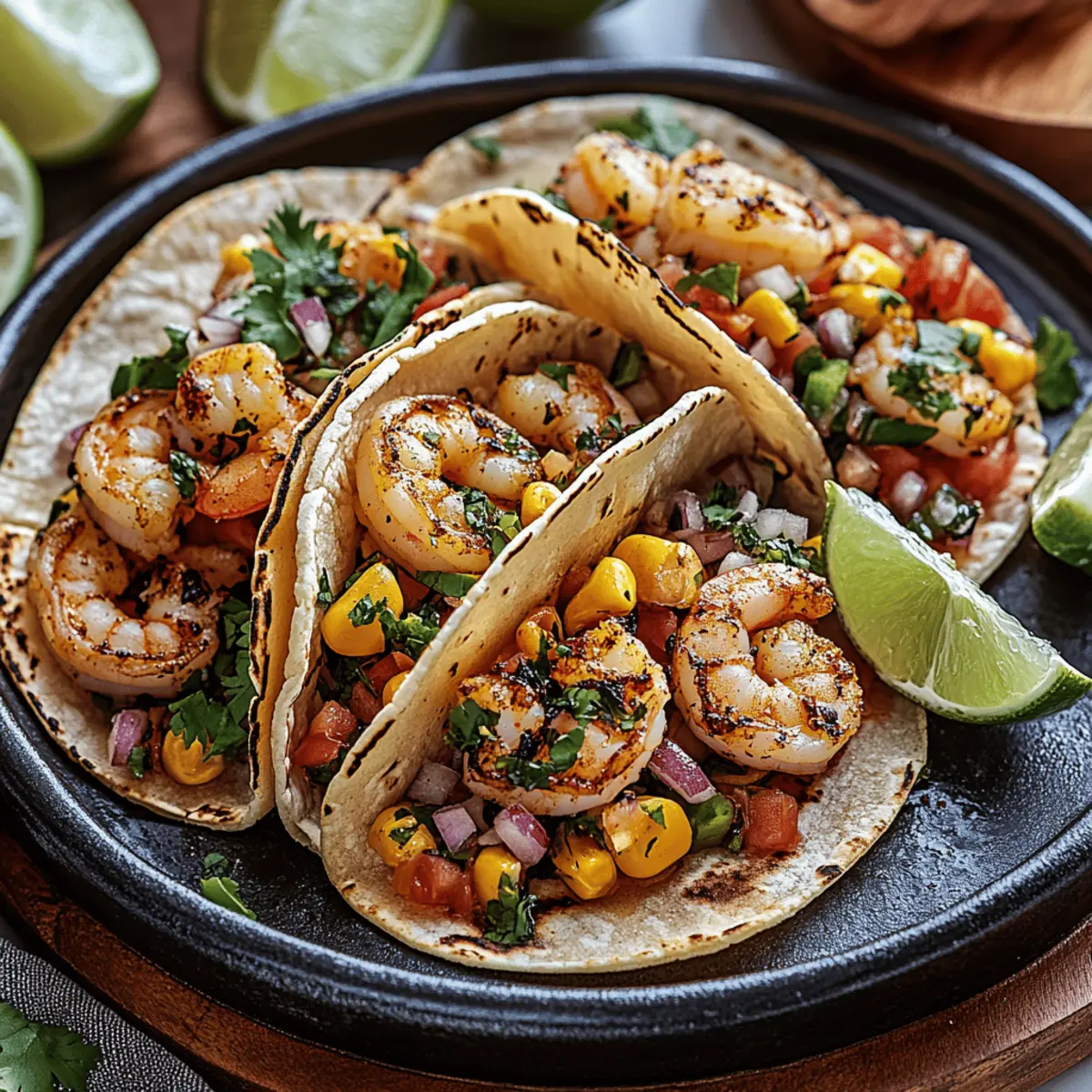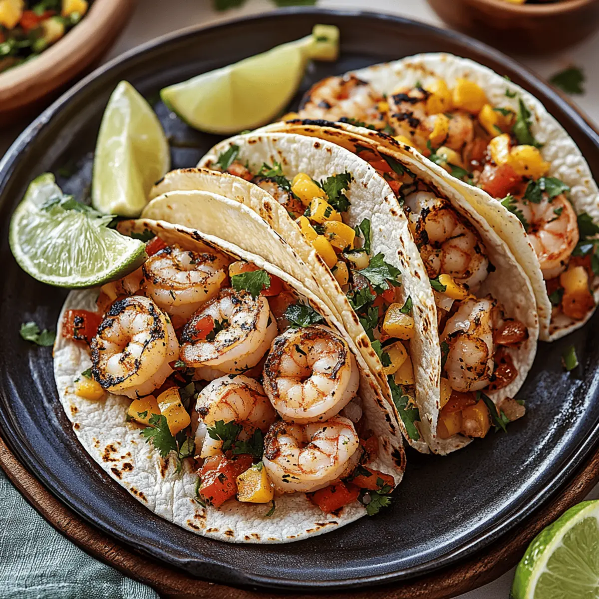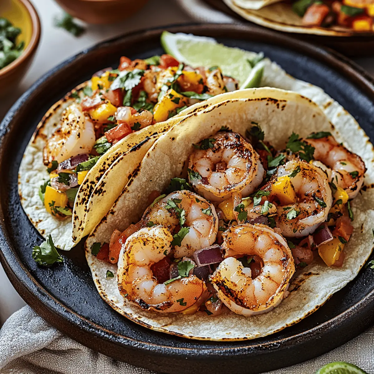 The aroma of sizzling shrimp wafts through the kitchen, teasing my taste buds like a siren’s song. I’m about to dive into making a batch of crispy Air Fryer Shrimp Tacos, and let me tell you, this quick meal is about to become a staple in your home cooking! With perfectly seasoned shrimp taking center stage and fresh toppings adding a burst of color and flavor, these tacos are not just delicious—they’re also gluten-free and made without the hassle of excess oil. The air fryer technology means you’ll spend less time cooking and more time enjoying time around the table with family and friends. Intrigued? Let’s uncover the steps to creating a weeknight dinner that’s sure to impress! Why You’ll Crave These Tacos Simplicity: Preparing Air Fryer Shrimp Tacos is a breeze! With minimal prep and cook time, you’ll have dinner on the table in 30 minutes or less. Fresh and Flavorful: Enjoy a delightful blend of crispy shrimp and vibrant toppings that awaken your taste buds, making every bite a celebration. Versatility: Customize your tacos with various proteins or vegetables, ensuring there’s a version to please everyone at your table. Healthy Cooking: The air fryer method means you get crispy texture without the excess oil, making these tacos a guilt-free indulgence! Crowd-Pleaser: Impress your family and friends alike with this delicious recipe that’s sure to earn rave reviews at any gathering. You’ll find more inspiration in these easy taco variations! Air Fryer Shrimp Tacos Ingredients For the Shrimp • Shrimp – Fresh or thawed shrimp is best for a juicy bite. • Olive Oil – Helps spices stick and adds a silky texture; substitute with avocado oil if needed. • Spice Blend – Mix chili powder, garlic powder, paprika, salt, and pepper for a flavorful kick; adjust to your spice preference. For the Tacos • Tortillas – Corn tortillas offer a classic taste, but feel free to use flour tortillas if you prefer. • Vegetables – Shredded cabbage and avocado add refreshing crunch and creaminess; use any fresh veggies on hand for variety. • Cilantro – Adds a burst of freshness; skip it if you’re not a fan! • Lime Juice – Essential for brightness in flavors; don’t skip this step for your Air Fryer Shrimp Tacos. Feel free to get creative with your toppings and make these tacos your own! Step‑by‑Step Instructions for Air Fryer Shrimp Tacos Step 1: Prepare the Shrimp Begin by rinsing and patting the shrimp dry with paper towels to ensure the oil and spices adhere well. In a mixing bowl, toss the shrimp with olive oil and your spice blend of chili powder, garlic powder, paprika, salt, and pepper. Make sure each shrimp is evenly coated for maximum flavor, allowing them to marinate for about 10 minutes while you preheat the air fryer. Step 2: Preheat the Air Fryer Preheat your air fryer to 400°F (200°C) for about 3-5 minutes. This step is crucial as it ensures the shrimp cook evenly and achieve that perfect crispy texture. Once the air fryer is ready, carefully arrange the marinated shrimp in a single layer in the basket. Avoid overcrowding to maintain the desired crunchiness. Step 3: Cook the Shrimp Cook the shrimp in the air fryer for 6-8 minutes, shaking the basket halfway through to promote even cooking. You’ll know they’re done when the shrimp are pink and crispy on the outside. Once cooked, carefully remove them from the air fryer and set aside, while keeping them warm. Step 4: Warm the Tortillas While the shrimp cool slightly, it’s time to warm the tortillas. Heat a skillet over medium heat and warm each tortilla for about 1 minute on each side until pliable, or place them in the air fryer for 2 minutes until slightly toasted. This will enhance their flavor and texture for the ultimate Air Fryer Shrimp Tacos experience. Step 5: Assemble the Tacos Now for the fun part—assembling your tacos! Start by layering each tortilla with a generous portion of crispy shrimp, followed by your desired toppings such as shredded cabbage and slices of avocado. Feel free to customize with any fresh vegetables for a fresh crunch that will elevate your meal. Step 6: Add Finishing Touches For that zesty kick, squeeze fresh lime juice generously over the assembled tacos. This brightens the flavors beautifully, making each bite truly refreshing. Optional garnishes like cilantro can be added for a burst of color and taste. Your delicious Air Fryer Shrimp Tacos are now ready to be served! Storage Tips for Air Fryer Shrimp Tacos Fridge: Store leftover shrimp and toppings separately in airtight containers for up to 2 days to maintain freshness and prevent sogginess. Freezer: For longer storage, raw, seasoned shrimp can be frozen in a single layer on a baking sheet, then transferred to a freezer bag for up to 3 months. Cook from frozen. Reheating: To reheat shrimp, place them in the air fryer at 400°F for about 4-5 minutes, until heated through. Warm tortillas briefly in a skillet before assembling your Air Fryer Shrimp Tacos again. Tip: It’s best to keep shrimp and toppings separate until ready to eat to ensure everything stays delicious and crisp! What to Serve with Crispy Air Fryer Shrimp Tacos Embrace the vibrant possibilities that accompany your crispy air fryer shrimp tacos, turning this dish into a delightful feast just waiting to please your loved ones. Mexican Street Corn: This creamy, savory side packed with cheese and spices perfectly complements the fresh shrimp, making for an irresistible pairing. Fresh Guacamole: The rich creaminess of guacamole enhances each bite, balancing the crispy texture of the tacos beautifully while adding a zesty flavor. Black Beans: A simple yet flavorful option that adds protein and fiber, creating a well-rounded meal that’s colorful and satisfying. Zesty Slaw: A crunchy, tangy slaw brings a refreshing contrast to the tacos, with a hint of lime that harmonizes beautifully with the shrimp. Cilantro Lime Rice: Fluffy rice infuse
