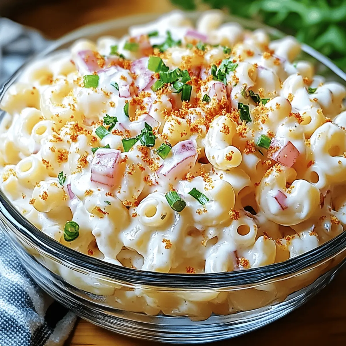 Delicious Hawaiian Macaroni Salad for Your Next Summer BBQ Posted on October 7, 2025October 7, 2025 by Mandy Evans As I whisked together the creamy dressing for my Hawaiian Macaroni Salad, a wave of nostalgia washed over me—this dish has always transported me to sun-soaked beach picnics and festive family get-togethers. This delightful salad combines tender elbow macaroni with a tangy dressing that’s not only easy to prepare but can also be customized to suit your taste. Whether you’re craving something light for summer barbecues or a comforting side for holiday feasts, this Hawaiian Macaroni Salad is your go-to crowd-pleaser. Plus, it’s gluten-free if you choose the right pasta, making it accessible for everyone at the table. So, are you ready to bring a taste of the tropics into your kitchen? Let’s dive in! Why is Hawaiian Macaroni Salad a Must-Try? Crowd-Pleasing: This Hawaiian Macaroni Salad is the ultimate crowd-pleaser, sure to impress family and friends at any gathering. Easy to Customize: With its versatile base, you can easily customize ingredients to suit your taste or dietary needs—think diced pineapple for a sweet twist or gluten-free pasta to cater to everyone. Quick Preparation: This recipe’s simple steps mean you’ll have a delicious side dish ready in no time, perfect for last-minute gatherings or busy weeknights. Fresh and Flavorful: Each bite bursts with freshness, combining creamy and tangy flavors that evoke the feeling of a tropical paradise. Perfect for Any Occasion: Whether it’s a summer BBQ, holiday feast, or potluck, this salad fits seamlessly into any menu, making it a staple to keep in your recipe arsenal. If you’re interested in other delightful side dishes, check out my post on Whipped Feta with Roasted Vegetables for more crowd favorites! Hawaiian Macaroni Salad Ingredients For the Salad • Elbow Macaroni – The classic base providing a tender bite; feel free to swap for gluten-free pasta for a dietary option. • Mayonnaise – This creamy element binds everything; Greek yogurt serves as a lighter alternative. • Rice Vinegar – Adds a subtle tanginess; apple cider vinegar works well if that’s what you have on hand. • Carrots – Freshness and sweetness come from these finely shredded beauties, adding vibrant color. • Onions – They bring a touch of sharpness; consider green onions for a milder taste. • Salt – Essential for enhancing all flavors; adjust to your liking! • Black Pepper – A hint of heat to balance the creaminess; white pepper can be used for a smoother look. • Sugar (optional) – This balances any sharpness; honey is a great natural substitute. For the Garnish • Fresh Herbs (optional) – Chopped parsley or green onions elevate presentation; cilantro gives a fresh twist. • Toasted Sesame Seeds (optional) – These add a delightful crunch and tropical flair; skip if allergies are a concern. With these ingredients, you’re just a few steps away from creating an unforgettable Hawaiian Macaroni Salad! Enjoy bringing this beloved dish into your home. Step‑by‑Step Instructions for Hawaiian Macaroni Salad Step 1: Cook the Pasta Begin by bringing a large pot of salted water to a rolling boil over medium-high heat. Add the elbow macaroni and cook for 7–8 minutes, or until al dente, stirring occasionally. Once cooked, drain the pasta in a colander and rinse it under cold water to halt the cooking process and prevent sticking. Set aside to cool completely. Step 2: Prepare the Vegetables While the macaroni cools, take a cutting board and finely shred the carrots using a box grater. Next, dice the onions into small pieces, ensuring they’re uniform for even flavor distribution. The vibrant colors and fresh aromas will create a delightful base for your Hawaiian Macaroni Salad. Step 3: Mix the Dressing In a large mixing bowl, combine the creamy mayonnaise and rice vinegar, whisking until smooth and well-blended. Season the dressing with a pinch of salt, a sprinkle of black pepper, and optional sugar, stirring until everything is well-integrated. This tangy dressing is the heart of your Hawaiian Macaroni Salad. Step 4: Combine Ingredients Once the macaroni has cooled, add it to the mixing bowl with the dressing. Then, sprinkle in the finely shredded carrots and diced onions. Gently fold all the ingredients together until every piece is coated in the creamy dressing, creating a comforting and colorful salad. Step 5: Chill to Meld Flavors Cover the bowl with plastic wrap and place the Hawaiian Macaroni Salad in the refrigerator. Allow it to chill for at least 1 hour; this resting period lets the flavors develop beautifully, enhancing the overall taste. The cooler temperature will also create a refreshing dish ideal for warm days. Step 6: Serve and Garnish Before serving your creamy Hawaiian Macaroni Salad, give it a gentle stir. Optionally, garnish with chopped fresh herbs like parsley or green onions, or sprinkle toasted sesame seeds over the top for extra crunch. This final touch not only elevates the presentation but also adds layers of flavor. Expert Tips for Hawaiian Macaroni Salad Finely Chopped Veggies: To prevent lumps in your salad, make sure carrots and onions are finely chopped. This uniformity aids in mixing and enhances texture. Make Ahead Magic: Prepare your Hawaiian Macaroni Salad a day in advance. The flavors deepen overnight, making this an ideal choice for potlucks and gatherings. Avoid Freezing: Freezing can alter the creamy texture of your salad, so it’s best enjoyed fresh. If chilled, let it sit at room temperature for 10-15 minutes before serving. Vegan Substitution: For a plant-based twist, swap out the mayonnaise for a vegan alternative. Your Hawaiian Macaroni Salad will still be creamy and delicious! Customize It: Don’t hesitate to get creative—add diced pineapple or bell peppers for extra flavor, or protein like chicken for a heartier dish. What to Serve with Hawaiian Macaroni 