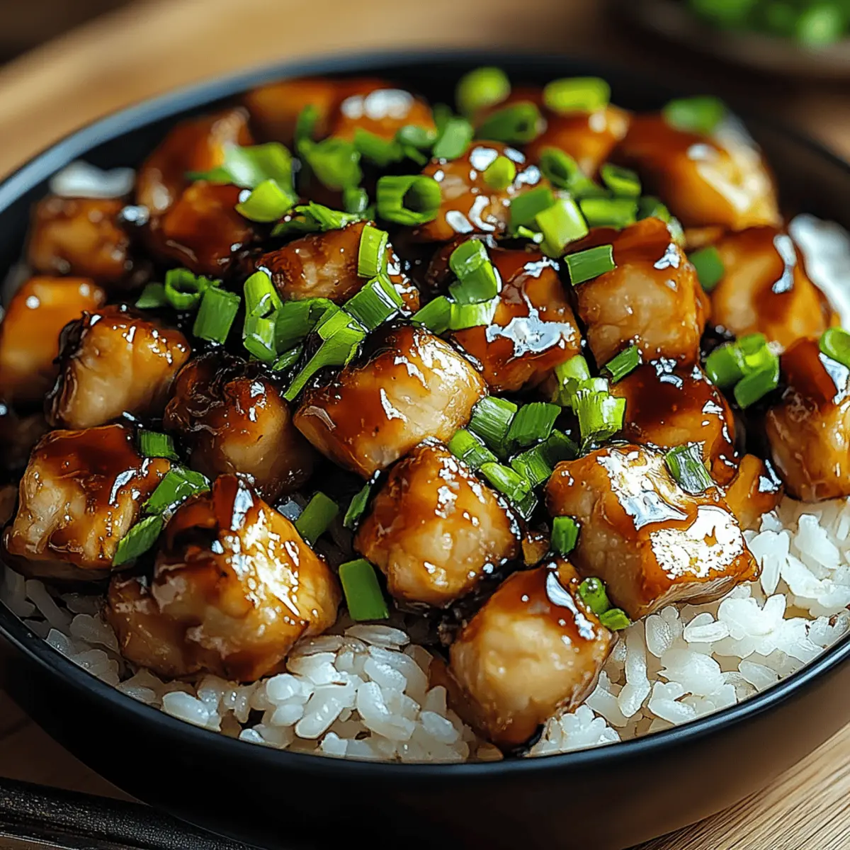 Irresistibly Juicy Honey BBQ Chicken Rice for Easy Nights Posted on September 16, 2025September 16, 2025 by Mandy Evans There’s something magical about combining sweet and smoky flavors, isn’t there? I recently whipped up a dish that truly nails that delightful fusion: Honey BBQ Chicken Rice. This quick meal not only satisfies the cravings of my family but also makes busy weeknights feel effortlessly special. With tender chicken bathed in a sticky, luscious honey BBQ sauce, served over fluffy rice, it’s comfort food caked in nostalgia. Plus, the best part? It’s highly customizable—switch up the protein with juicy chicken thighs, or even tofu for a vegan twist. And rest assured, this dish is gluten-free too! Are you ready to learn how to create this delightful experience in your own kitchen? Let’s dive in! Why Is Honey BBQ Chicken Rice So Popular? Delicious Fusion: Honey and BBQ create a mouthwatering blend that elevates ordinary chicken to new heights. Quick and Easy: You’ll love how this recipe comes together in no time, making it perfect for busy weekdays or last-minute gatherings. Customizable: Feel free to experiment with proteins—chicken thighs, tofu, or tempeh fit perfectly here. Choose your favorite rice, be it jasmine or brown, for added flair! Crowd-Pleasing: Whether it’s family dinner or a friendly get-together, this dish is sure to impress, making it an ideal choice for all occasions. For more easy dinner ideas, check out our 15-Minute Healthy Meals that maintain flavor without sacrificing time. Enjoy the delightful balance of taste in every bite! Honey BBQ Chicken Rice Ingredients • Dive into these must-have ingredients to create that sweet and smoky masterpiece! For the Chicken Chicken (breasts or thighs) – Use thighs for juiciness and enhanced flavor. For the Sauce Honey – Adds the perfect touch of sweetness; swap with maple syrup for a vegan option. BBQ Sauce – Choose your favorite for that smoky punch; ensure it’s gluten-free if needed. For Cooking Olive Oil – Great for sautéing; you can use vegetable oil as a substitute. For the Base Rice (white jasmine or basmati) – Fluffy rice forms the comforting foundation; brown rice adds a hearty twist. Seasoning Essentials Salt & Pepper – Essential for enhancing flavors; adjust quantities to fit your taste. Garlic Powder & Onion Powder – Boost the chicken’s flavor; fresh garlic or onions work wonders too! With these ingredients, you’re set to create an irresistible Honey BBQ Chicken Rice that’s sure to become a family favorite during those busy nights! Step‑by‑Step Instructions for Honey BBQ Chicken Rice Step 1: Prepare Chicken Begin by patting the chicken dry and seasoning it generously with salt, pepper, garlic powder, and onion powder. Make sure each piece is evenly coated for maximum flavor. Allow the seasoned chicken to rest for about 10 minutes while you gather your other ingredients, ensuring it absorbs the flavors. Step 2: Cook Chicken In a large skillet, heat 2 tablespoons of olive oil over medium-high heat. Once the oil shimmers, carefully add the seasoned chicken to the skillet. Sear the chicken for 5-6 minutes on each side, or until it develops a lovely golden-brown crust and reaches an internal temperature of 165°F. Remove the chicken and set it aside to rest. Step 3: Add Sauce Reduce the heat to medium-low and return the chicken to the skillet. Pour in your favorite BBQ sauce and drizzle with honey, stirring gently to coat the chicken. Allow the mixture to simmer for 3-5 minutes, letting the flavors meld and the sauce thicken slightly. This step enhances the sweet and smoky components of your Honey BBQ Chicken Rice. Step 4: Cook Rice While the chicken simmers, prepare the rice according to the package instructions. Opt for white jasmine or basmati rice for fluffiness, or choose brown rice for a hearty option. Once cooked, fluff the rice with a fork and keep it warm until ready to serve, creating a cozy base for your flavorful chicken. Step 5: Assemble Dish To plate, spoon a generous portion of rice onto each serving plate. Carefully top the rice with the delicious honey BBQ chicken, ensuring each piece is coated in that sticky sauce. For a pop of color and freshness, garnish with chopped fresh herbs of your choice before serving this delightful Honey BBQ Chicken Rice to your family. Expert Tips for Honey BBQ Chicken Rice Juicier Chicken: Always opt for chicken thighs instead of breasts; they remain moist and tender throughout cooking, enhancing the dish’s richness. Gluten-Free Check: Make sure to choose a gluten-free BBQ sauce, especially if you’re serving guests with dietary restrictions; this ensures everyone can enjoy the Honey BBQ Chicken Rice. Thick Sauce Love: Simmer the sauce longer for a thicker consistency, allowing it to cling beautifully to the chicken; it avoids the need for extra thickeners that can alter the taste. Versatile Rice Options: Experiment with different rice types. While jasmine or basmati offers fluffiness, brown rice provides a delightful nuttiness for your dish. Storage Secrets: Store leftovers in an airtight container for up to 3 days, or freeze for up to 2 months, reheating gently to maintain the dish’s original flavors. Make Ahead Options These Honey BBQ Chicken Rice components are perfect for meal prep, making your busy weeknights a breeze! You can season the chicken and refrigerate it for up to 24 hours in advance, allowing the flavors to meld beautifully. Additionally, you can cook the rice and store it in an airtight container in the fridge for up to 3 days. When you’re ready to enjoy this dish, simply reheat the rice and cook the chicken with the BBQ sauce and honey as directed, simmering for a few minutes until everything is heated through. This way, you’ll have delicious Honey BBQ Chicken Rice on the table with minimal effort, saving you time without sacrificing flavor! How to Store and Freeze Honey BBQ Chicken Rice Fridge