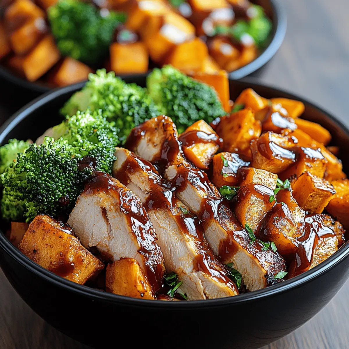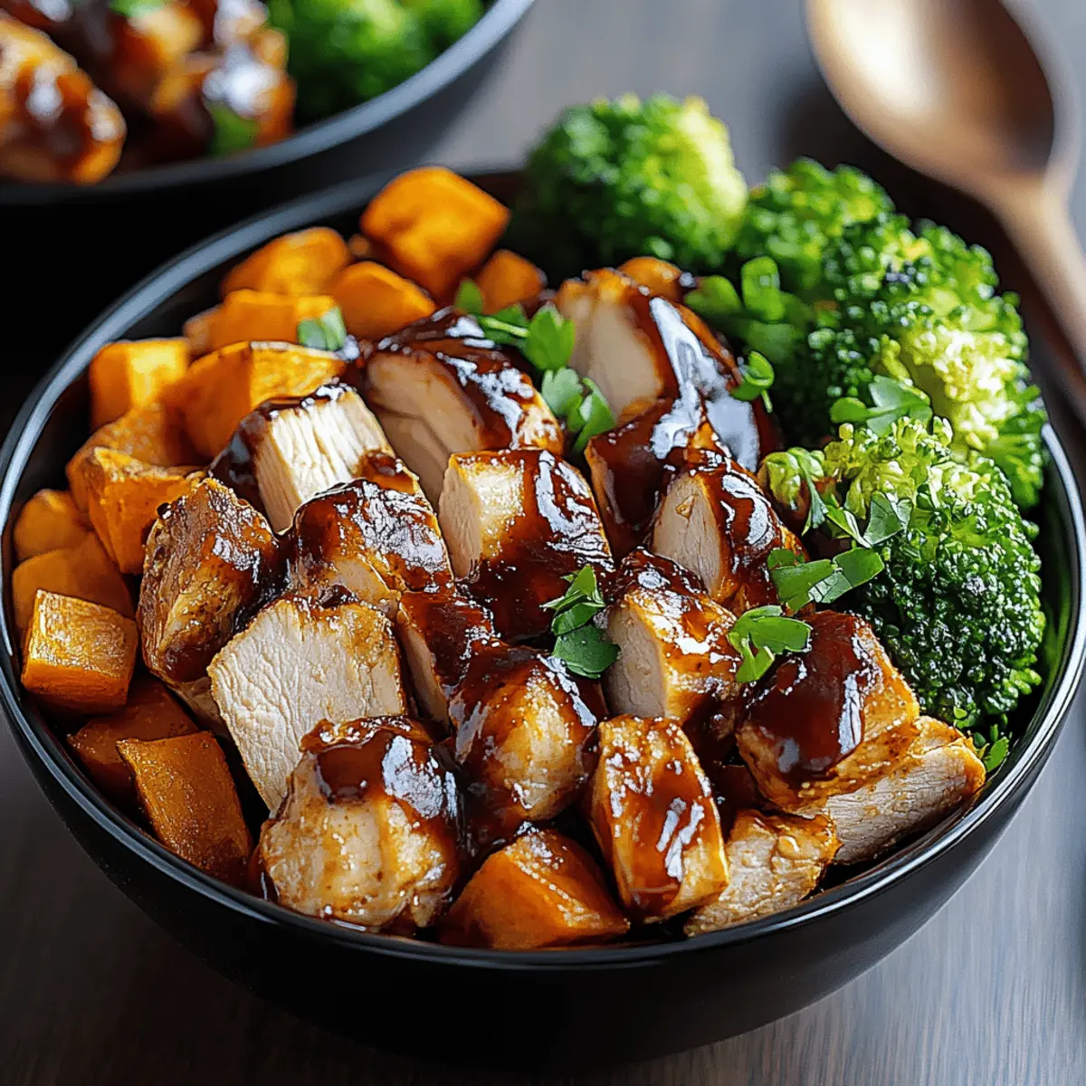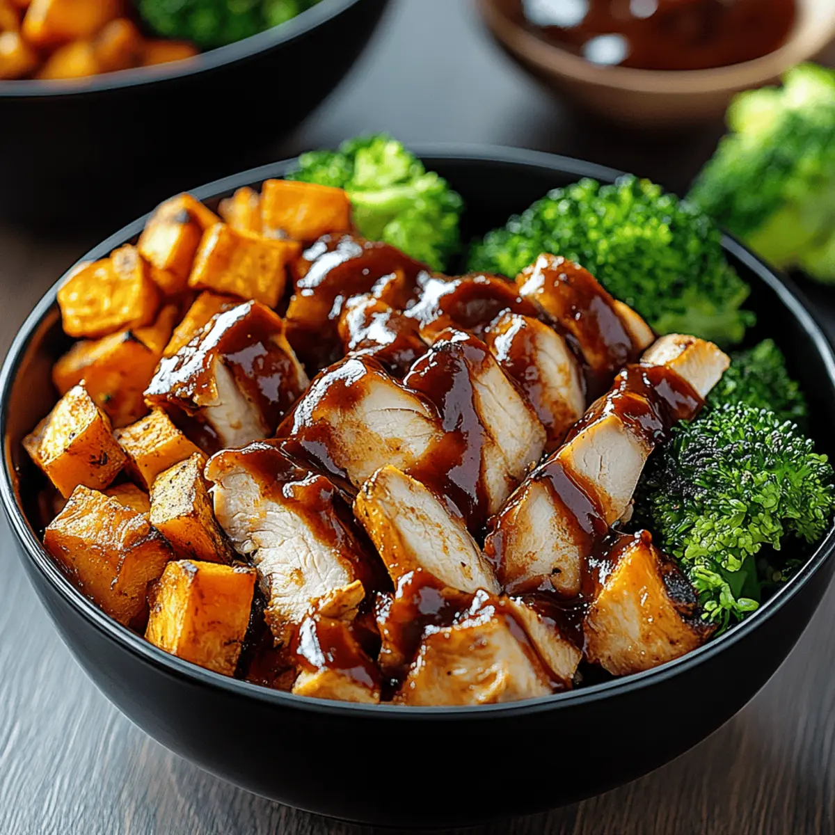 Juicy BBQ Chicken & Sweet Potato Bowls You’ll Love! Posted on September 2, 2025September 2, 2025 by Mandy Evans The aroma of smoky BBQ mingling with the sweetness of caramelized sweet potatoes wafts through my kitchen, instantly lifting my spirits. These BBQ Chicken & Sweet Potato Bowls are not just a meal; they’re a celebration of flavors and textures that come together in under an hour! The best part? This recipe is completely customizable—perfect for all dietary preferences. Enjoy the nourishing goodness of protein-packed chicken and nutrient-rich veggies while delighting in a crowd-pleasing dish that leaves no one longing for takeout. Whether you’re hosting a family dinner or simply craving something delicious for yourself, these bowls offer an easy way to impress. So, what delicious twists will you add to your own BBQ Chicken & Sweet Potato Bowls? Why Will You Love BBQ Chicken Bowls? Quick and Easy: With a prep time of under 15 minutes, you can enjoy a hearty meal without spending hours in the kitchen. Flavor Explosion: The sweet potatoes caramelize beautifully, enhancing the rich smokiness of the BBQ chicken for a mouthwatering experience. Customizable Goodness: Whether it’s substituting grilled tofu for chicken or topping with your favorite greens, make these bowls your own! Nutrition-Packed: Each bowl provides a balanced mix of protein, healthy fats, and vibrant veggies, making it a great choice for a health-conscious meal. Crowd-Pleasing Delight: Perfect for family dinners or potlucks, these bowls will have everyone asking for seconds and wondering about your secret recipe. Meal Prep Friendly: With easy storage options for leftovers, enjoy the flavors throughout the week without the effort—especially paired with my Cooker Bbq Chicken for that extra smoky kick! BBQ Chicken & Sweet Potato Bowls Ingredients For the Sweet Potato Base • Sweet Potatoes – Provide natural sweetness and a creamy texture when roasted; substitute with butternut squash for a different flavor. • Olive Oil – Used for roasting to enhance flavor and aid in caramelization; can be substituted with avocado oil. For the Chicken • Chicken Breasts – Main source of protein that is juicy and flavorful, especially when glazed with BBQ sauce; chicken thighs can be used for more moisture. • BBQ Sauce – Adds tanginess and depth of flavor; be sure to select a gluten-free version if necessary. For the Fresh Components • Fresh Greens (Spinach, Kale, etc.) – Acts as a nutrient-dense base for the bowl, adding crunch and color; feel free to mix in arugula or shredded lettuce. • Red Onion – Provides sharpness and crunch; substitute with green onions for a milder taste. Optional Additions • Avocado – Creamy addition that enhances flavor and provides healthy fats; omit if you prefer a lighter meal. • Fresh Cilantro/Parsley – Offers freshness and a pop of flavor; basil can be used as an alternative. • Lime Wedges – Add a zesty finish that complements the dish; use lemon if preferred. These BBQ Chicken & Sweet Potato Bowls are waiting to be customized to your liking, so get creative and make them your own! Step‑by‑Step Instructions for BBQ Chicken & Sweet Potato Bowls Step 1: Preheat the Oven Begin by preheating your oven to 425°F (220°C). This high temperature will ensure your sweet potatoes get beautifully caramelized and tender. As the oven heats, prepare your baking sheet by lining it with parchment paper for easy cleanup later on. Step 2: Prepare Sweet Potatoes Peel and cube your sweet potatoes into roughly 1-inch pieces to ensure even cooking. In a mixing bowl, toss the cubes with olive oil, salt, and pepper until well coated. Spread the sweet potatoes in a single layer on the prepared baking sheet. Roast in the oven for 25-30 minutes, turning them halfway through until they are golden and fork-tender. Step 3: Cook Chicken While the sweet potatoes are roasting, season the chicken breasts generously with salt, pepper, and your favorite BBQ sauce. Choose your cooking method: grill, bake, or pan-sear the chicken for 6-7 minutes on each side, ensuring it reaches an internal temperature of 165°F (74°C). Once cooked, let the chicken rest before slicing it into bite-sized pieces. Step 4: Assemble Bowls Gather your bowls and layer in fresh greens as the base, such as spinach or kale. Following that, add a generous portion of the roasted sweet potatoes, then top with sliced BBQ chicken. Sprinkle diced red onion over the bowl for an added crunch and flavor contrast. Step 5: Add Finishing Touches For an extra burst of flavor, top your BBQ Chicken & Sweet Potato Bowls with optional ingredients like creamy avocado and freshly chopped cilantro or parsley. Finally, place a lime wedge on the side for a zesty squeeze that brightens the entire dish. For additional flavor, consider drizzling more BBQ sauce or fresh lime juice over the bowls before serving. What to Serve with BBQ Chicken & Sweet Potato Bowls Elevate your dining experience with delightful sides and accompaniments that perfectly complement the flavors in your bowl. Cornbread: This classic Southern side adds a sweet, fluffy contrast and is perfect for soaking up any extra BBQ sauce. Coleslaw: Crunchy and refreshing, coleslaw brings a tangy crunch that balances the richness of the BBQ chicken. Cucumber Salad: Light and crisp, this salad offers a fresh, cooling element that enhances the dish’s vibrant flavors. Grilled Vegetables: Throw some bell peppers and zucchini on the grill for a smoky touch that mirrors the BBQ chicken’s flavor. Garlic Bread: A slice or two of warm, buttery garlic bread is the ultimate indulgence, perfect for a cozy meal. Roasted Brussels Sprouts: Their slightly bitter notes and crispy texture provide a delightful contrast and offer a nutritious boost. Fruit Salad: A medley of seasonal fruits can act as a refreshing palate cleanser between bites of your hearty bowls. Sparkling Water or Iced Tea: Offer th