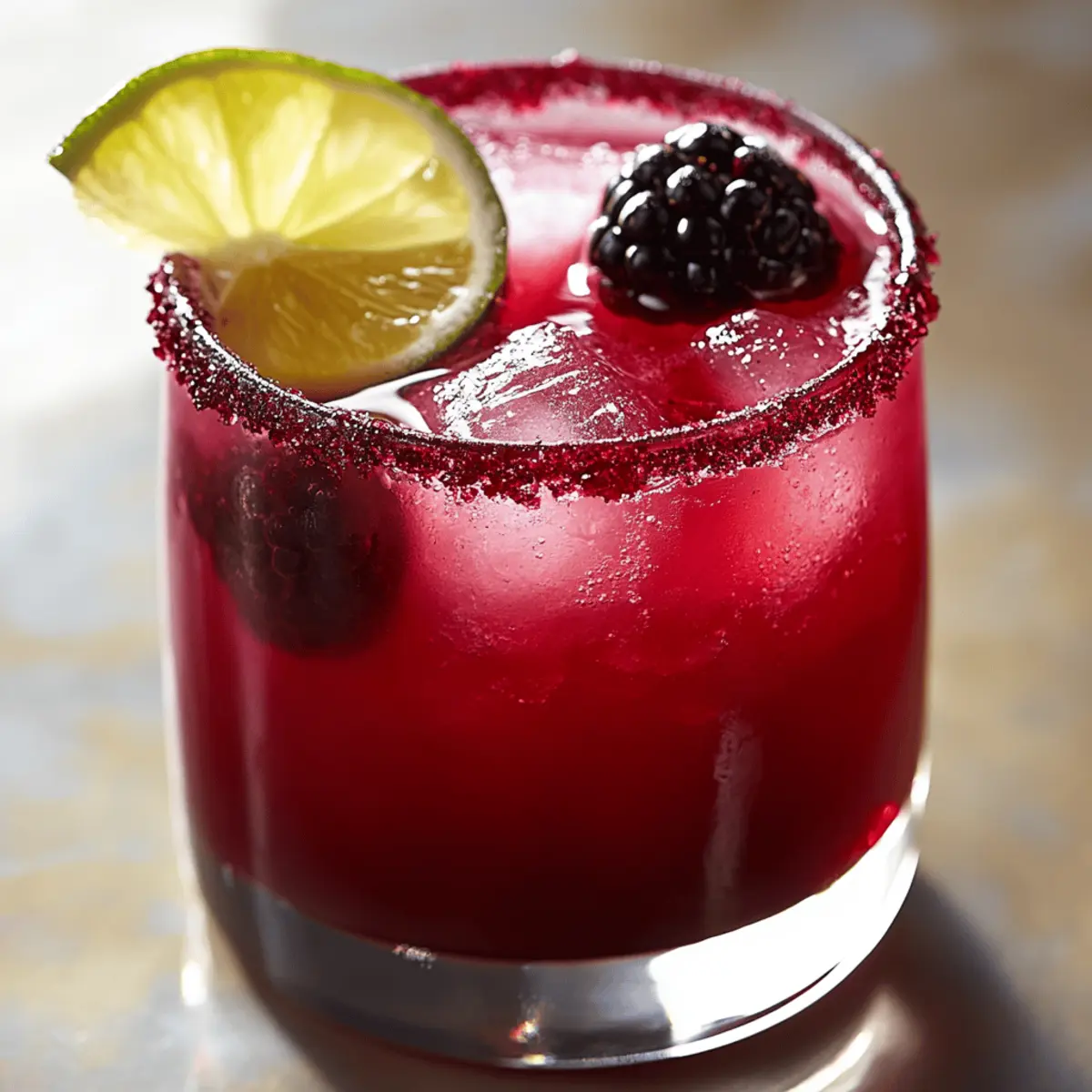 As I stood in my kitchen, the scent of fresh blackberries wafting around me, I couldn’t help but smile. There’s something magical about transforming those juicy gems into invigorating Blackberry Margaritas. This cocktail isn’t just a drink; it’s an embodiment of summertime gatherings, with vibrant colors that catch the eye and a delicious tang that awakens the taste buds. What I love most is how incredibly easy-to-make this cocktail is, with the ability to customize it based on your cravings. Whether you prefer it a touch sweeter or with a zesty burst of lime, these Blackberry Margaritas will quickly become your go-to refresher. Ready to blend up some joy in a glass? Let’s dive into this delightful recipe that will leave your friends begging for more! Why are Blackberry Margaritas a Must-Make? Refreshing Flavor: The juicy blackberries bring a burst of sweetness, perfectly balanced by the zesty lime. Customizable Delight: Tailor the level of sweetness with agave syrup and experiment with different garnishes to make each drink uniquely yours. Crowd-Pleasing: Whether it’s a cozy night in or a lively summer gathering, this cocktail is sure to impress every guest! Quick & Easy: With just a few simple ingredients and steps, you’ll whip up a vibrant cocktail in no time. Versatile Beverage: Serve as a mocktail option or add different berries for a fun twist, making it great for any occasion! Elevate your next gathering with these delicious Blackberry Margaritas—get ready to savor the flavor! Blackberry Margaritas Ingredients For the Cocktail • Blackberries – Adds fruity sweetness and vibrant color; fresh is best, but frozen can be used for a frostier drink. • Silver Tequila – Provides a clean, smooth base flavor; blanco tequila is recommended to let the fruit’s flavor shine. • Fresh Lime Juice – Contributes tanginess and brightness; always use freshly squeezed for the best taste. • Orange Liqueur – Complements tequila and adds subtle sweetness; options include Triple sec or Cointreau. • Agave Syrup – Balances the tartness of lime and blackberries; substitute with stevia or monk fruit for a keto-friendly option. • Coarse Sea Salt – Used for rimming the glass to enhance flavor; optional for a sweeter version, use sugar. For the Garnishes • Whole Blackberries – Perfect for a pop of color on your drink. • Lime Wheel – Adds a decorative touch as well as a hint of extra lime flavor. • Mint Sprig – Provides a refreshing aroma that enhances the overall experience. • Thin Slices of Jalapeño – Add a spicy kick for those who enjoy a little heat. Savor the deliciousness of Blackberry Margaritas and enjoy experimenting with your favorite variations! Step‑by‑Step Instructions for Blackberry Margaritas Step 1: Prepare the Blackberry Puree Start by washing 1 cup of fresh blackberries under cool water until they’re free from any dirt. Next, place the cleaned blackberries in a blender and blend on high speed for about 30 seconds until smooth. If you prefer a silky texture, strain the mixture through a fine mesh sieve to remove the seeds. Set the puree aside to use in your refreshing Blackberry Margaritas. Step 2: Mix the Cocktail Ingredients In a cocktail shaker, combine 2 oz of silver tequila, 1 oz of freshly squeezed lime juice, 1 oz of orange liqueur, and ¾ oz of agave syrup along with 2 tablespoons of the prepared blackberry puree. This blend of ingredients creates the perfect balance of sweetness and tartness. Close the shaker tightly and prepare for the next step. Step 3: Shake It Up Fill the cocktail shaker with ice, covering the liquid generously. Shake the mixture vigorously for about 15 seconds. You want to ensure the ingredients are well combined and chilled; look for condensation forming on the outside of the shaker as a signal that it’s ready. This invigorating shake makes your Blackberry Margaritas refreshingly cold and delightful. Step 4: Rim the Glass To elevate your cocktail experience, take a lime wedge and run it along the rim of your chosen glass, which could be a rocks or margarita glass. Dip the rim into coarse sea salt, ensuring an even coating; this enhances the flavors of the drink. The salt rim will create a delightful contrast against the sweetness of your Blackberry Margaritas. Step 5: Serve with Style Fill the rimmed glass with fresh ice cubes, packing them in gently to ensure the glass is adequately cooled. Carefully strain the shaken cocktail mixture from the shaker into the glass over the ice. Watch as the vibrant purple hue of the Blackberry Margaritas flows gracefully, making your drink even more appealing! Step 6: Garnish for Extra Flair To finish off your stunning Blackberry Margaritas, garnish with a few whole blackberries and a lime wheel on the rim for an extra pop of color. For an aromatic touch, add a sprig of fresh mint. If you’re feeling adventurous, include a couple of thin slices of jalapeño for those who crave a little heat. Enjoy your beautifully crafted cocktail! Blackberry Margaritas Variations & Substitutions Feel free to mix things up and create your perfect version of these refreshing Blackberry Margaritas! Mocktail Version: Swap out the tequila and orange liqueur for sparkling water and orange juice concentrate for a bubbly treat. Extra Tangy: Increase the lime juice for a zippier taste that truly awakens the senses. A splash of grapefruit juice could also add a nice twist. Sweetness Boost: Add more agave syrup or try honey for a richer sweetness that pairs beautifully with the tartness of the berries. Berry Medley: Mix in other berries like raspberries or blueberries to create a delightful berry blend that changes the flavor profile completely. Spicy Kick: For those who love heat, include a few slices of jalapeño in your shaker for a fiery finish that wakes up your palate. Crisp Refreshment: Add a splash of cucumber juice for a refreshing, light twist that complements the blackberry perfec