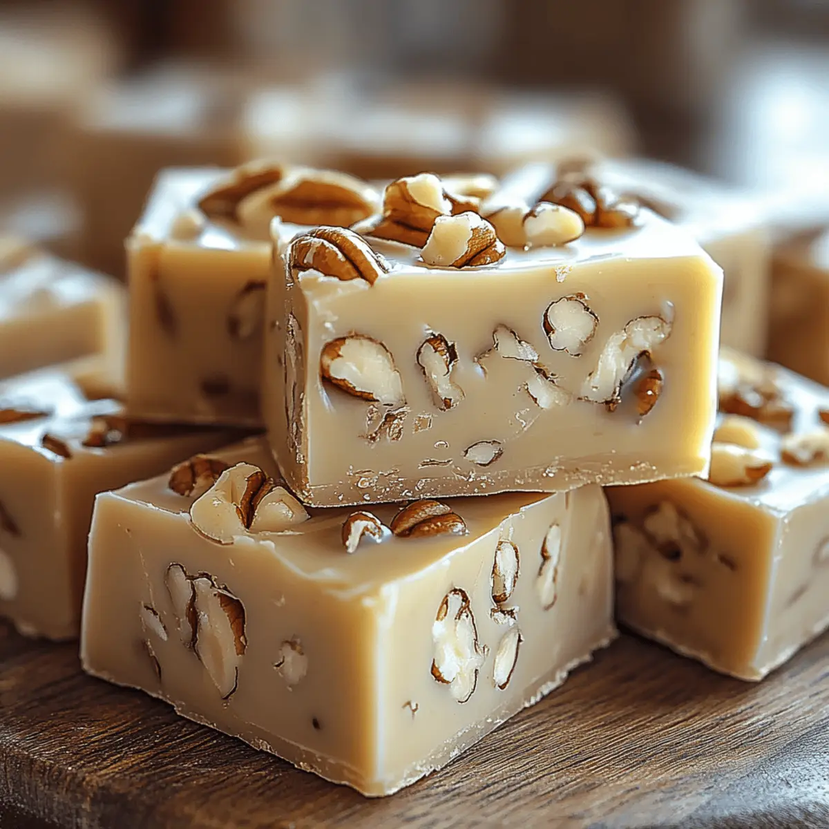 As I stood in my kitchen, the sweet, nutty aroma of toasted pecans filled the air, instantly transporting me to a cozy holiday gathering. That’s when I decided to whip up a batch of Caramel Pecan White Chocolate Fudge—my go-to no-bake dessert that never fails to impress. With its creamy white chocolate mingling beautifully with rich caramel and crunchy pecans, this quick treat is perfect for sharing with friends or indulging on a quiet afternoon. Plus, it’s gluten-free and an ideal gift for those special occasions when you want to show someone you care. Are you ready to create something truly delightful that will leave everyone reaching for more? Why is this fudge a must-try? Irresistible Flavors: The harmonious blend of creamy white chocolate, sweet caramel, and crunchy pecans creates a dessert that’s hard to resist. No-Bake Convenience: This fudge is ready with minimal fuss—perfect for those who want a quick and impressive treat without the hassle of baking. Adaptable Recipe: Whether you stick to pecans or opt for almonds, you can easily tailor it to your taste or dietary needs. Eye-Catching Gift Idea: Wrapped beautifully, this fudge makes a thoughtful and delicious gift, making it ideal for holidays or special occasions. Quick to Make: Ready in just a few hours, it’s the perfect last-minute dessert when time is short but flavor is essential! Once you try this Caramel Pecan White Chocolate Fudge, you’ll want to whip up another batch in no time! Caramel Pecan White Chocolate Fudge Ingredients For the Caramel • Brown Sugar – Provides sweetness and contributes to the caramel flavor. • Heavy Cream – Adds creaminess to the caramel, ensuring a smooth texture. • Butter – Enhances richness and aids in thickening the caramel mixture. • Salt – Balances sweetness and enhances flavor. • Vanilla Extract – Adds depth and aromatic essence to the fudge. For the Fudge Base • White Chocolate Chips – Serves as the base for the fudge, creating a creamy and sweet foundation. • Sweetened Condensed Milk – Increases creaminess and sweetness, helping to achieve the right fudge consistency. For the Nuts • Toasted Pecans – Introduces nutty flavor and crunch; can be substituted with another nut or omitted for a nut-free version. This delightful Caramel Pecan White Chocolate Fudge is not only a feast for the eyes but also a wonderfully quick dessert perfect for any occasion! Step‑by‑Step Instructions for Caramel Pecan White Chocolate Fudge Step 1: Prepare Caramel In a medium saucepan, combine brown sugar, heavy cream, butter, and salt over medium heat. Stir the mixture continuously as it begins to bubble and thicken, approximately 4-5 minutes, until it reaches a deep caramel color. You’ll know it’s done when it coats the back of a spoon. Remove from heat and mix in vanilla extract for an aromatic finish. Step 2: Melt White Chocolate In a heatproof bowl, melt the white chocolate chips using a double boiler or the microwave. If using the microwave, heat in short bursts of 20-30 seconds, stirring in between to prevent overheating. The white chocolate should be completely smooth and glossy, ready to blend with the caramel for your Caramel Pecan White Chocolate Fudge. Step 3: Combine Mixtures Slowly pour the prepared caramel into the melted white chocolate, stirring continuously to create a velvety mix. Once fully incorporated, add in the sweetened condensed milk. Keep mixing until the fudge mixture appears shiny and uniform, ensuring every bit of that sweet creaminess is melded together for the perfect fudge base. Step 4: Add Pecans Gently fold in the toasted pecans, making sure they are evenly distributed throughout the fudge mixture. This nutty addition enhances both the flavor and texture of your Caramel Pecan White Chocolate Fudge. Take care to avoid overmixing to maintain the lovely chunks of pecans that will provide a delightful crunch. Step 5: Set Fudge Line an 8×8-inch baking pan with parchment paper, allowing some overhang for easy removal later. Pour the fudge mixture into the prepared pan and spread it out evenly with a spatula. For an extra touch, optionally swirl in additional caramel or sprinkle more pecans on top before refrigerating. Chill for 3-4 hours until the fudge is firm to the touch. Step 6: Slice and Serve Once the fudge has set, lift it out of the pan using the parchment overhang and place it on a cutting board. Using a sharp, warmed knife, slice the fudge into squares for serving. The Caramel Pecan White Chocolate Fudge is now ready to be enjoyed, either alone or shared with friends and family. Store any leftovers in an airtight container in the fridge to keep them fresh. How to Store and Freeze Caramel Pecan White Chocolate Fudge Fridge: Store the fudge in an airtight container in the refrigerator for up to two weeks. This keeps the Caramel Pecan White Chocolate Fudge fresh and delicious while maintaining its creamy texture. Freezer: For longer preservation, wrap the fudge tightly in plastic wrap and place it in an airtight freezer bag. It can be frozen for up to three months without losing quality. Reheating: If you desire a softer texture, let the fudge sit at room temperature for a bit before enjoying. Avoid microwaving as this can cause the chocolate to seize. Serving Freshness: When ready to serve, slice off only what you’ll eat, keeping the rest stored properly to maintain its wonderful taste! Expert Tips for Perfect Fudge Choose Quality Chocolate: Use high-quality white chocolate chips for the best flavor and texture in your Caramel Pecan White Chocolate Fudge. Watch the Heat: When cooking the caramel, keep the heat medium and stir continuously. Too high heat could cause the sugar to burn instead of caramelizing. Cooling Time Matters: Allow the fudge to cool completely before slicing; this ensures a clean cut and helps maintain its shape. Storage Savvy: Store leftovers tightly wrapped in the fridge. This keeps your fudge fresh a