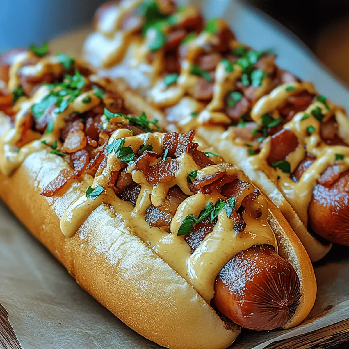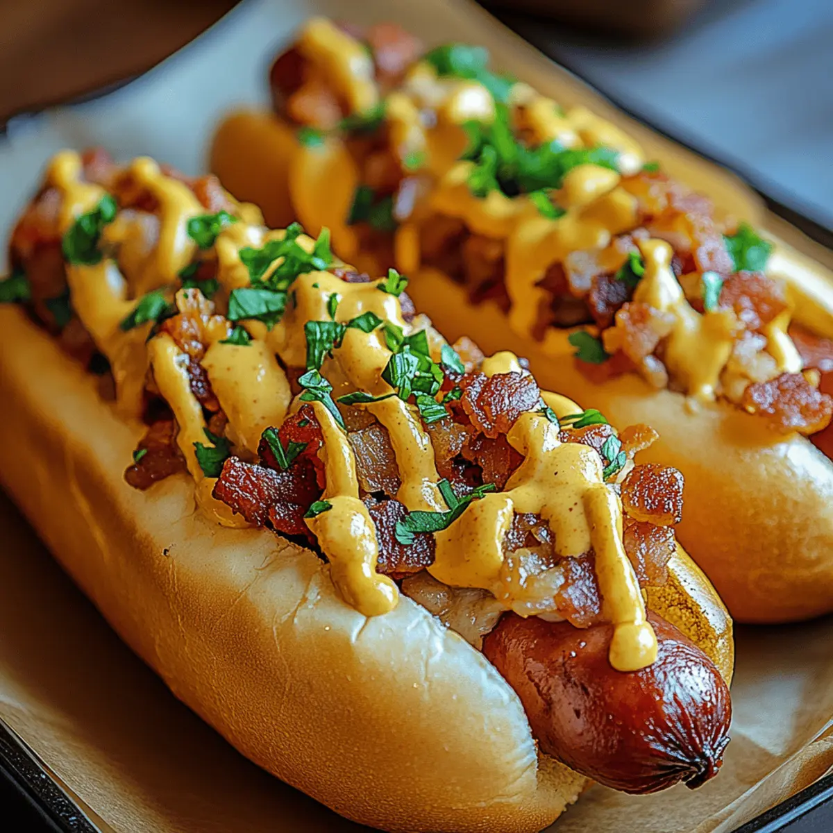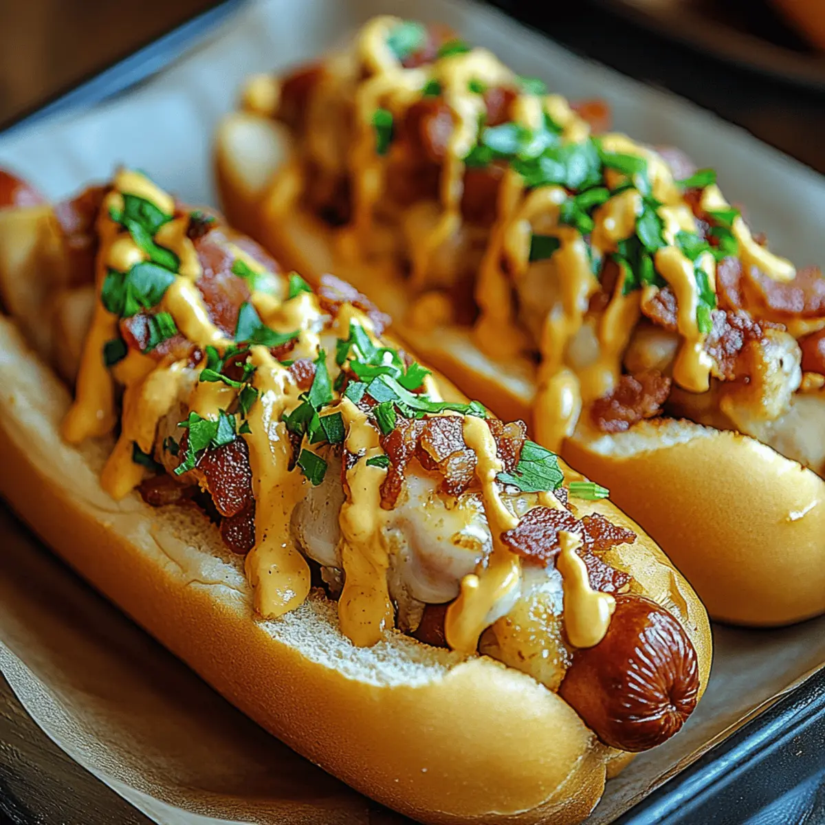 You won’t believe how easy it is to bring the joy of gourmet hot dogs to your kitchen with my Chicken Bacon Bird Dogs. In under 20 minutes, you can whip up a meal that’s not only kid-friendly but also entirely customizable, ensuring every family member can create their perfect bite. This recipe wraps tender chicken strips and crispy bacon in a soft bun, making it an irresistible quick meal that’s perfect for weeknight dinners or weekend gatherings. Plus, it’s gluten-free friendly with the right wraps, allowing everyone to indulge without worry. Are you ready to elevate your cooking game and impress your friends with this delicious twist? Let’s dive in! Why are Chicken Bacon Bird Dogs the best? Simplicity makes these Chicken Bacon Bird Dogs a breeze to prepare; you’ll have dinner ready in just 20 minutes! Customizable to satisfy any palate, swap in your favorite toppings or cheeses for a personalized touch. Crowd-Pleaser guaranteed, this dish is perfect for family dinners or casual gatherings. Versatile, they serve well with a variety of sides, from coleslaw to roasted potatoes. Healthier alternative to fast food, you can enjoy gourmet flavors right at home without the guilt! Chicken Bacon Bird Dogs Ingredients For the Chicken • Chicken Breasts – Juicy and tender, slice into strips for quick cooking; you can substitute with chicken thighs for more flavor. For the Bacon • Bacon – Crispy and savory; consider turkey bacon or vegetarian bacon for lighter or plant-based options. For the Buns • Hot Dog Buns or Slider Rolls – Soft and warm, ideal for holding your delicious fillings; swap for gluten-free buns or lettuce wraps to cater to dietary needs. For Seasoning • Salt, Pepper, Garlic Powder – Essential spices that enhance the chicken’s flavor; adjust to your taste for a perfectly seasoned bite. For Optional Cheese • Cheese (optional) – Creamy addition that elevates the dish; cheddar or mozzarella are great, but try pepper jack or smoked gouda for a flavor boost. For Freshness • Fresh Lettuce and Tomato – Adds a crunchy and refreshing layer; feel free to include your favorite veggies for added nutrition. For Condiments • Mustard/Mayo – Bring additional flavor and creaminess to your bird dogs; customize these based on your personal preferences for a unique twist. Dive into the delectable world of Chicken Bacon Bird Dogs; they’re as fun to prepare as they are to eat! Step‑by‑Step Instructions for Chicken Bacon Bird Dogs Step 1: Prepare Chicken Start by slicing the chicken breasts into thin strips, ensuring even cooking. Season these strips generously with salt, pepper, and garlic powder to enhance the flavor. This will create a delicious base for your Chicken Bacon Bird Dogs. Set the seasoned chicken aside while you preheat your skillet. Step 2: Cook Bacon In a skillet over medium heat, lay the bacon strips side by side without overlapping. Cook for 5-7 minutes, or until they reach crispy perfection, flipping halfway through. Once done, use a slotted spoon to transfer the bacon to a paper towel-lined plate, allowing any excess grease to drain while you prepare the chicken. Step 3: Cook Chicken Next, heat a tablespoon of oil in the same skillet over medium-high heat. Add the seasoned chicken strips and cook for about 3-4 minutes per side, or until they turn golden brown and are no longer pink in the center. The sizzling sound will guide you; look for that beautiful crispness to form on the edges. Step 4: Toast Buns As your chicken finishes cooking, prepare the hot dog buns or slider rolls by lightly toasting them. You can do this in the oven at 350°F (175°C) for about 2-3 minutes or on a toasted skillet until they are golden brown. This adds a delightful crunch that perfectly complements the soft chicken and bacon. Step 5: Assemble Now it’s time to combine your flavors! Place a generous portion of the cooked chicken strips inside each toasted bun. Layer the crispy bacon over the chicken, followed by a slice of cheese if desired. Finally, add fresh lettuce and tomato slices on top for a colorful and crunchy finish. Step 6: Serve Present your Chicken Bacon Bird Dogs immediately while they are warm and inviting. Optionally, secure each with a colorful toothpick for a fun touch and serve with your favorite dipping sauces. These delightful creations are sure to impress friends and family alike, making every bite a delicious experience! Expert Tips for Chicken Bacon Bird Dogs Prep Ahead: Prepare your chicken and bacon in advance to save time. This will keep your dinner quick, allowing you to assemble the Chicken Bacon Bird Dogs just before serving. Bacon Crispiness: Drain the bacon thoroughly on paper towels after cooking. This step ensures that the bacon remains crispy instead of soggy when served. Personalize Your Flavor: Don’t hesitate to experiment with spices or extra ingredients. Adding unique toppings or spices can help cater to individual tastes and dietary preferences. Perfect Buns: If using gluten-free buns, ensure they’re specifically labeled as such. This avoids any hidden gluten and guarantees a safe, delicious meal for everyone. Cheese Choice: When selecting cheese, consider your audience! If kids are involved, go for milder options like mozzarella; for adults, pepper jack can add a delightful kick. Serving Fresh: Serve your Chicken Bacon Bird Dogs warm and fresh. This not only enhances flavor but also keeps the textures enjoyable for everyone at the table. Make Ahead Options These Chicken Bacon Bird Dogs are perfect for meal prep, allowing you to save time on busy weeknights! You can prepare the chicken strips and cook the bacon up to 3 days in advance, storing them in airtight containers in the refrigerator to maintain freshness. To maintain the crispy texture of the bacon, drain it well and avoid stacking it; this will prevent sogginess. When you’re ready to serve, simply reheat the chicken in a skillet for a few minutes, toast