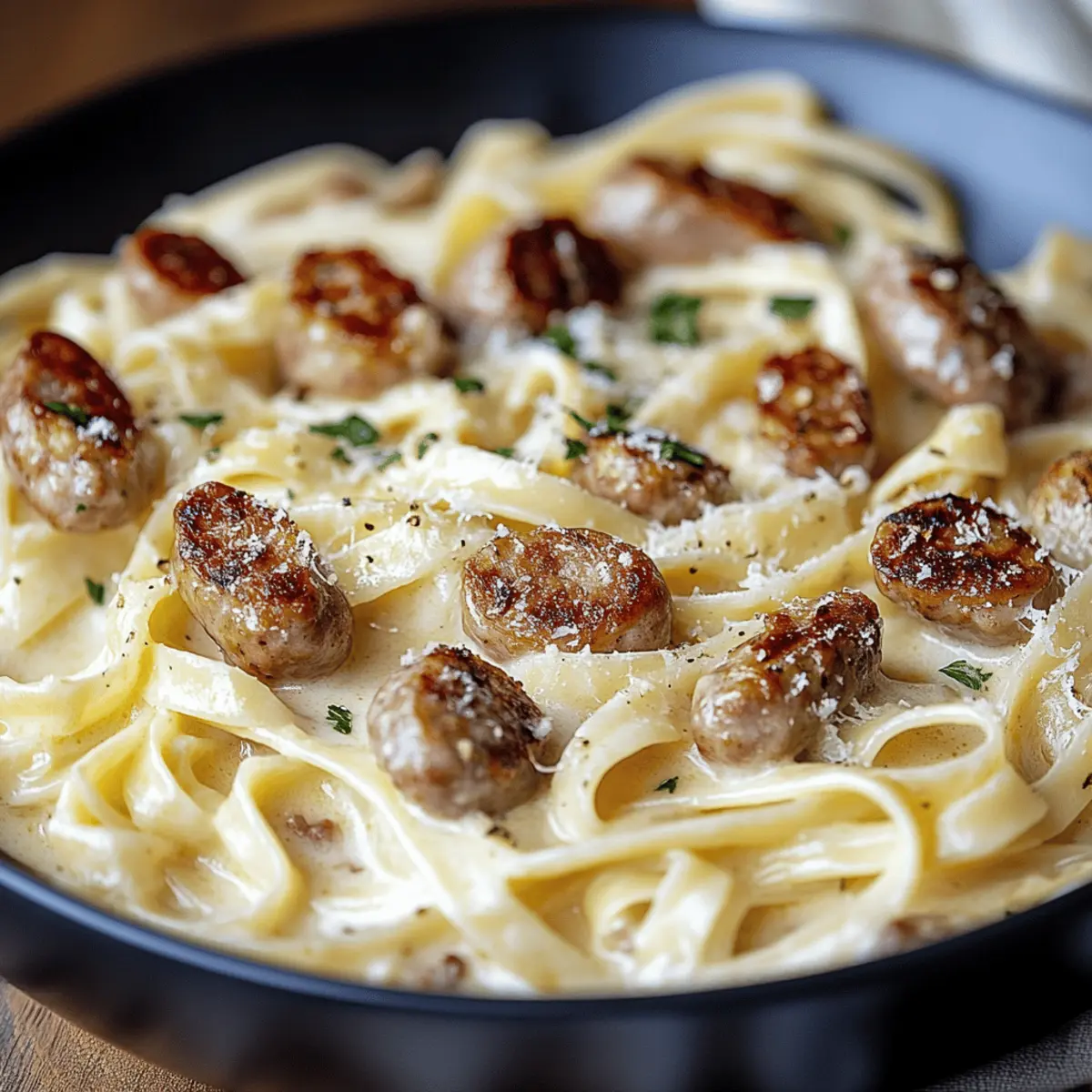 Picture this: it’s a busy weeknight, and the last thing you want to do is settle for another takeout meal. This is where my Creamy Chicken Sausage Alfredo Fettuccine comes to the rescue! Ready in under 30 minutes, this dish offers a luscious, comforting experience, layering savory chicken sausage with a creamy Alfredo sauce that hugs each tender strand of fettuccine. It’s not only a quick weeknight solution but also highly customizable; you can swap in your favorite sausages—turkey or plant-based options work beautifully—and even choose gluten-free pasta if needed. Imagine serving this delight to your loved ones and watching their faces light up! Are you ready to make this easy pasta feast a staple in your kitchen?