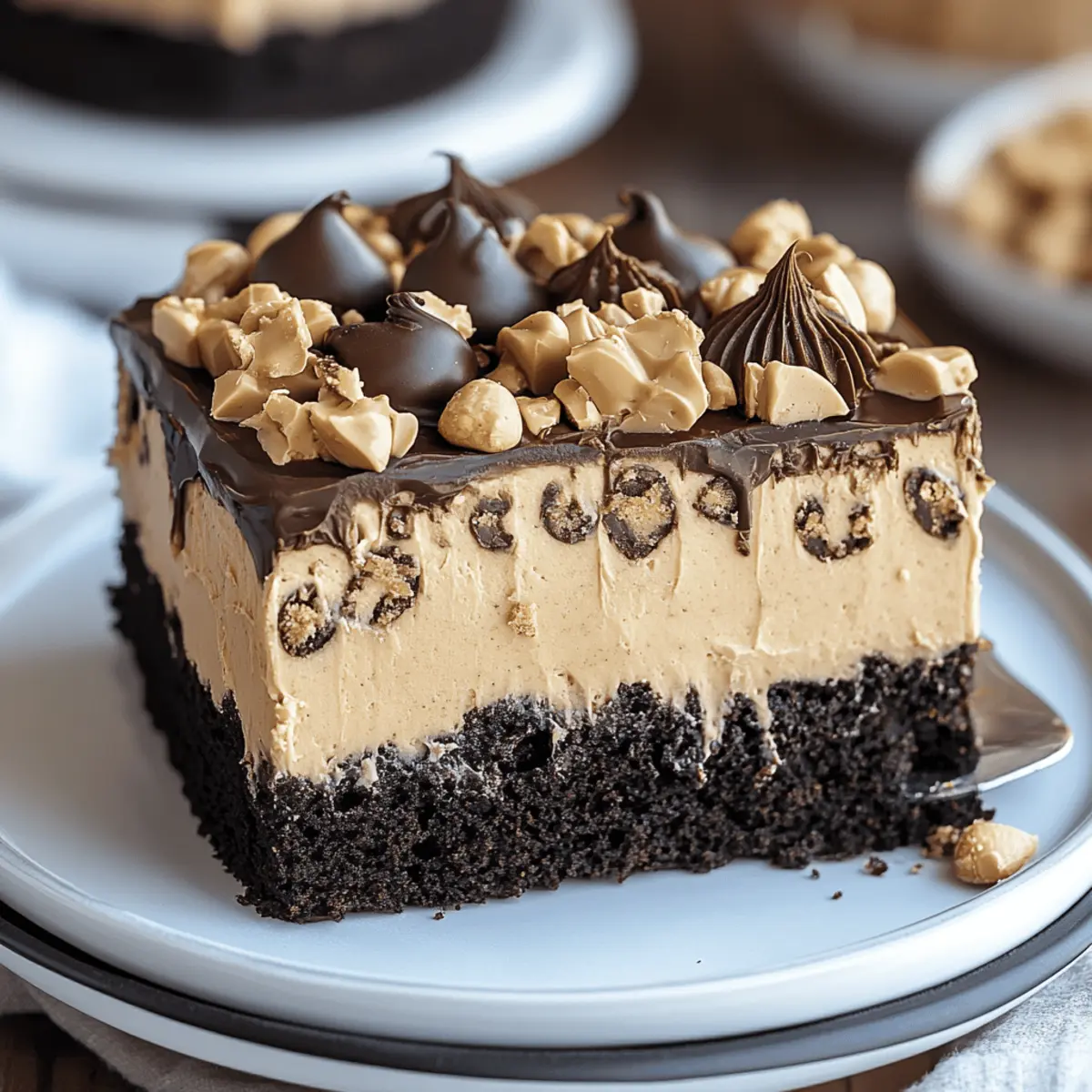 The moment I took a bite of this Chocolate Peanut Butter Poke Cake, I felt like I had been transported to a cozy bakery, the scent of melted chocolate mingling with creamy peanut butter filling the air. This indulgent dessert is not just a treat; it’s a celebration for your taste buds! Packed with a rich, moist chocolate base and a luscious peanut butter glaze that seeps into every inch, this cake is a total game-changer for home bakers. Not only is it simple to whip up, but it’s also perfect for impressing friends or simply indulging in a sweet craving. With its no-fuss preparation and ability to please any chocolate lover, you’ll want to make this cake again and again. Ready to dive into this sweet delight and uncover the joys of baking? Let’s get started on creating your new favorite dessert! Why is this cake a must-try? Indulgent chocolate flavor: This recipe delivers an intense chocolate experience that’s simply irresistible. Creamy peanut butter glaze: A luscious topping that transforms the cake into a peanut butter lover’s dream. Easy to customize: Whether you prefer crunchy peanut butter or a drizzle of chocolate ganache, this cake easily adapts to your taste. Perfect for sharing: Its crowd-pleasing nature makes it an ideal dessert for parties, gatherings, or cozy family dinners. Quick prep: With minimal effort, you can whip up a decadent dessert that looks and tastes like a masterpiece, just like my Chocolate Caramel Cake options! This Chocolate Peanut Butter Poke Cake is sure to impress and satisfy sweet cravings alike! Chocolate Peanut Butter Poke Cake Ingredients • Get ready to indulge! For the Cake All-Purpose Flour – Provides structure to the cake; substitute with gluten-free flour blend for a gluten-free option. Granulated Sugar – Adds sweetness and moisture; can be substituted with coconut sugar for a healthier option. Premium Cocoa Powder – Contributes deep chocolate flavor; Dutch-processed cocoa can be used for a milder taste. Baking Soda & Baking Powder – Leavening agents that help the cake rise; ensure freshness for optimal results. Salt – Enhances the cake flavor; kosher salt can be used as an alternative. Eggs – Bring richness and help with leavening; use egg replacer for a vegan alternative. Buttermilk – Adds moisture and a slight tang; substitute with almond milk mixed with vinegar for a dairy-free option. Hot Water – Activates the cocoa powder for a richer flavor; can be replaced with brewed coffee for enhanced chocolate depth. Vegetable Oil – Keeps the cake moist; can be swapped with melted coconut oil. Pure Vanilla Extract – Adds depth of flavor; use pure extract for superior taste. For the Glaze Smooth Peanut Butter – Essential for both glaze and whipped cream; contributes creaminess. Crunchy peanut butter can be used for texture. Sweetened Condensed Milk – Provides sweetness and creaminess to the glaze; for a vegan version, use coconut condensed milk. Whole Milk – Used in the glaze for smoothness; alternatives include oat milk or almond milk. For the Whipped Cream Heavy Whipping Cream – For making the peanut butter whipped cream; can be replaced with coconut cream for a dairy-free option. Powdered Sugar – Sweetens the whipped cream; can be omitted for a less sweet topping. For Garnishing Chocolate Peanut Butter Cups & Peanuts – Provide a crunchy, decorative finish; optional toppings include chocolate shavings or sprinkles. This Chocolate Peanut Butter Poke Cake recipe will surely tantalize your taste buds and become a household favorite! Step‑by‑Step Instructions for Chocolate Peanut Butter Poke Cake Step 1: Prepare the Cake Batter Preheat your oven to 350°F (175°C) and grease a 9×13 inch baking pan. In a large mixing bowl, sift together all-purpose flour, granulated sugar, cocoa powder, baking soda, baking powder, and salt until well combined. In another bowl, whisk together eggs, buttermilk, hot water, vegetable oil, and vanilla extract until smooth. Gradually pour the wet ingredients into the dry mixture and blend until just combined and smooth, then pour the batter into the prepared pan. Step 2: Bake Place the cake in the preheated oven and bake for 35–40 minutes, or until a toothpick inserted in the center comes out clean. As it bakes, the kitchen will fill with the rich aroma of chocolate. Once done, remove from the oven and allow the cake to cool completely in the pan on a wire rack, ensuring it’s properly set before proceeding. Step 3: Poke the Cake Once the cake has cooled to room temperature, take the handle of a wooden spoon and gently poke holes all over the surface of the cake, approximately every 1 inch apart. This step is crucial for allowing the luscious peanut butter glaze to soak into the chocolate cake, creating the delightful Chocolate Peanut Butter Poke Cake experience. Step 4: Make the Peanut Butter Glaze In a saucepan over low heat, combine smooth peanut butter, sweetened condensed milk, and whole milk. Stir continuously until the mixture is smooth and well combined, making sure it doesn’t boil. Once the glaze is ready, pour it evenly over the poked cake, ensuring that it seeps into all the holes for a moist and flavorful dessert. Step 5: Prepare Peanut Butter Whipped Cream In a chilled mixing bowl, pour in heavy whipping cream and whip it with an electric mixer on medium speed until soft peaks begin to form. Gradually add powdered sugar, peanut butter, and vanilla extract, continuing to mix until the whipped cream holds stiff peaks. This delicious, airy topping will complement the rich chocolate and peanut butter flavors beautifully. Step 6: Frost Cake Gently spread the prepared peanut butter whipped cream over the entire surface of the Chocolate Peanut Butter Poke Cake, allowing it to cover the glaze completely. For a decorative finish, garnish with chopped chocolate peanut butter cups and a sprinkle of peanuts on top, adding both visual appeal and a delightful crunch to each 
