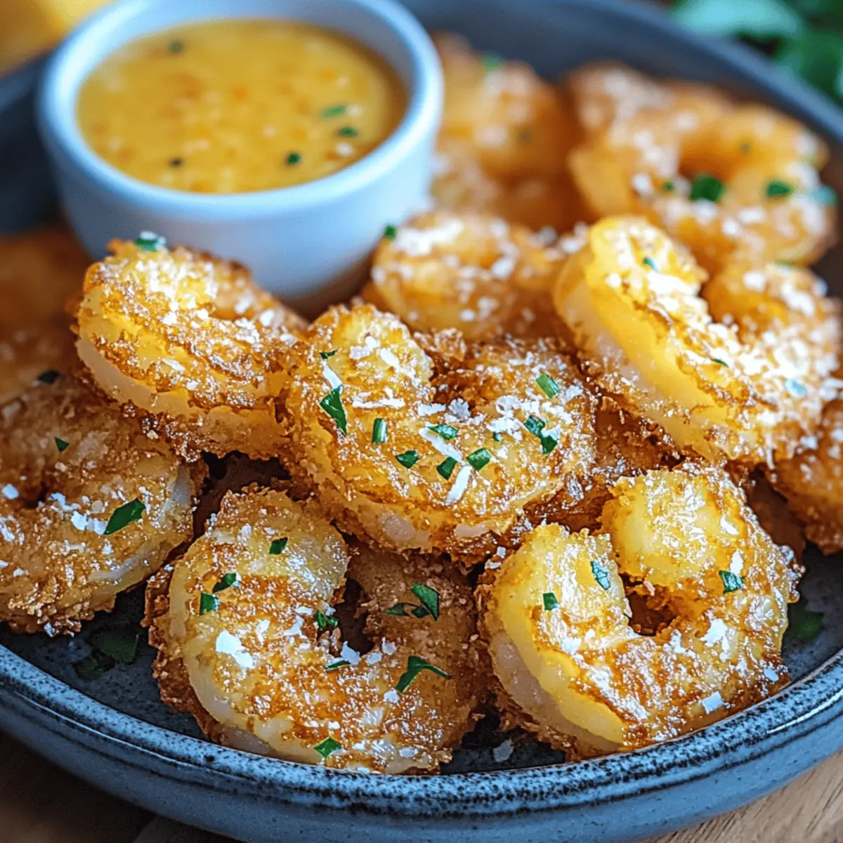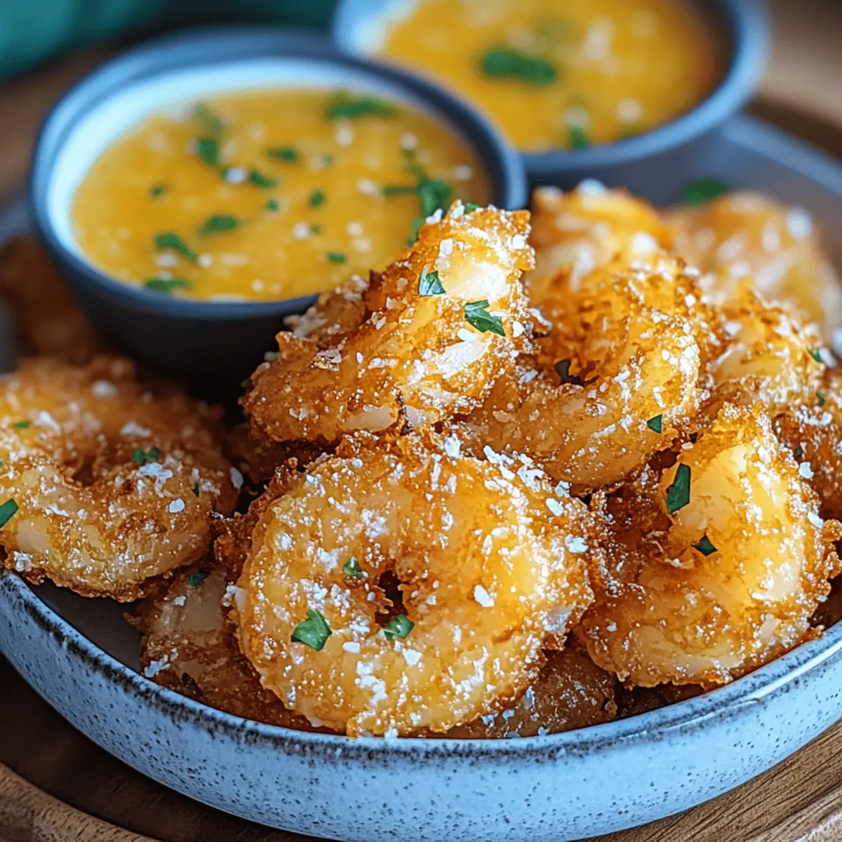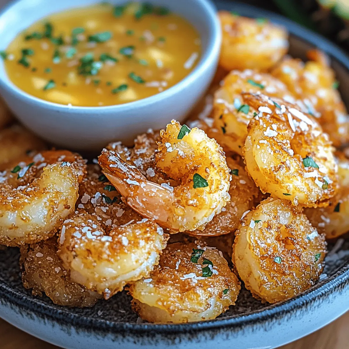 As I stood in my kitchen, the scent of coconut mingled with the sweet aroma of pineapple, transporting me straight to a sun-soaked beach. This is not just a meal; it’s a delightful escape. My Crispy Coconut Fried Shrimp with Pineapple Sauce is a testament to tropical flavors that can brighten any day. Quick and easy to whip up in under 30 minutes, this dish is a guaranteed crowd-pleaser—perfect for a laid-back dinner or impressing guests at your next gathering. Plus, with a gluten-free option available, everyone can savor this sensational combination of textures and tastes. Are you ready to dive into a tropical culinary adventure? Why Is This Shrimp Recipe So Irresistible? Simplicity: This recipe features a straightforward process, making it accessible for home cooks of all skill levels. Tropical Freedom: Experience coconut’s crunch paired with a vibrant pineapple sauce, transporting your taste buds straight to paradise. Quick & Easy: With just 30 minutes from prep to plate, you can enjoy a gourmet meal without spending all day in the kitchen. Gluten-Free Option: Adaptable for gluten-sensitive diners, the use of gluten-free flour ensures everyone can join in this flavor celebration. Crowd-Pleaser: Whether for a casual family dinner or a festive gathering, these shrimp are sure to impress with their eye-catching presentation and delightful taste. Versatile Pairing: Serve these crispy delights with jasmine rice or a refreshing salad for a complete meal that suits any occasion. Coconut Fried Shrimp with Pineapple Sauce Ingredients For the Shrimp • Large Shrimp – Use peeled and deveined shrimp for convenience. • All-Purpose Flour – Base coating that can be substituted with gluten-free flour for a gluten-free version. • Cornstarch – Essential for achieving that perfect crunch; do not substitute if you want to maintain texture. • Salt & Pepper – Season to enhance the shrimp’s natural flavor. • Eggs – Acts as a binding agent; make sure they’re well beaten before use. • Shredded Coconut – Choose unsweetened for a balanced tropical flavor without excess sweetness. • Panko Breadcrumbs (optional) – Adds an extra layer of crunch; can be replaced with crushed gluten-free crackers. • Vegetable Oil – Ideal for frying; opt for oils with a high smoke point for best results. For the Pineapple Sauce • Fresh Pineapple Puree – The foundation of the sauce; can be swapped with canned pineapple in a pinch. • Minced Garlic & Grated Ginger – Fresh variances elevate the sauce’s flavor profile. • Honey or Brown Sugar – Sweetness that you can adjust based on your preference for a delightful complement. • Rice Vinegar or Lime Juice – Helps to balance the sauce with acidity; either can be used interchangeably. Step‑by‑Step Instructions for Coconut Fried Shrimp with Pineapple Sauce Step 1: Prepare the Shrimp Start by peeling and deveining your large shrimp, ensuring they are clean and free of any shell bits. Pat them dry with a paper towel to remove excess moisture, promoting better adhesion for the coating. This step is crucial for achieving crispy Coconut Fried Shrimp, so take your time to ensure they are nice and dry. Step 2: Set Up Your Breading Station Create a three-bowl breading station for your shrimp. In the first bowl, combine all-purpose flour, cornstarch, salt, and pepper until evenly mixed. In the second bowl, beat your eggs until well-combined, while in the third bowl, mix shredded coconut with optional panko breadcrumbs for an extra crunch. This setup will streamline the coating process. Step 3: Coat the Shrimp Begin the coating process by taking a shrimp and first dredging it in the flour mixture, shaking off any excess. Next, dip the shrimp into the beaten eggs, ensuring it is completely covered. Finally, coat the shrimp with the coconut and panko mixture, pressing gently to ensure a good adherence of the coating. Set aside on a plate while you heat the oil. Step 4: Heat the Oil for Frying In a large skillet, pour enough vegetable oil to cover the bottom by about 1/2 inch. Heat the oil over medium heat until it reaches 350°F (175°C). You can test the oil’s readiness by dropping in a small piece of bread; it should sizzle immediately. This temperature is essential for frying crispy Coconut Fried Shrimp to perfection. Step 5: Fry the Shrimp Once the oil is hot, carefully add the coated shrimp to the skillet in batches, ensuring not to overcrowd. Fry each side for approximately 2-3 minutes until they turn a beautiful golden brown and become crispy. Use a slotted spoon to remove the shrimp and drain them on paper towels, keeping them warm while you finish frying remaining shrimp. Step 6: Make the Pineapple Sauce In a small saucepan, combine your fresh pineapple puree, minced garlic, grated ginger, honey, and rice vinegar. Cook this mixture over medium heat, stirring occasionally until it starts to simmer. Allow the sauce to simmer for about 5-7 minutes or until it thickens slightly, creating a deliciously tangy complement to your Coconut Fried Shrimp. Step 7: Serve with Style Once everything is ready, plate the crispy Coconut Fried Shrimp beautifully. Drizzle the sweet and tangy pineapple sauce over the top, or serve it on the side for dipping. For additional freshness, garnish with herbs or lime wedges if desired. Enjoy this tropical dish, complete with its delightful crunch and zesty flavor! Coconut Fried Shrimp with Pineapple Sauce Variations Feel free to make this delectable dish your own with these fun twists that will tantalize your taste buds! Vegetarian Delight: Swap shrimp for firm tofu or plant-based shrimp for a satisfying vegetarian option. The crispy textures will still shine, while the tropical flavors remain intact. Grilled Twist: Serve the shrimp on skewers alongside grilled pineapple chunks for a summer cookout twist. The charred sweetness will elevate your tropical experience. Sauce Upgrade: Stir in diced bell peppers or 