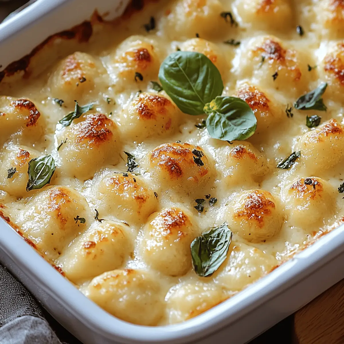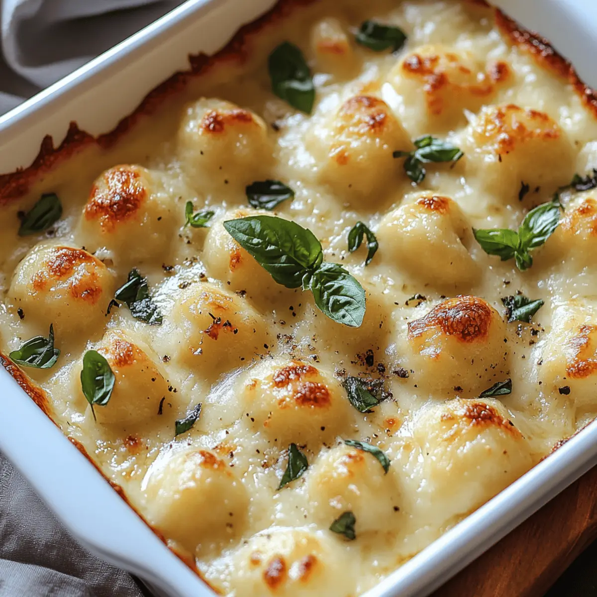 As I rummaged through my pantry, I stumbled upon a little package of gnocchi that whispered sweet promises of comfort and joy. This Creamy Baked Gnocchi recipe delivers just that, transforming simple ingredients into a luxurious meal that’s perfect for any weeknight. With its pillowy dumplings blanketed in a rich, herb-infused white sauce, it’s a vegetarian delight that can be prepared in mere minutes, making it both a crowd-pleaser and a time-saver. The beauty of this dish lies in its versatility, allowing you to easily customize it with your favorite proteins or seasonal vegetables. Ready to elevate your dinner routine and indulge in this cheesy comfort? Let’s dive into the recipe and discover how to make this heartwarming dish together! Why is Creamy Baked Gnocchi a Must-Try? Comforting Delight: This dish is pure comfort food, ideal for chilly evenings when you crave warmth. Cheesy Goodness: A dreamy blend of Parmesan and Fontal cheese melts beautifully, creating a rich sauce that envelops each tender gnocchi. Quick & Easy: With minimal prep time, you can whip this up in under 30 minutes, making it perfect for busy weeknights. Customizable: Add your favorite proteins or seasonal veggies to make it your own. Want something hearty? Think chicken or spinach for a nutritious boost! Impress Your Guests: Serve this creamy delight at your next dinner party, and watch your friends rave over your culinary skills! Dive into this Creamy Baked Gnocchi now and turn simple ingredients into a delicious masterpiece! Creamy Baked Gnocchi Ingredients Whether you’re cooking for family or a special gathering, the ingredients for this Creamy Baked Gnocchi are sure to bring warmth and joy to your table. For the Gnocchi Gnocchi – Choose store-bought for convenience or make your own for an authentic touch. For the Sauce Butter – Used to create a roux, adding richness to the sauce. Milk – Forms the creamy base; use 2% or substitute with cream for extra indulgence. Flour – Thickens the sauce to achieve that velvety consistency. Salt – Enhances the flavors for a delightful taste experience. Basil – Provides a fresh herbal note that complements the cheeses. Oregano – Contributes to the aromatic profile, enhancing the overall flavor. For the Cheesy Goodness Parmesan cheese – Adds a savory umami flavor; opt for freshly grated for the best melt! Fontal cheese – Melts beautifully, creating a creamy texture; you can also use Gruyere or Gouda if desired. For Garnish Fresh thyme – Adds a refreshing herbal aroma and a pop of color to the dish. Get ready to enjoy this comforting bowl of Creamy Baked Gnocchi that’s sure to become a family favorite! Step‑by‑Step Instructions for Creamy Baked Gnocchi Step 1: Preheat and Prep Begin by preheating your oven to 375°F (190°C). While the oven warms up, lightly grease a baking dish with butter or oil to prevent sticking. This simple preparation sets the stage for your Creamy Baked Gnocchi, ensuring a delightful golden crust when it’s finished baking. Step 2: Cook the Gnocchi In a large pot of boiling salted water, cook the gnocchi according to the package instructions, usually around 2-3 minutes until they float to the surface, indicating they’re ready. Once cooked, drain them gently using a colander and set aside, allowing them to cool slightly while you prepare the sauce. Step 3: Make the Roux In a medium saucepan over medium heat, melt 4 tablespoons of butter until bubbly and frothy. Whisk in 4 tablespoons of flour to create a roux, stirring continuously for about 1 minute until golden and lightly fragrant. This forms the base of your creamy sauce for the gnocchi. Step 4: Whisk in Milk Gradually add 2 cups of milk to the roux, whisking constantly to avoid lumps. Continue to cook and whisk for about 3-5 minutes until the sauce thickens and coats the back of a spoon. You’ll know it’s ready when it bubbles gently, transforming into a luscious, creamy base for your Creamy Baked Gnocchi. Step 5: Season the Sauce Remove the pan from heat and stir in ½ teaspoon of salt, 1 teaspoon of dried basil, and 1 teaspoon of dried oregano, allowing the herbs to infuse their flavors. Mix in half of the grated Parmesan cheese and all of the Fontal cheese, stirring until melted and the sauce is smooth, inviting, and utterly delicious. Step 6: Combine Gnocchi and Sauce Gently fold the cooked gnocchi into the creamy cheese sauce, ensuring that every piece is generously coated. This combination of soft gnocchi and rich sauce is the heart of the Creamy Baked Gnocchi, ready to be transformed into a comforting dish. Step 7: Transfer to Baking Dish Carefully spoon the gnocchi and sauce mixture into the prepared baking dish, spreading it evenly. Sprinkle the remaining grated Parmesan cheese over the top, creating a cheesy crust that will bake to perfection. This step adds an irresistible layer of flavor that elevates your dish. Step 8: Bake to Perfection Place the baking dish in the preheated oven and bake for 15-20 minutes, or until the cheese is golden and bubbly. Keep an eye on it, ensuring the top develops a delightful crust while the insides remain creamy and luscious. The aroma that fills your kitchen will be irresistible! Step 9: Garnish and Serve Once baked, remove your Creamy Baked Gnocchi from the oven and let it cool slightly. Garnish with fresh thyme leaves for an aromatic touch and a pop of color. Serve this warm and comforting dish immediately to enjoy the velvety goodness that awaits. Creamy Baked Gnocchi Variations Personalize your Creamy Baked Gnocchi with these exciting variations that add flavor, texture, and creativity to this cozy dish! Dairy-Free: Substitute all dairy with plant-based milk and vegan cheese for a delicious, lactose-free twist. Protein Boost: Add cooked chicken, sausage, or shrimp for a hearty addition that transforms this dish into a satisfying meal. Your family will love the heartiness! Vegetable Delight: Incorporate sauté