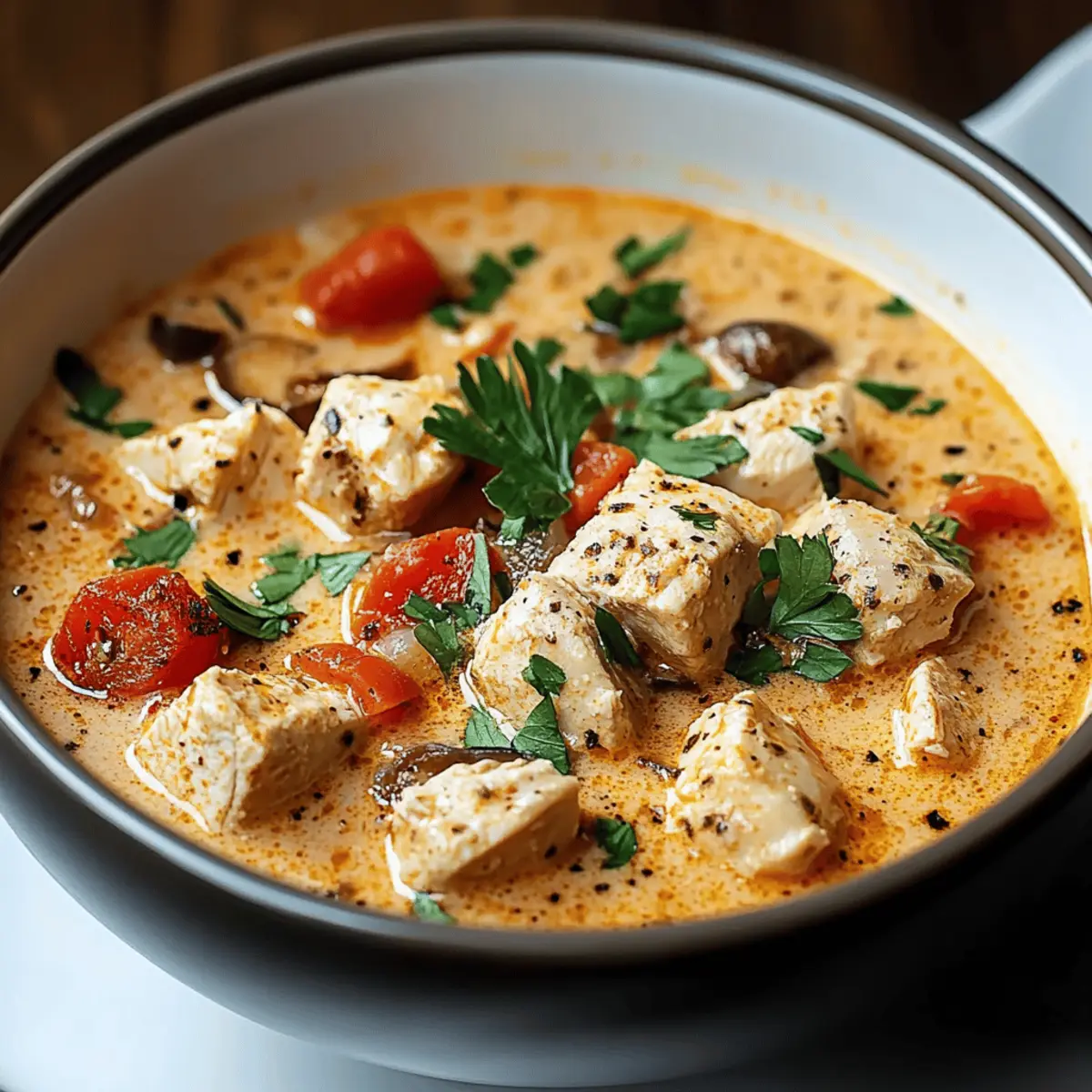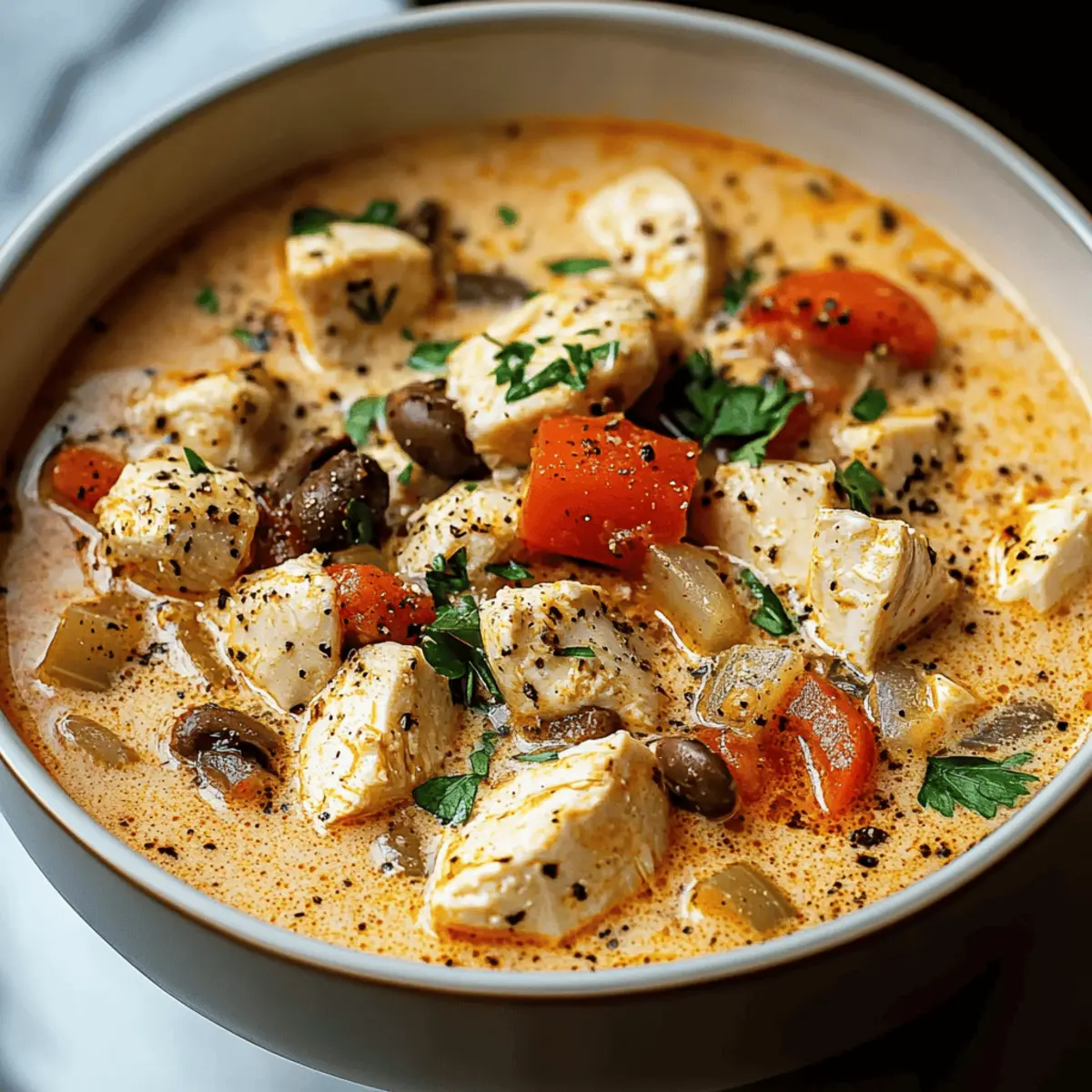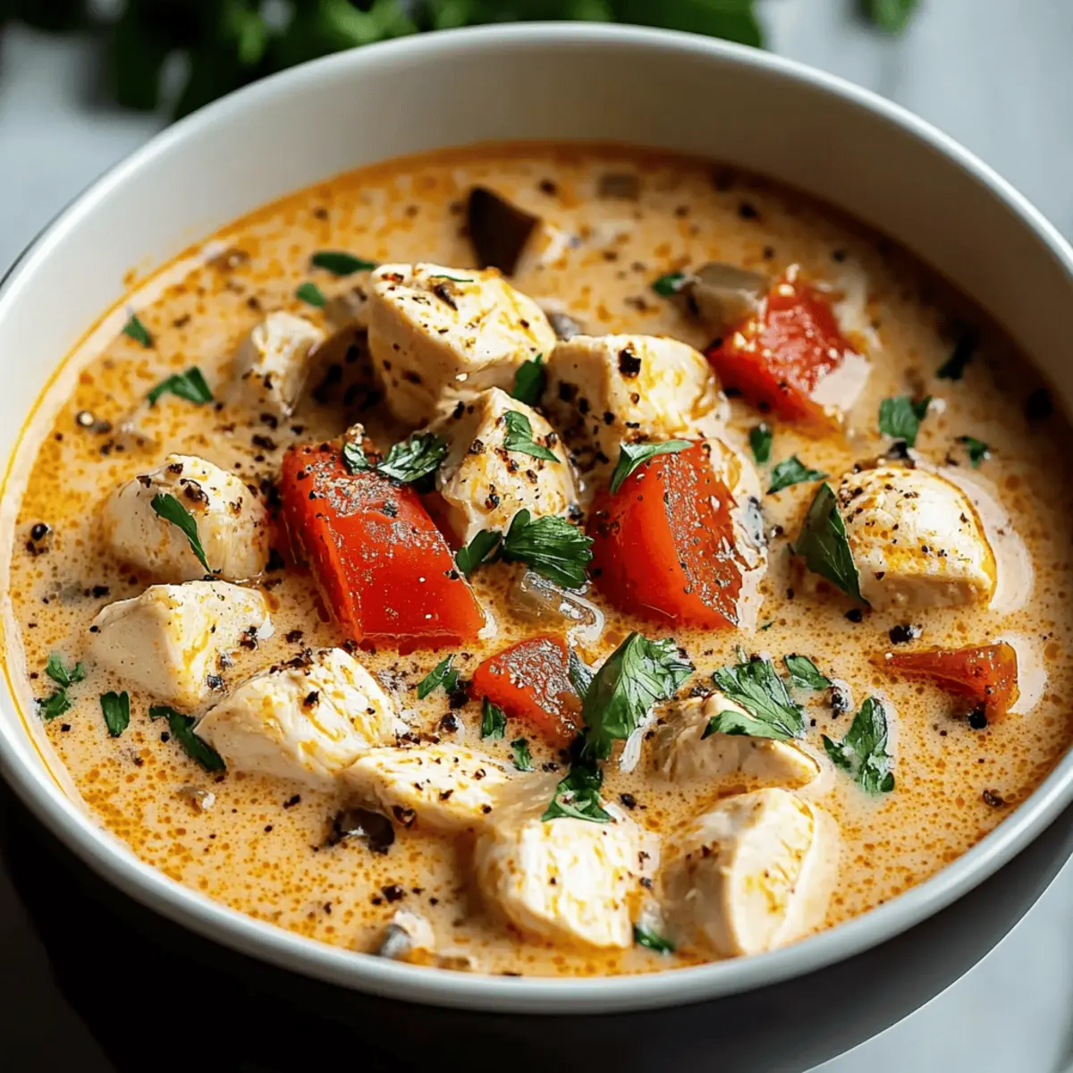 What if I told you that indulgent comfort food can also offer a spicy twist? This Creamy Cajun Chicken Soup is the perfect blend of rich, velvety texture and bold flavors that will take your taste buds on a delightful journey through Cajun cuisine. The best part? It’s surprisingly easy to whip up, making it an ideal choice for those chilly evenings or when you want to impress at your next family gathering. Packed with hearty ingredients and just the right amount of heat, this soup is a true crowd-pleaser and a cozy hug in a bowl. Are you ready to stir up some magic in your kitchen? Let’s dive in! Why is this soup a must-try? Creamy Texture: This soup boasts a velvety smoothness that makes every spoonful feel like a warm embrace. Spicy Kick: With a perfect balance of Cajun spices, it awakens your taste buds without overwhelming them. Quick & Easy: Whip it up in just 30 minutes! Perfect for busy weeknights or a last-minute gathering. Versatile Ingredients: Feel free to customize with your favorite veggies or adjust the heat level to suit your palate. If you’re in the mood for something lighter, check out my suggested variations and ingredient tweaks. Crowd-Pleaser: This comforting bowl of goodness will impress both family and friends, leaving them asking for seconds! Creamy Cajun Chicken Soup Ingredients For the Base Butter – Adds richness and flavor to create a delicious foundation for the soup. Onions, Celery, Bell Pepper – The holy trinity of Cajun cooking, providing a robust vegetable base that enhances flavor. Garlic – Elevates the aroma and depth of flavor; sauté briefly to prevent burning. For the Soup Cajun Seasoning – Delivers the signature spicy and smoky flavor that makes this creamy Cajun chicken soup special; feel free to adjust to taste. Chicken Stock – Forms the soup base, contributing depth; opt for low-sodium versions if desired. Diced Tomatoes – Adds acidity and a hint of sweetness; canned versions are easy and convenient. Chicken Breasts – Sliced and sautéed for tenderness; substituting with chicken thighs can enhance richness. Heavy Cream – Enriches the soup, lending a creamy texture; using it at room temperature ensures smooth incorporation. For the Finish Green Onions/Parsley – Perfect for garnishing, adding a touch of freshness and elevating presentation. Optional Add-Ins Lemon Juice – Brightens the dish with a zesty kick; perfect for balancing flavors. Hot Sauce or Jalapeños – For those who desire an extra spicy punch! Step‑by‑Step Instructions for Creamy Cajun Chicken Soup Step 1: Melt the Butter In a large Dutch oven, melt 2 tablespoons of butter over medium-high heat. Allow the butter to foam and turn slightly golden, which should take about 1-2 minutes. This will create a rich foundation for your creamy Cajun chicken soup. Once melted, prepare to add your vegetables. Step 2: Sauté the Vegetables Add 1 diced onion, 1 diced celery stalk, and 1 diced bell pepper to the Dutch oven. Sauté the vegetables for about 5 minutes, stirring frequently until they’re softened and become fragrant. This “holy trinity” of Cajun cooking will enhance the soup’s flavor profile beautifully. Step 3: Incorporate Garlic and Seasoning Stir in 3 minced garlic cloves and half of your Cajun seasoning. Continue to sauté for an additional 30-60 seconds until the garlic becomes fragrant but not browned. This step is crucial as it builds the aromatic base of your creamy Cajun chicken soup. Step 4: Add Chicken Stock and Tomatoes Pour in 4 cups of chicken stock and add 1 can of diced tomatoes (drained). Bring the mixture to a low boil, then cover the pot and allow it to simmer gently for about 10 minutes. The bubbling broth will meld together the Cajun flavors, offering a tantalizing scent. Step 5: Sear the Chicken While the broth is simmering, season 1 pound of sliced chicken breasts with the remaining Cajun seasoning. In a skillet over medium heat, sear the chicken for approximately 3-5 minutes per side until golden brown and cooked through. This helps to lock in the chicken’s juicy flavor. Step 6: Combine Chicken and Cream Add the seared chicken to the Dutch oven and then pour in 1 cup of heavy cream. Stir everything together and let it simmer on low heat for another 3-5 minutes, allowing the flavors to blend beautifully in your creamy Cajun chicken soup. Step 7: Final Seasoning and Garnish Taste your soup and adjust the seasoning as needed, adding salt or extra Cajun seasoning for a bolder flavor. Finally, serve hot and garnish with chopped green onions or parsley for a fresh finish that brightens up the dish. Enjoy your handmade creation! How to Store and Freeze Creamy Cajun Chicken Soup Refrigerator: Store leftovers in an airtight container in the fridge for up to 3 days. This ensures your creamy Cajun chicken soup retains its flavor and texture. Freezer: For longer storage, freeze the soup without heavy cream for up to 3 months. When ready to enjoy, thaw in the fridge overnight, then reheat and stir in cream before serving. Reheating: Reheat the soup on the stove over low heat, adding a splash of chicken stock if the consistency is too thick. Stir occasionally for even heating. Airtight Storage: Always use airtight containers to prevent freezer burn, ensuring that your creamy Cajun chicken soup remains delicious when you heat it up again. Expert Tips for Creamy Cajun Chicken Soup Sautéing Secrets: Take your time sautéing the holy trinity of vegetables until they’re fragrant. This enhances the base flavor of your creamy Cajun chicken soup. Temperature Matters: Always add cream at room temperature to prevent curdling. Cold cream can disrupt the soup’s creamy consistency. Control the Heat: Adjust the spice level with cayenne or hot sauce. Start small and add more gradually to suit your taste without overpowering the dish. Freezing Advice: If planning to freeze, omit the cream beforehand. Add it when reheating for the best texture and taste