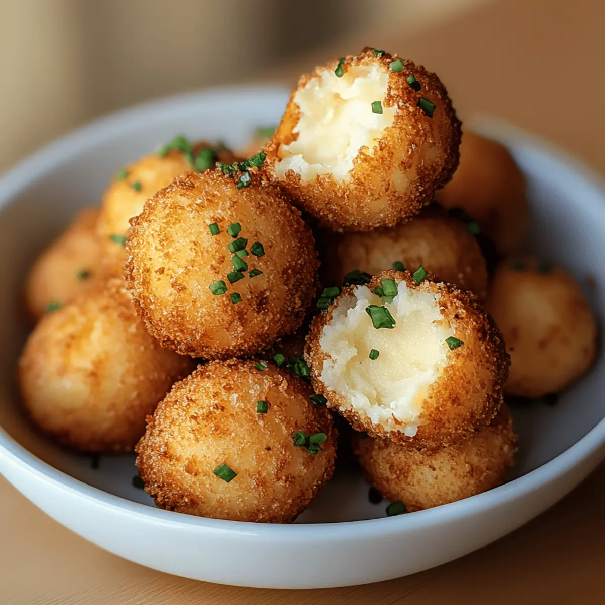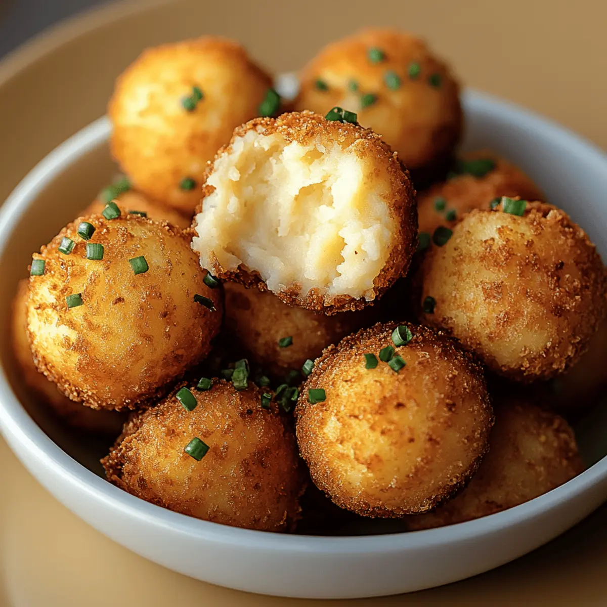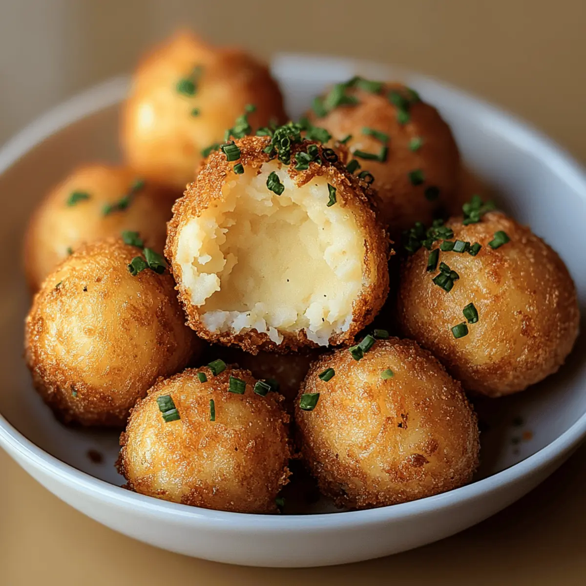 As I fished out a perfectly golden ball from the bubbling oil, the kitchen filled with an aroma that made my heart flutter. Crispy Fried Mashed Potato Balls aren’t just another snack; they’re a delightful journey into comfort food bliss, blending creamy, fluffy potatoes with an irresistible crunch. Whether you’re hosting a gathering or seeking a cozy night in, this recipe shines in its simplicity and versatility, allowing you to customize it to suit any diet or taste preference. With just a handful of ingredients and straightforward steps, you can create a crowd-pleasing treat that’s both gluten-free and satisfying. Ready to take your mashed potato game to the next level? Let’s dive into the delicious world of these crispy delights! Why Are These Potato Balls So Irresistible? Crispy exterior, golden brown and crunchy, perfectly contrasting the creamy interior of fluffy mashed potatoes—every bite feels like a warm hug. Versatile options mean you can easily swap ingredients to suit your dietary needs, like using gluten-free breadcrumbs or making them vegan with nutritional yeast. Quick to prepare, this snacking delight requires minimal time while offering maximum flavor, making it the ideal solution for both gatherings and cozy nights. If you love simple yet satisfying snacks, you’ll want to serve these alongside Crispy Air Fryer Chicken or enjoy them dipped in a tasty garlic aioli! Crispy Fried Mashed Potato Balls Ingredients • Let’s gather everything you need for these delightful bites! For the Base: Potatoes – starchy varieties like Russets create a fluffy mash ideal for these crispy fried mashed potato balls. Butter – adds a rich flavor; substitute with a dairy-free alternative for a vegan option. Cheese – optional for creaminess; use nutritional yeast for a vegan substitute if desired. For Binding and Coating: Egg – binds the mixture; a flaxseed or chia seed egg can work as a vegan alternative. Bread Crumbs – forms the crunchy exterior; gluten-free breadcrumbs are perfect for gluten-sensitive diets. For Flavor Enhancement: Seasonings – customize with favorites like garlic powder, onion powder, or fresh chives for extra zing. For Frying: Oil – choose oils with high smoke points, such as vegetable oil, for frying to ensure the perfect crispiness. Step‑by‑Step Instructions for Crispy Fried Mashed Potato Balls Step 1: Prepare the Mashed Potatoes Peel and chop about two pounds of Russet potatoes into uniform pieces. Boil in a large pot of salted water for 15–20 minutes or until fork-tender. Drain and return to the pot, then mash with 4 tablespoons of butter and ½ cup of cheese until creamy and smooth, allowing them to cool slightly before moving to the next step. Step 2: Shape into Balls Once the mashed potatoes are cool enough to handle, scoop out a generous tablespoon of the mixture and roll it into a ball about the size of a golf ball. Place the formed balls on a parchment-lined tray, ensuring they are evenly spaced. This step helps maintain their shape and prevents sticking as you prepare the crispy fried mashed potato balls for coating. Step 3: Coat the Balls In one bowl, beat two eggs with a splash of water to create an egg wash. In another bowl, pour in 1 cup of breadcrumbs. Dip each potato ball into the egg wash, ensuring full coverage, and then roll in the breadcrumbs until well-coated. This double layer creates an irresistibly crunchy exterior when fried. Repeat until all balls are coated. Step 4: Heat the Oil In a large, deep skillet or pot, pour in enough oil to submerge the potato balls about halfway. Heat the oil to 350°F (175°C). Use a thermometer for accuracy, as proper temperature ensures a crispy finish. When the oil is shimmering, prepare for the exciting frying step that will transform the coated potato balls into crispy fried mashed potato balls. Step 5: Fry the Balls Carefully drop the potato balls into the hot oil in batches, making sure not to overcrowd the pan. Fry for about 3–4 minutes, or until they reach a beautiful golden brown color. Use a slotted spoon to gently turn them halfway through cooking for even browning. Once done, transfer them to a plate lined with paper towels to drain any excess oil. Step 6: Serve and Enjoy These crispy fried mashed potato balls are best served hot, offering a delightful crunch with every bite. Pair them with your favorite dipping sauces like garlic aioli or ranch dressing. Scatter a few chopped chives or parsley on top for added flavor and presentation. Gather your friends and family to share this comforting delight—it’s sure to be a hit! What to Serve with Crispy Fried Mashed Potato Balls As you savor these delightful bites, consider rounding out your meal with complementary sides that enhance the cozy comfort of this dish. Creamy Spinach Salad: A fresh, vibrant salad with tender spinach and a tangy dressing, providing a light contrast to the crispy fried mashed potato balls. Garlic Aioli: This rich, garlicky dip perfectly complements the crunchy exterior and creamy center of the potato balls, elevating each bite into a flavor-packed experience. Roasted Vegetables: Seasonal veggies roasted to perfection add a savory touch, introducing a crunchy texture that balances well with the soft potato goodness. Buttery Corn on the Cob: Sweet, juicy corn brushed with melted butter pairs beautifully, creating a delightful harmony of flavors reminiscent of a backyard barbecue. Homemade Ranch Dressing: Whip up a quick ranch for dipping; its herby, creamy profile enhances the potatoes, bringing a classic taste to the table. Sparkling Lemonade: For a zesty refreshment, serve a chilled sparkling lemonade that adds a bright note, balancing the rich flavors of the fried potato balls. Pairing these sides with your crispy fried mashed potato balls will turn mealtime into a delightful culinary celebration! Expert Tips for Crispy Fried Mashed Potato Balls • Preheat the Oil: Ensure your oil is at 350°