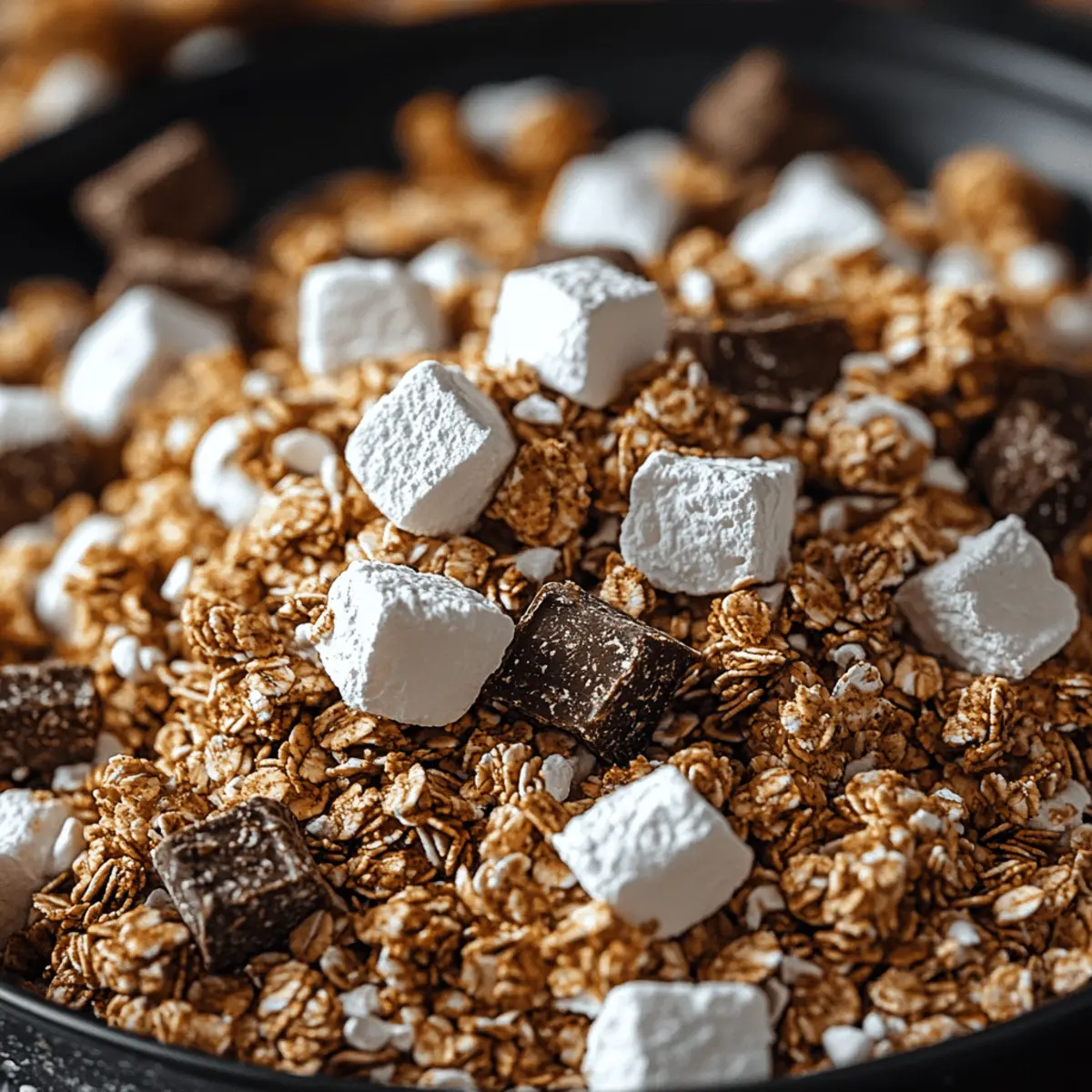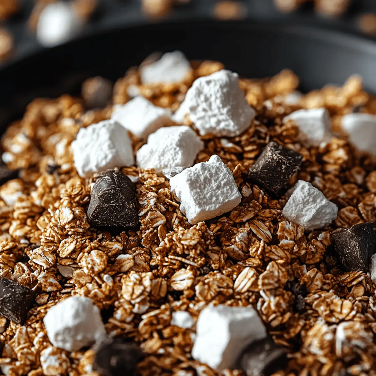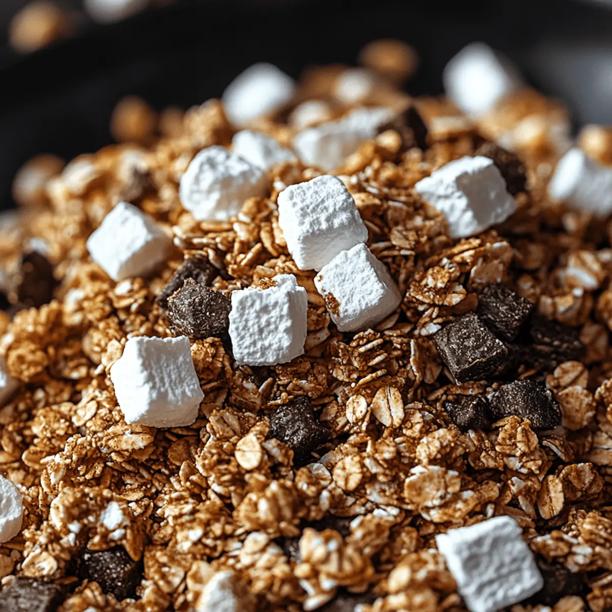 As I stood in my kitchen, the sweet scent of melting chocolate mingled with the aroma of toasted oats, instantly transporting me back to fireside evenings filled with laughter and gooey s’mores. This S’mores Granola recipe is a delightful twist on that classic camping treat, transforming it into a crunchy yet chewy snack that’s perfect for any time of day. What I love most about this recipe is how quick it is to prepare and how easily it adapts to my dietary needs—whether gluten-free or simply a craving for a nostalgic taste. Packed with rich chocolate, fluffy mini marshmallows, and buttery graham cracker goodness, it’s an indulgence that helps satisfy those sweet cravings without the fuss. Curious how you can blend comfort and convenience into a single snack? Let’s dive into this easy, homemade treat! Why is S’mores Granola a Must-Try? Decadent flavors: This S’mores Granola brings the beloved tastes of childhood camping trips right into your kitchen. Quick and easy: With minimal prep time, you can whip up this delightful snack without breaking a sweat. Customizable: Easily cater to dietary preferences by swapping in gluten-free ingredients or alternative sweeteners. Snack appeal: A perfect treat for both kids and adults, this granola offers a satisfying crunch alongside gooey sweetness. Versatile usage: Enjoy it solo or sprinkle it over yogurt and smoothie bowls. You’ll find that this S’mores Granola is more than just a snack; it’s a delicious nostalgia bomb that everyone will love! S’mores Granola Ingredients For the Base • Rolled Oats – A crunchy base packed with fiber to keep you energized. • Graham Cracker Crumbs – Adds the quintessential s’mores flavor; opt for gluten-free versions if needed. For the Sweetening • Honey (or Maple Syrup) – Natural binder and sweetener; use maple syrup for a vegan alternative. • Coconut Oil – Provides healthy fats and binds the ingredients; substitute with unsalted butter for a richer taste. For Flavor Enhancement • Vanilla Extract – A splash of this lovely essence enhances the overall flavor. For the Chewy Goodness • Mini Marshmallows – For that signature chewy texture; add after baking to keep them gooey. • Chocolate Chips – Rich, melty goodness in every bite; use dairy-free chips for a vegan-friendly treat. Get excited about this S’mores Granola recipe and the delightful flavor combinations it offers! Step‑by‑Step Instructions for S’mores Granola Step 1: Preheat the Oven Begin by preheating your oven to 325°F (160°C). While it’s warming, line a large baking sheet with parchment paper to prevent sticking and ensure easy cleanup later. This preparatory step is crucial for achieving that perfectly toasted flavor in your S’mores Granola. Step 2: Combine Dry Ingredients In a large mixing bowl, combine rolled oats and graham cracker crumbs. Use a spatula or a wooden spoon to mix these dry ingredients thoroughly, ensuring they are evenly distributed. The oats will provide structure, while the graham cracker crumbs introduce that s’mores essence, setting the stage for a tasty granola. Step 3: Prepare the Wet Mixture In a small saucepan, combine honey and coconut oil. Heat the mixture over low to medium heat until both are melted and combined—this should take about 2 to 3 minutes. Once melted, remove from heat and stir in the vanilla extract, bringing a warm, inviting aroma to your S’mores Granola. Step 4: Mix Wet and Dry Ingredients Pour the warm honey and coconut oil mixture over your dry oat and graham cracker blend. With a spatula, mix everything together until the oats and crumbs are evenly coated. This step ensures your granola will clump together perfectly while baking, resulting in delightful clusters. Step 5: Bake the Granola Spread the mixture evenly onto the lined baking sheet. Place it in the oven and bake for about 20 minutes, stirring halfway through for even browning. Watch for a light golden hue—this is your visual cue that your S’mores Granola is reaching that ideal toasted finish. Step 6: Fold in Chewy Ingredients Once baked, remove the granola from the oven and allow it to cool slightly for about 10 minutes. Then, fold in mini marshmallows and chocolate chips. This step is vital to maintain the gooeyness of the marshmallows while adding in those sweet bursts of chocolate flavor. Step 7: Cool and Store Let your S’mores Granola cool completely on the baking sheet. Once cooled, transfer it to an airtight container for storage. Properly stored, this scrumptious granola can last up to two weeks, ensuring you have a tasty homemade snack ready anytime you crave something sweet. How to Store and Freeze S’mores Granola Airtight Container: Store S’mores Granola in an airtight container at room temperature for up to 2 weeks to keep it fresh and crunchy. Freezing: For longer storage, freeze the granola in a freezer-safe bag or container for up to 3 months. This way, you can enjoy your homemade treat anytime! Re-crisping: If the granola loses its crunch, warm it gently in the oven at 300°F for about 5-10 minutes. This will bring back that delightful texture! Ongoing Freshness: Always make sure the container is sealed tightly to prevent moisture from affecting the granola’s quality. S’mores Granola: Customizable Delights Explore the endless possibilities of S’mores Granola with these fun variations that will tantalize your taste buds! Gluten-Free: Substitute regular oats and graham crackers with certified gluten-free options to keep it deliciously gluten-free. Nutty Crunch: Fold in your favorite chopped nuts such as almonds or pecans before baking for an added crunch and nutty flavor. This adds a lovely complexity to your granola. Fruit Fusion: Introduce some dried fruits like cranberries or raisins to enhance the sweetness and add chewing texture. They’ll bloom with a burst of flavor in each bite. Sweet Swap: Replace honey with agave nectar or maple syrup for 