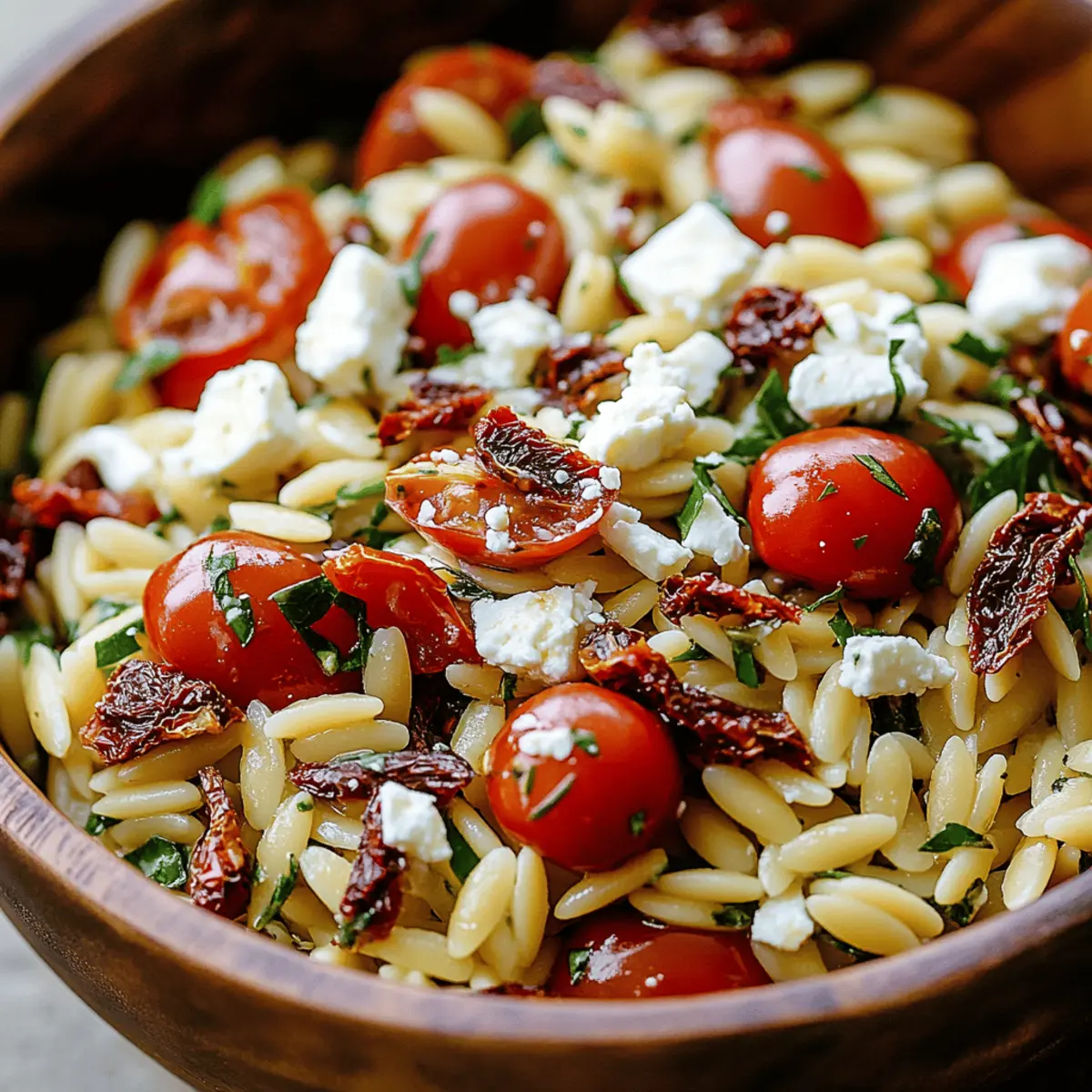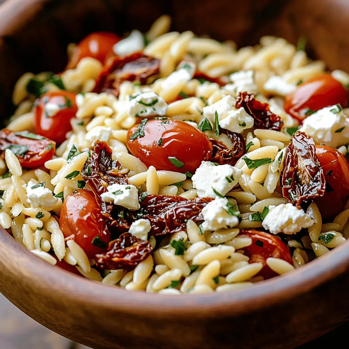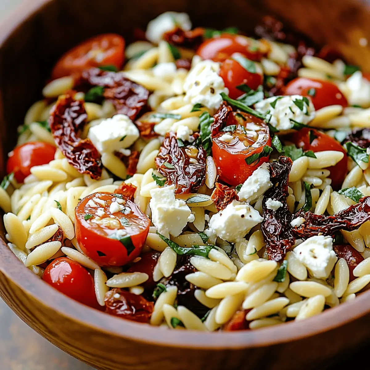 As I strolled through the vibrant streets of a Mediterranean market, the scent of sun-drenched tomatoes and fresh herbs instantly transported me to a sunlit terrace. Inspired by that moment, I created a delicious Sundried Tomato Feta Orzo Salad that brings the essence of those flavors right to your kitchen. This quick side dish balances the creamy tang of feta with the robust taste of sundried tomatoes — it’s not only a feast for the eyes but a breeze to prepare, making it the ideal addition to any meal. Whether you’re hosting a sunny barbecue or simply craving something refreshing, this salad is all about versatility and vibrant flavors. Plus, it’s easily customizable—throw in your favorite veggies or proteins for a personalized touch! Curious about how such a simple combination can leave your taste buds singing? Let’s dive in! Why is this salad a must-try? Vibrant flavors: The combination of sundried tomatoes and creamy feta brings a Mediterranean twist that will awaken your taste buds. Quick prep time: Ready in just 30 minutes, this salad is the perfect solution for those busy weeknights or impromptu gatherings. Customizable: Whether you want to add grilled chicken or swap in your favorite veggies, this recipe is adaptable to your preferences. Crowd-pleaser: Ideal for potlucks or BBQs, everyone will rave about this fresh, zesty dish! Beautiful presentation: Serve it in a glass jar for a gorgeous display that looks just as good as it tastes. Plus, if you’re looking for more Mediterranean-inspired dishes, check out this Beet Arugula Salad for another colorful addition to your table! Sundried Tomato Feta Orzo Salad Ingredients For the Salad Orzo Pasta – the base of the salad; use gluten-free orzo for a gluten-free option. Sundried Tomatoes – provide concentrated flavor and tang; roasted tomatoes can be substituted for a milder taste. Feta Cheese – adds creaminess and saltiness; swap with plant-based cheese for a dairy-free version. Cucumbers – contribute a refreshing crunch; substitute with bell peppers for a colorful twist. Kalamata Olives – enhance flavor with a briny touch; green olives can also work well. Fresh Basil & Parsley – offer herbaceous notes; use any fresh herbs you have on hand. For the Dressing Extra Virgin Olive Oil – forms the dressing’s base; opt for a quality oil for the best flavor. Lemon Juice – adds brightness; vinegar can serve as a great alternative. Minced Garlic – infuses the dressing with flavor; for a milder option, use garlic powder. Salt & Pepper – essential for seasoning; adjust to your taste preferences. This Sundried Tomato Feta Orzo Salad is a delightful blend of ingredients that will liven up any meal. Whether served at a barbecue or a casual dinner, this refreshing dish is both delicious and easy to prepare! Step‑by‑Step Instructions for Sundried Tomato Feta Orzo Salad Step 1: Cook the Orzo Begin by bringing a large pot of salted water to a rolling boil. Add the orzo pasta and cook for 8-10 minutes until al dente, stirring occasionally to prevent sticking. Once cooked, drain the orzo in a colander and rinse it under cold water to halt the cooking process. This will keep your pasta firm and perfect for the Sundried Tomato Feta Orzo Salad. Step 2: Prepare the Vegetables While the orzo is cooking, take this time to chop up the sundried tomatoes and dice the cucumber into bite-sized pieces. Pit and slice the kalamata olives, ensuring an even distribution of flavor in your salad. Finally, finely chop fresh basil and parsley, embodying the aromatic essence of the Mediterranean that will elevate your Sundried Tomato Feta Orzo Salad. Step 3: Make the Dressing In a small bowl, whisk together the extra virgin olive oil, freshly squeezed lemon juice, minced garlic, salt, and pepper. Keep whisking until the mixture is well blended and emulsified, creating a luscious dressing that will complement the salad beautifully. The zesty dressing is essential for enhancing the flavors of the Sundried Tomato Feta Orzo Salad. Step 4: Combine Ingredients In a large mixing bowl, combine the cooled orzo, chopped sundried tomatoes, diced cucumber, sliced olives, fresh herbs, and crumbled feta cheese. Gently mix everything together to ensure even distribution of the ingredients, allowing the contrasting textures to shine through. This colorful medley captures the spirit of summer and is the heart of the Sundried Tomato Feta Orzo Salad. Step 5: Add the Dressing Pour the prepared dressing over the salad mixture, and gently toss everything together until well coated. This step is crucial for ensuring that each ingredient is flavored perfectly without breaking the orzo or herbs. Allow the vibrant ingredients of the Sundried Tomato Feta Orzo Salad to meld together as you prepare for the final steps. Step 6: Chill and Serve Cover the salad with plastic wrap or transfer it to an airtight container and chill in the refrigerator for at least 30 minutes. This will allow the flavors to deepen and marry beautifully. When you’re ready to serve, give it a gentle toss once more, and enjoy this refreshing salad as a delightful side or light main dish! Expert Tips for Sundried Tomato Feta Orzo Salad Chill Time: Allow the salad to chill for at least 30 minutes before serving. This melds all the flavors beautifully, enhancing the overall taste. Ingredient Quality: Use high-quality extra virgin olive oil and fresh herbs. The better your ingredients, the more vibrant and delicious your Sundried Tomato Feta Orzo Salad will be! Avoid Overcooking: Make sure to cook the orzo al dente. Overcooking can lead to mushy pasta, which will affect the salad’s texture. Customize Boldly: Don’t hesitate to make it your own! Add protein like grilled chicken or shrimp, or mix in seasonal vegetables for a personalized touch. Presentation Matters: For an eye-catching display, serve the salad in hollowed-out tomatoes or layered in glass jars, making it more appealing for gath