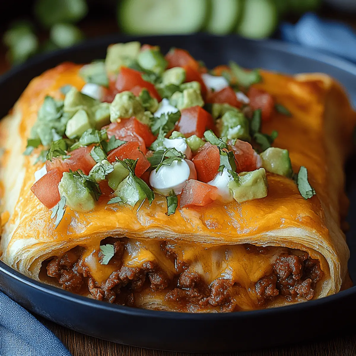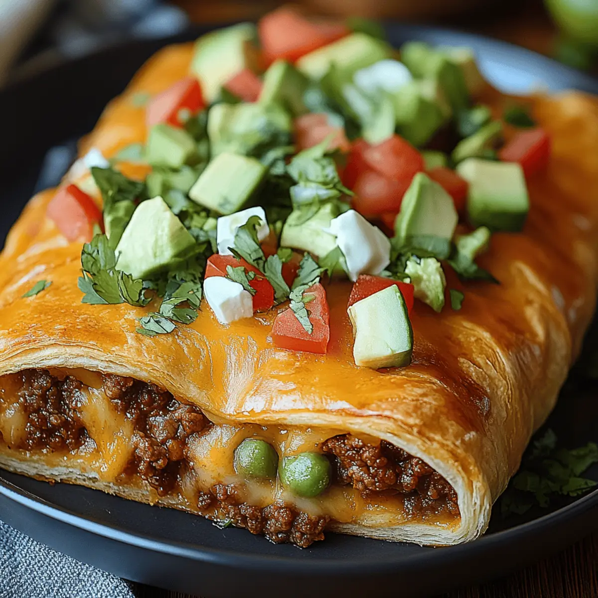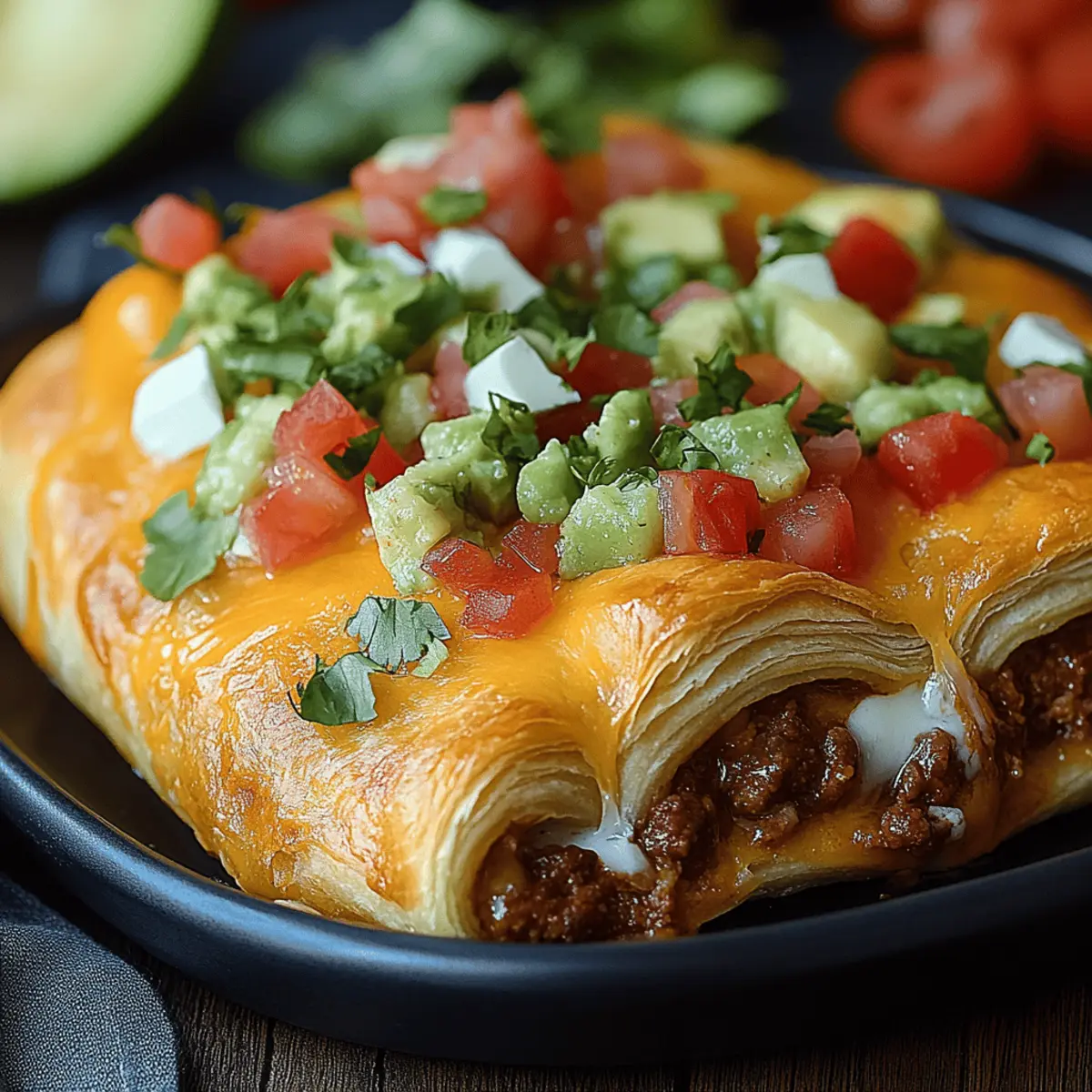 The aroma of freshly baked goods has a magical way of whisking us back to cherished moments spent in the kitchen. Today, I’m excited to share my delightful Taco Crescent Roll Bake, a dish that captures the essence of family gatherings and weeknight dinners. With its flaky crust wrapping around a hearty filling of seasoned ground beef and melted cheese, this meal is not only quick and easy but also a guaranteed crowd-pleaser. Ready in just 35 minutes, it’s perfect for busy days when you want something comforting without the fuss. The best part? There’s a gluten-free option available, so everyone can join in on the fun. Can you taste the cheesy goodness already? Let’s dive into this irresistible recipe! Why is Taco Crescent Roll Bake So Loved? Quick and Easy: This dish comes together in just 35 minutes, perfect for busy weeknights when you need a homemade meal fast! Cheesy Goodness: A generous layer of melted cheddar adds a delightful richness that appeals to both kids and adults alike. Savory Flavor: The seasoned ground beef mixed with taco spices provides a savory punch, reminding everyone of their favorite tacos. Versatile Options: Not only is this recipe adaptable with meats and even cheeses, but you can also play around with toppings like fresh cilantro and sour cream for an extra burst of flavor. Crowd Pleaser: Ideal for family dinners or casual gatherings, this Taco Crescent Roll Bake consistently wins hearts—and appetites! Who could resist a slice? Taco Crescent Roll Bake Ingredients For the Filling Ground Beef – The heart of this dish, providing savory flavor; feel free to substitute with ground turkey for a healthier twist. Taco Seasoning – Infuses the beef with bold flavors; using homemade seasoning can elevate the taste even further. Diced Onions – Adds a hint of sweetness and moisture; shallots work as a great alternative if they’re on hand. For the Dough Crescent Roll Dough – The fluffy, flaky crust that holds everything together; opt for gluten-free dough to accommodate dietary needs. For the Cheese Shredded Cheddar Cheese – This is the gooey goodness that melts perfectly on top; consider using Monterey Jack for a different cheese experience. For the Garnish Fresh Cilantro/Green Onions – Brightens up the dish with freshness; though optional, they add a nice flavor contrast. Sour Cream/Lime Juice – These toppings enhance the dish’s overall flavor profile; they’re the perfect finishing touches for your Taco Crescent Roll Bake. Step‑by‑Step Instructions for Taco Crescent Roll Bake Step 1: Brown the Beef In a large skillet, over medium heat, cook 1 pound of ground beef until browned and cooked through, about 5-7 minutes. Drain any excess fat, then add in 1 cup of diced onions and 1 packet of taco seasoning. Continue cooking for another 3-5 minutes until the onions soften and become translucent, creating a fragrant filling for your Taco Crescent Roll Bake. Step 2: Prepare Base Preheat your oven to 350°F (175°C) and grease a 9×13-inch baking dish. Unroll one can of crescent roll dough and press the seams together to form a flat, even base in the dish. Make sure the dough covers the bottom and comes slightly up the sides, creating a solid foundation for the savory filling you’ll be layering on top. Step 3: Layer Filling Spread the prepared beef mixture evenly over the crescent roll base, ensuring every bite will be filled with flavor. Once the beef is evenly distributed, generously sprinkle 2 cups of shredded cheddar cheese on top. This layer of cheesy goodness will melt beautifully while baking, adding to the deliciousness of your Taco Crescent Roll Bake. Step 4: Top and Seal Take the second can of crescent roll dough and unroll it over the beef and cheese layers. Pinch the edges and seams to seal the filling inside, creating a cozy pocket of flavors. This sealing step is crucial to keep the cheesy filling from bubbling over as it bakes, ensuring you’ll have a nice presentation when serving your Taco Crescent Roll Bake. Step 5: Bake Place the assembled Taco Crescent Roll Bake in the preheated oven and bake for 20-25 minutes. Keep an eye on the dish, and when the top is golden brown and the cheese is bubbling, it’s time to take it out. The visual cues of a flaky crust and melted cheese are indicators that your dish is perfectly cooked. Step 6: Garnish & Serve Once removed from the oven, let the Taco Crescent Roll Bake cool for a few minutes before slicing. For a fresh finish, top with chopped fresh cilantro, sliced green onions, and a dollop of sour cream, if desired. Serve warm and watch as your family gathers around for a comforting, easy dinner that everyone will love. Storage Tips for Taco Crescent Roll Bake Room Temperature: Allow the Taco Crescent Roll Bake to cool completely before serving, then store leftovers in an airtight container at room temperature for up to 2 hours. Fridge: If you have leftovers, transfer them to an airtight container and refrigerate for up to 3 days. Reheat in the oven at 350°F (175°C) to restore crispness. Freezer: You can freeze this dish for longer storage—wrap it tightly in plastic wrap and aluminum foil to prevent freezer burn. It’s best enjoyed within 2 months. Reheating: For best results, reheat portions in the oven at 350°F (175°C) until heated through. This method ensures the crust stays flaky and the filling remains deliciously warm. Taco Crescent Roll Bake Variations Feel free to unleash your creativity and make this dish uniquely yours with these delightful twists! Ground Turkey: Swap ground beef for ground turkey to lighten up the dish without sacrificing flavor. It’s a healthy alternative that tastes just as delicious! Vegetarian Option: Use black beans or lentils in place of meat for a meat-free twist. Season them with taco spices for that signature flair everyone loves. Gluten-Free Dough: Substitute regular crescent roll dough with gluten-free crescent dough to cater to gluten sens