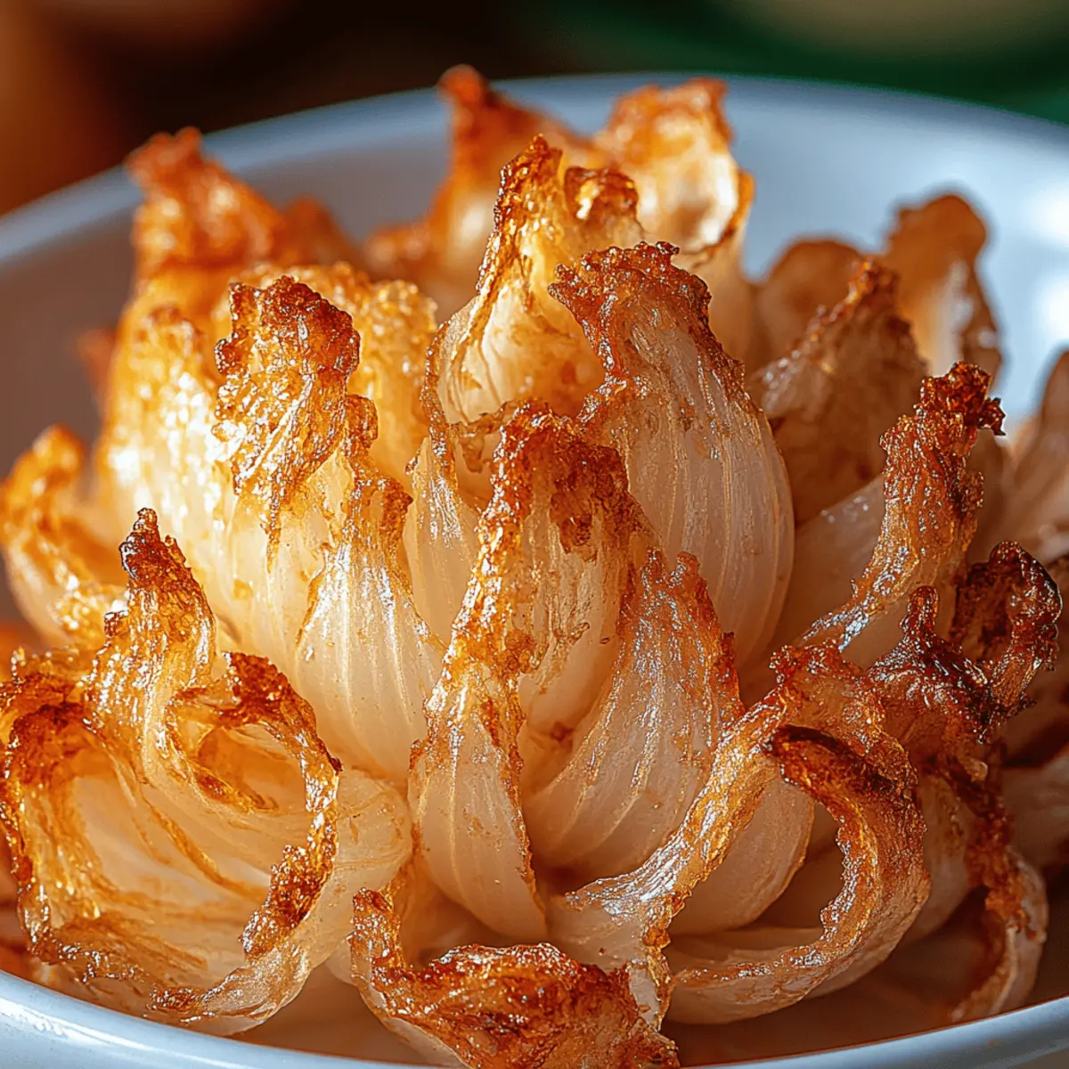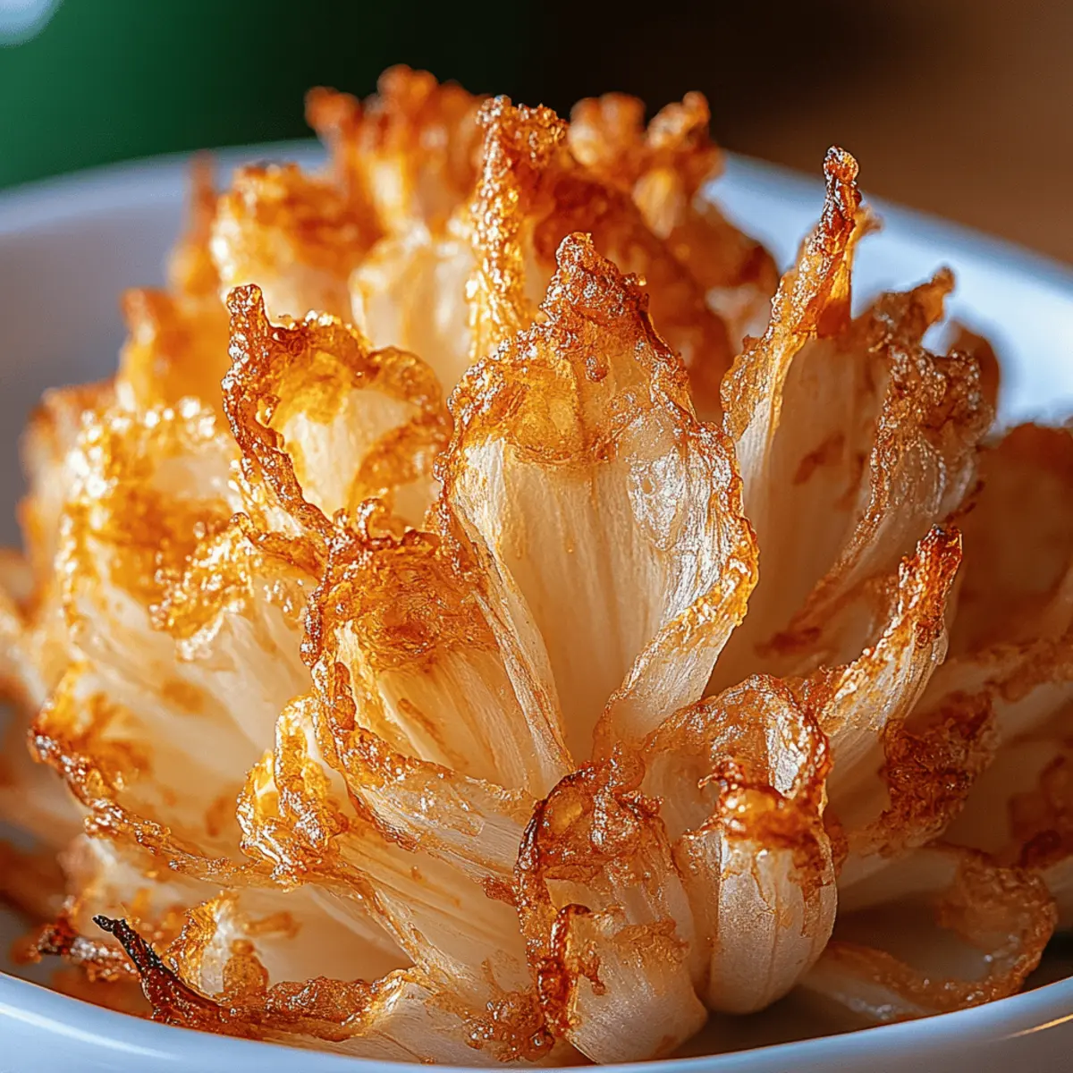 Crispy, golden-brown petals might just become the star of your snack table! With this Healthy Air Fryer Blooming Onion Petals recipe, I’m excited to share a fun twist on a classic favorite, turning a typically indulgent treat into a lighter, gluten-free version you can enjoy without compromise. Not only are these onion petals a tantalizing appetizer perfect for game days, but they’re also ideal for a quick snack that won’t leave you feeling sluggish. Imagine the delightful crunch and savory seasoning dancing on your taste buds—there’s nothing quite like it! So, are you ready to elevate your snacking game? Let’s dive into this tasty journey together! Why are these onion petals irresistible? Crispy Texture: The air fryer achieves a delightful crunch without excess oil, making every bite satisfying and guilt-free. Savory Flavors: A blend of spices, including paprika and garlic powder, elevates the taste to a new level, ensuring you’ll keep coming back for more! Adaptable Recipe: Customize the batter or try different dipping sauces like a zesty aioli or classic ranch for a fresh take. Gluten-Free Option: Easily swap out traditional flour for gluten-free alternatives, allowing everyone to indulge in this delicious treat. Quick & Convenient: With a prep time of just 15 minutes and cooking in under 15, these petals are perfect for spontaneous snack cravings. Crowd-Pleaser: Serve them at parties or game days, and watch them disappear—it’s hard to resist! You’ll love having this crispy, flavorful appetizer in your rotation, whether it’s a casual family night or a special occasion. Crispy Air Fryer Blooming Onion Petals Ingredients For the Onion • Large Onion – This is the star of the show, offering a natural sweetness and delightful crunch;黄色 onions work best, but you can use red or white if desired. For the Soak • Buttermilk – Soaking the onion in buttermilk not only tenderizes it but also helps the coating adhere beautifully; regular milk or dairy-free options can be loved substitutes. For the Coating • All-Purpose Flour – This creates a crunchy outer layer; use gluten-free flour for a gluten-free version without sacrificing taste. • Panko Breadcrumbs – These add irresistible texture, allowing for a satisfying crunch; plain breadcrumbs can work if you want a lighter option. • Paprika – A dash of this spice brings a smoky kick and lovely color to your petals; feel free to adjust to your preferred spice level. • Garlic Powder – A must for enhancing flavor, giving those petals an extra ZING; for a bolder kick, consider fresh minced garlic instead. For the Seasoning • Salt & Pepper – Simple yet essential for bringing all the flavors together beautifully; balance to taste for a perfectly seasoned snack. These crispy Air Fryer Blooming Onion Petals come together seamlessly, making it easier than ever to enjoy a homemade treat that’s as delightful as it is nutritious! Step‑by‑Step Instructions for Crispy Air Fryer Blooming Onion Petals Step 1: Prepare the Onion Start by peeling a large onion and trimming the top, leaving the root intact. Carefully slice the onion into petals, ensuring not to cut through the root so that the petals remain connected. Soak the prepared onion in buttermilk for 10-15 minutes, allowing it to tenderize and absorb flavor. Step 2: Combine Coating Ingredients While the onion soaks, grab a shallow dish and mix together all-purpose flour, panko breadcrumbs, paprika, garlic powder, salt, and pepper. This flavorful coating will give the crispy Air Fryer Blooming Onion Petals their irresistible crunch. Stir until everything is evenly combined, setting aside for easy access. Step 3: Coat the Onion After soaking, gently shake off the excess buttermilk from the onion, revealing the moist petals. Carefully lift the onion and coat each petal thoroughly with the flour mixture, ensuring every part is covered for maximum crunchy goodness. Press lightly to make sure the coating sticks well for that perfect texture. Step 4: Preheat & Cook Preheat your air fryer to 375°F (190°C) for about 5 minutes, ensuring it’s hot and ready. Once heated, place the coated onion petals in a single layer in the air fryer basket, making sure they’re not overcrowded. Lightly spray the tops with cooking oil, then cook for 12-15 minutes, flipping halfway through until golden brown and crispy. Step 5: Serve Once the crispy Air Fryer Blooming Onion Petals achieve a beautiful golden color and crunch, remove them from the air fryer and let them cool slightly. If desired, garnish with fresh herbs like parsley or chives for a pop of color and serve immediately alongside your favorite dipping sauces for an irresistibly tasty snack. Make Ahead Options These Crispy Air Fryer Blooming Onion Petals are perfect for meal prep, allowing you to enjoy a delicious snack without the last-minute hustle! You can prepare the onion and soak it in buttermilk up to 24 hours in advance, sealing it in an airtight container in the refrigerator. Additionally, you can pre-mix the coating ingredients and store them in a separate container for up to 3 days. When you’re ready to serve, simply coat the soaked onion petals, air fry them as directed, and enjoy the same delightful crunch as if you had made them fresh! This prep-ahead strategy saves you time and ensures that your onion petals are just as delicious when it’s time to indulge! Expert Tips for Crispy Air Fryer Blooming Onion Petals Perfect Petal Prepping: Make sure to slice your onion carefully and leave the root intact; this keeps the petals together while cooking, ensuring perfect crispy Air Fryer Blooming Onion Petals. Buttermilk Magic: Soaking in buttermilk is key for tenderness and adherence; don’t skip this step to maximize flavor and crunch in your onion petals. Coating Coverage: Ensure each petal is evenly coated with the flour mixture. Pressing lightly helps the coating stick better, avoiding soggy spots. Ai