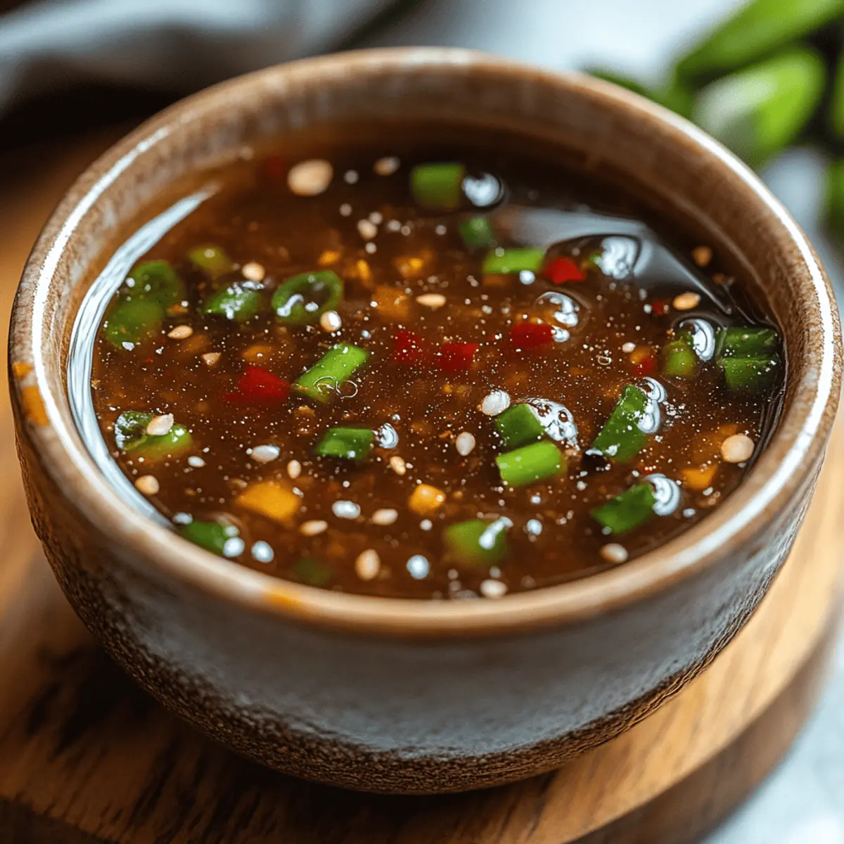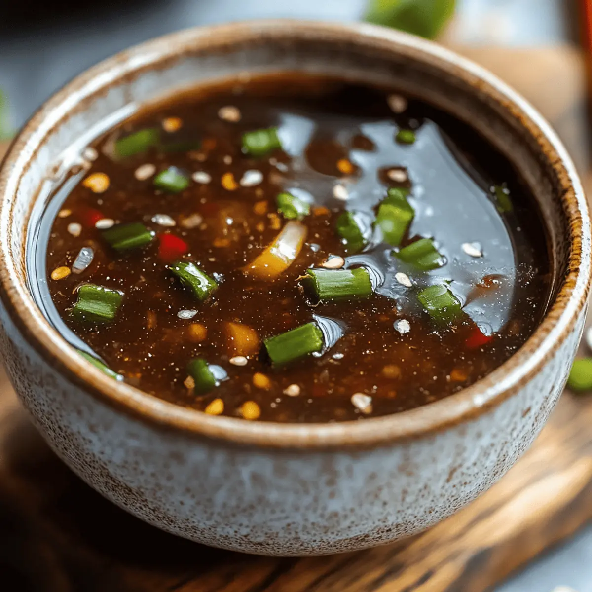 In just five minutes, you can transform a simple weeknight dinner into a culinary delight with my Quick 3-Ingredient Stir-Fry Sauce. This sauce harmonizes savory, sweet, and tangy notes, making it a versatile addition to any meal, whether you’re tossing together vibrant vegetables, tender chicken, or hearty tofu. One of the best perks? It’s crafted using pantry staples, meaning no last-minute grocery runs are necessary. Plus, it’s a bright, flavorful upgrade that keeps your meals quick and easy while being gluten-free! Curious about how to make this simple yet delicious sauce your new go-to kitchen secret? Let’s dive into the details! Why is This Sauce a Must-Try? Simplicity: With just three ingredients, this stir-fry sauce is incredibly easy to whip up, even on the busiest nights. Versatile: Whether you’re using veggies, chicken, or tofu, this sauce adapts perfectly, making every meal a delicious experience. Flavorful: The balance of savory soy sauce, sweet honey, and tangy rice vinegar creates a mouthwatering taste that elevates any dish. Quick: Ready in under five minutes, it’s the ultimate time-saver for those spontaneous weeknight dinners. Diet-Friendly: Gluten-free and easily customizable, it’s suitable for various dietary preferences—check out my tips to adjust the ingredients! Crowd Pleaser: Impress your family and friends with this delicious sauce that turns simple meals into impressive culinary delights! Stir-Fry Sauce Ingredients • Get ready to create a tasty masterpiece! For the Base Soy Sauce – This provides the savory backbone of the sauce; for gluten-free options, swap with tamari or coconut aminos. Honey – Adds a touch of sweetness and balances the flavor; feel free to use maple syrup for a vegan twist. Rice Vinegar – Contributes a refreshing tang; apple cider vinegar can be used as an alternative in a pinch. Step‑by‑Step Instructions for Quick 3-Ingredient Stir-Fry Sauce Step 1: Measure Ingredients Begin by measuring 2 tablespoons each of soy sauce, honey, and rice vinegar into a medium-sized mixing bowl. Choose a whisk for this task, as it helps to blend the ingredients smoothly. This combination forms the base of your Quick 3-Ingredient Stir-Fry Sauce, so ensure they are level for an accurate mix. Step 2: Whisk Until Smooth Next, vigorously whisk the mixture for about 30 seconds, until the honey is completely dissolved. You’ll know it’s ready when the liquid appears glossy and uniform without any clumps. This step is crucial for a smooth sauce that will coat your stir-fry evenly, enhancing the overall flavor profile of the dish. Step 3: Prepare to Cook Now that your sauce is ready, heat a large skillet or wok over medium-high heat for about 2 minutes until it’s hot but not smoking. Add your choice of chopped vegetables and protein such as chicken, beef, or tofu. Stir-fry these ingredients for approximately 5-7 minutes, until they are tender and slightly caramelized on the edges. Step 4: Pour the Sauce Once your stir-fry ingredients are cooked to your liking, pour the Quick 3-Ingredient Stir-Fry Sauce directly over them. Stir constantly for about 2-3 minutes, ensuring the sauce thoroughly coats everything in the pan. As you cook, look for a glossy finish on the ingredients, which indicates the sauce is working its magic. Step 5: Watch for Thickness Continue cooking for an additional 1-2 minutes, allowing the sauce to thicken slightly. You’ll notice the sauce adhering more to the ingredients, creating a rich, flavorful coating. This is an important step that enhances the overall texture and ties all the flavors together beautifully in your stir-fry. Step 6: Serve Immediately Finally, remove the stir-fry from heat and serve immediately. You can garnish with sesame seeds, chopped cilantro, or green onions for added flavor and presentation. Enjoy this vibrant stir-fry, knowing your Quick 3-Ingredient Stir-Fry Sauce has transformed a simple meal into an impressive feast! What to Serve with Quick 3-Ingredient Stir-Fry Sauce Elevate your weeknight dinner experience with delightful pairings that will make your taste buds sing! Jasmine Rice: Fluffy and fragrant, jasmine rice absorbs the savory sauce beautifully, making every bite a delicious experience. Stir-Fried Noodles: Tossing noodles in this sauce ensures they soak up delicious flavors while providing a satisfying chew. Whether rice noodles or egg noodles, the texture compliments the dish perfectly. Steamed Broccoli: The slight crunch of steamed broccoli adds a fresh element and bright green color that contrasts wonderfully with the glossy stir-fry. Quinoa: Nutty and protein-packed, quinoa is a great gluten-free base that enriches the meal while soaking in the flavors of the sauce. Lettuce Wraps: Create a fun meal by serving stir-fried fillings in crisp lettuce leaves, catering to those wanting lighter fare. These wraps burst with freshness and flavor! Spring Rolls: Serve your stir-fried creations with a side of fresh spring rolls. The cool, crisp veggies offer a delightful contrast to the warm stir-fry sauce. Cucumber Salad: A light cucumber salad dressed in vinegar and sesame oil adds a refreshing crunch that complements the richness of the sauce. Asian-Inspired Mocktail: Pair your meal with a light sparkling soda mixed with fresh lime juice and mint for a refreshing beverage that won’t overpower the flavors. Chocolate Mousse: End your meal on a sweet note with a rich, airy chocolate mousse, providing a delightful contrast to the savory meal. Fruit Sorbet: A light, fruity sorbet can cleanse the palate and provide a refreshing finish to your culinary adventure. Stir-Fry Sauce Variations & Substitutions Feel free to make this stir-fry sauce your own by trying out these fun twists and substitutions! Dairy-Free: Swap out honey for maple syrup to make this delicious sauce vegan-friendly. Spicy Kick: Add a teaspoon of sriracha or crushed red pepper flakes for a fiery burst of flavor. Garlic