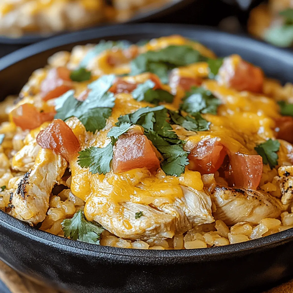 Elevate your meals with this warm, comforting bowl of Mexican Chicken and Rice with Queso, perfect for any weeknight dinner!