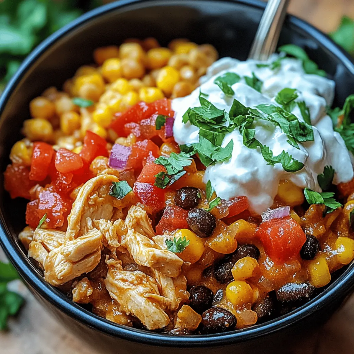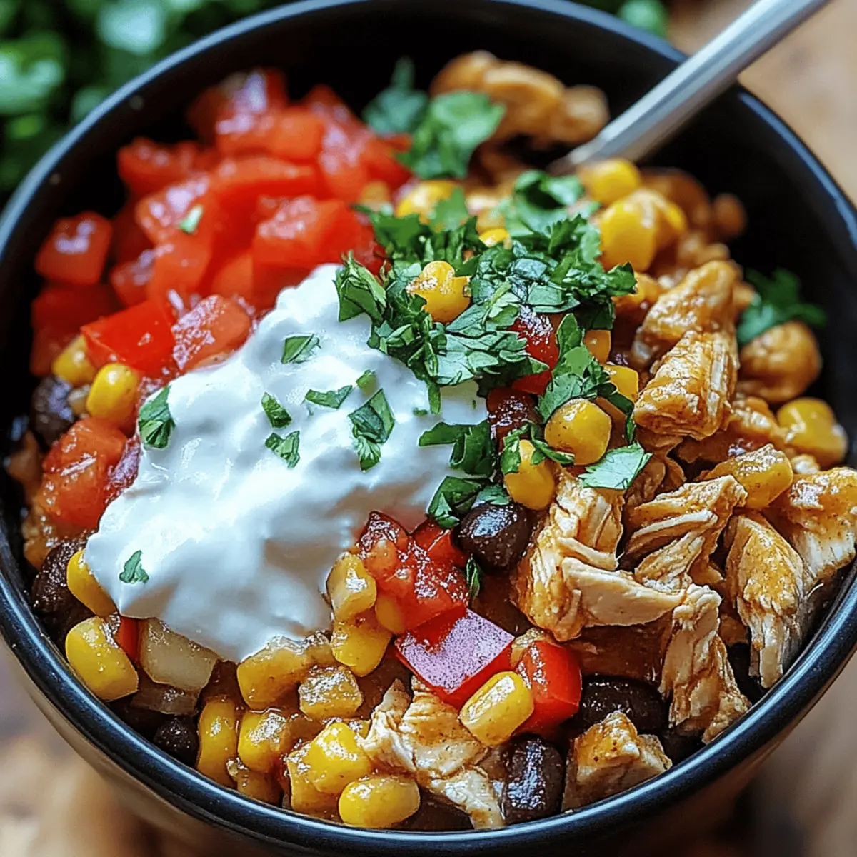 The aroma of sizzling garlic and tender chicken fills the air as I pull together my latest kitchen creation. These One-Pot Chicken Burrito Bowls are about to become your go-to weeknight dinner! With vibrant vegetables, fluffy rice, and all the comforting flavors of a burrito, this recipe is not only customizable but also incredibly easy—perfect for those busy evenings when you just need a wholesome meal without the fuss. Plus, cleanup is a breeze, since everything cooks up in one pot! Whether you’re craving a hearty feast or prepping for the week ahead, these bowls promise to satisfy your hunger while keeping it nutritious. What toppings will you choose to make them your own? Why Will You Love These Bowls? Simplicity: With just one pot required, the hassle of multiple dishes is eliminated, making cleanup a breeze! Flavor Explosion: The mix of spices, fresh veggies, and tender chicken creates a satisfying taste profile that will delight your senses. Customizable: Tailor your burrito bowls to suit any dietary preference, whether you’re vegetarian, gluten-free, or have a penchant for heat. Quick Cooking: Ready in under 40 minutes, these bowls are perfect for busy weeknights or spontaneous gatherings with friends. Crowd-Pleasing: Suitable for both family dinners and entertaining guests, everyone will love personalizing their bowls with their favorite toppings! Dive deeper into meal prep by exploring our meal prepping guide to make efficient cooking a breeze! One-Pot Chicken Burrito Bowls Ingredients For the Base Onion – Adds sweetness and aroma during cooking; substitute with shallots for a milder flavor. Garlic – Enhances overall flavor with a fragrant aroma; use garlic powder as a quick substitute. Bell Peppers (variety of colors) – Provides crunch and a slight sweetness; substitute with zucchini or carrots for a different texture. Chicken (boneless, skinless) – The protein source in the dish, ensuring a hearty meal; use diced chicken thighs for more moisture. Rice (preferably brown or white) – Acts as the base of the bowl, absorbing flavors; quinoa can be used for a gluten-free option. Black Beans – Adds creaminess and fiber; substitute with pinto beans for variation. Diced Tomatoes (canned) – Contributes acidity and moisture; fresh tomatoes can be used if in season. For the Seasoning Cumin – Provides warmth and depth of flavor; coriander can be a lighter substitute. Chili Powder – Offers heat and complexity; adjust for personal spice levels or swap for paprika for milder flavor. Chicken Broth – Adds richness to the cooking liquid; vegetable broth serves as a great vegetarian alternative. For the Brightness Lime Juice – Brightens the dish with acidity; lemon juice can be used in a pinch. Cilantro (fresh) – Adds herbal brightness as a finishing touch; omit for those who dislike cilantro or substitute with parsley. Optional Toppings Diced Avocado – Adds creaminess and richness; perfect for those seeking a luxurious texture. Shredded Cheese – Provides a melty, savory layer; choose your favorite type for extra flavor. Sour Cream – Adds creaminess and a cooling effect; great for balancing heat. Sliced Jalapeños – For those who enjoy a spicy kick; adjust quantity to match your spice tolerance. Craft your delicious One-Pot Chicken Burrito Bowls by combining these ingredients for a satisfying meal that you and your loved ones will enjoy! Step‑by‑Step Instructions for One-Pot Chicken Burrito Bowls Step 1: Prepare Ingredients Start by chopping one onion, mincing two garlic cloves, and dicing an assortment of bell peppers—making sure to have vibrant colors for visual appeal. Dice your boneless, skinless chicken into bite-sized pieces. Gather your spices, canned ingredients, and any optional toppings you plan to use, ensuring everything is within reach for a smooth cooking experience. Step 2: Cook Aromatics In a large pot, heat two tablespoons of olive oil over medium heat until shimmering. Add the chopped onion and minced garlic, stirring continuously for about 2-3 minutes, until the mixture becomes fragrant and the onion is translucent. This step lays a flavorful foundation for your One-Pot Chicken Burrito Bowls. Step 3: Brown Chicken Add the diced chicken to the pot, ensuring it is spread out in a single layer. Cook for about 5-7 minutes, stirring occasionally, until the chicken is browned on all sides. This will not only enhance the flavor but also seal in moisture, making your chicken tender and juicy by the end of cooking. Step 4: Combine Ingredients Once the chicken is browned, stir in 1 cup of rice, 1 can of black beans (drained and rinsed), and 1 can of diced tomatoes (with juice). Sprinkle in 1 teaspoon of cumin and 1 tablespoon of chili powder, mixing everything well to ensure the spices coat the rice and vegetables evenly. This step beautifully combines flavors as we prepare for the next phase. Step 5: Add Broth Pour in 2 cups of chicken broth, stirring well to combine. Bring the mixture to a gentle simmer over medium heat. Once it starts bubbling, lower the heat and cover the pot with a lid. Let it cook on low for 20 minutes, allowing the rice to absorb the broth and flavors, which will result in beautifully fluffy rice and perfectly cooked chicken. Step 6: Finish the Dish After 20 minutes, carefully remove the lid and fluff the rice with a fork to separate the grains. Squeeze fresh lime juice over the top for a burst of brightness and toss in a handful of chopped cilantro for extra flavor. This step not only enhances the taste but also gives your One-Pot Chicken Burrito Bowls a fresh and vibrant finish. Step 7: Serve and Garnish Spoon your hearty One-Pot Chicken Burrito Bowls into individual serving bowls. Customize each serving with your choice of toppings—diced avocado, shredded cheese, sour cream, or sliced jalapeños. This allows everyone to tailor their meal to their liking while making each bowl a delightful, personalized experience. 