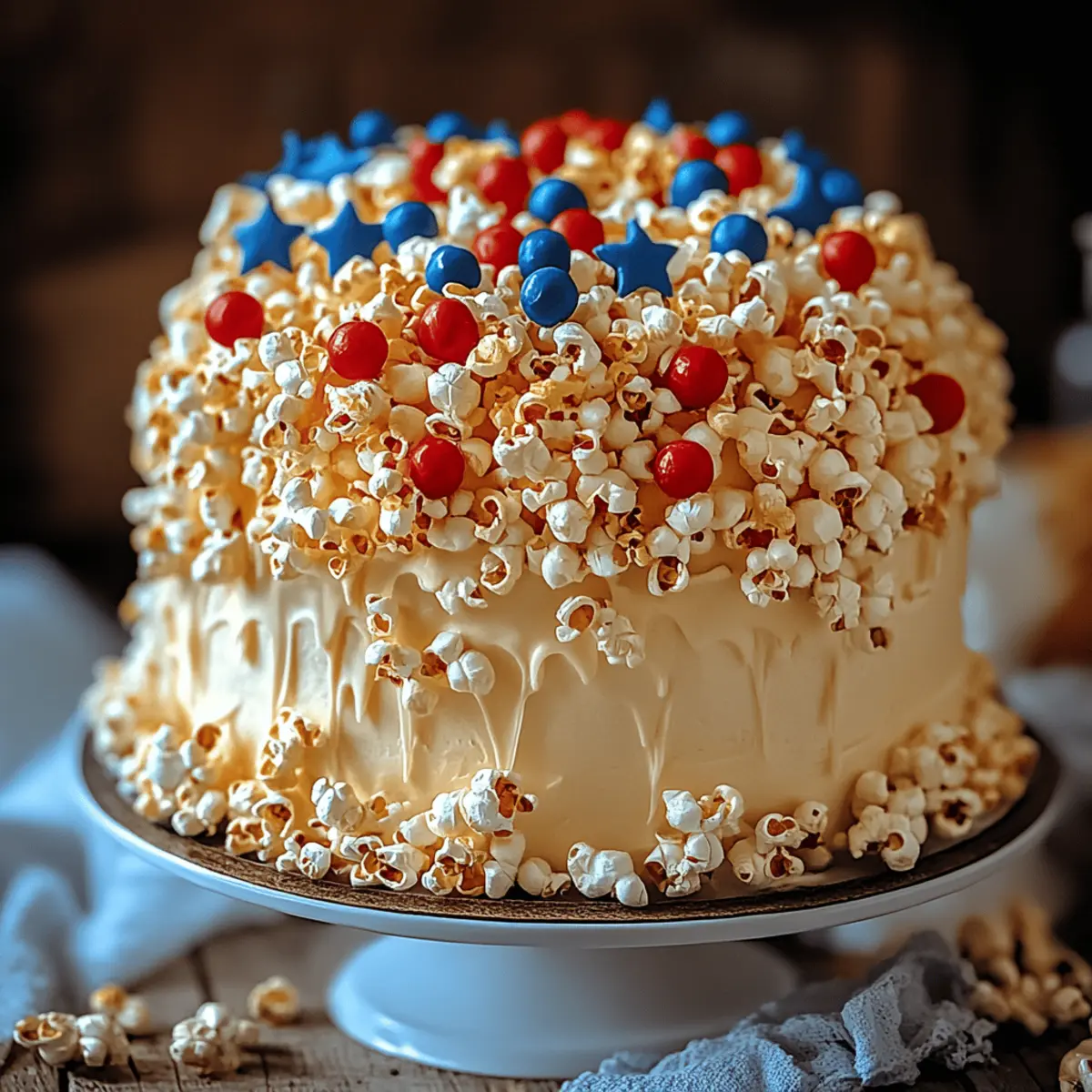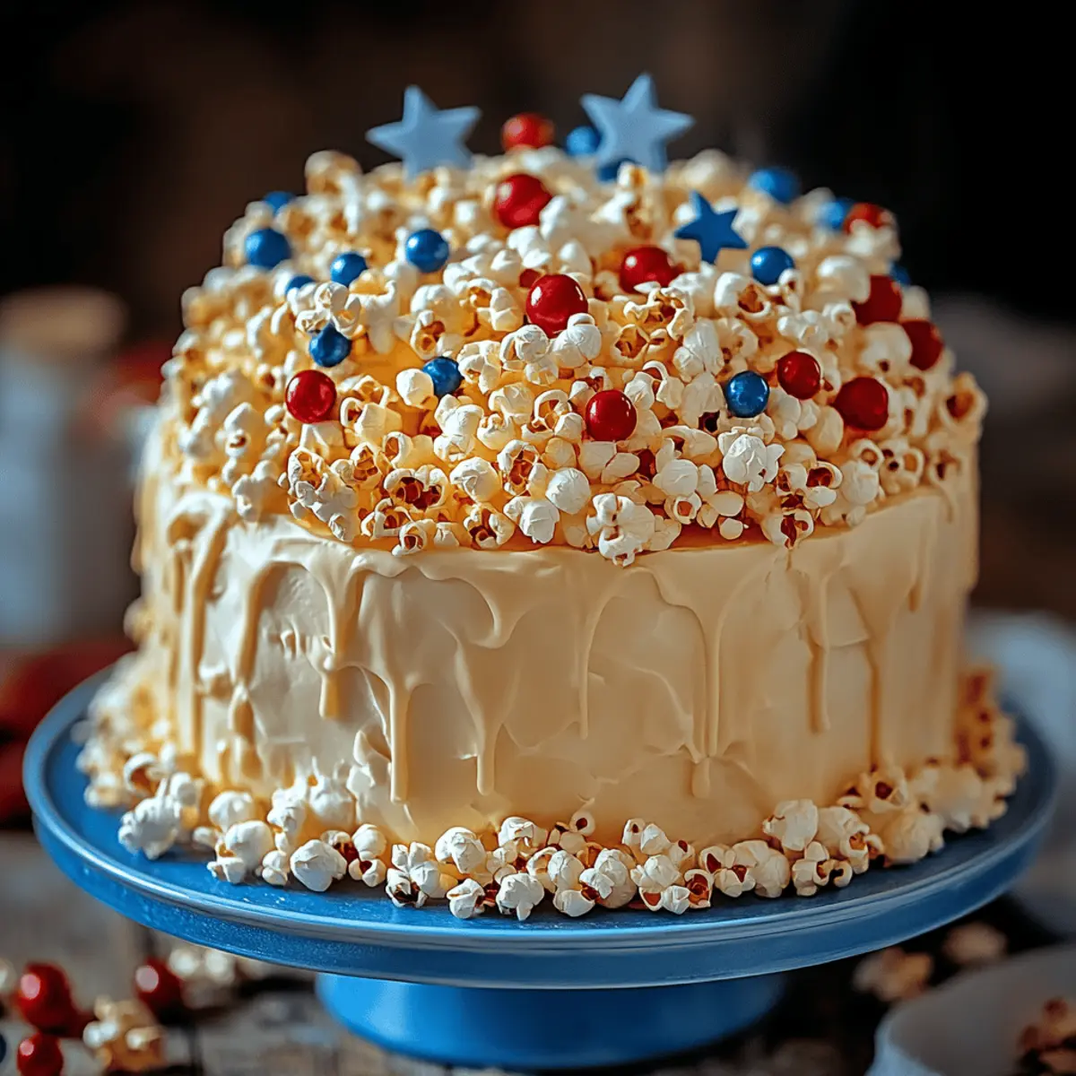 As I watched the vibrant colors of summer unfold during our neighborhood barbecue, a thought struck me: why not transform that festive spirit into a delicious dessert? Enter the Patriotic Popcorn Cake, an easy-to-make, crowd-pleasing treat that combines the satisfying crunch of air-popped popcorn with gooey, colorful marshmallow coatings. Not only does this gluten-free delight make any gathering a celebration, but its customizable color options allow you to adapt it for any occasion—think red and green for the holidays or pastel hues for spring! With every slice, you’ll not only dazzle your guests but also provide a fun and engaging way for families to bond over sweet treats. What festive occasion will you make your own version for? Why is Patriotic Popcorn Cake a Must-Make? Deliciously Fun: This treat transforms simple ingredients into a vibrant dessert that kids and adults alike will adore. Customizable Colors: You can adapt the color scheme for any holiday or celebration, making it perfect year-round. Easy to Make: With minimal steps, even novice cooks can whip this up in no time. Crowd-Pleaser: Bring it to gatherings, and watch as guests rave about its festive flair and delightful taste—your dessert will definitely be the talk of the party! Perfect for Bonding: Get the family involved in the fun of making and decorating—it’s a great way to create lasting memories together. Feel free to explore more fun ideas to complement your creation, perhaps serve alongside a refreshing fruit salad or some delicious lemonade! Patriotic Popcorn Cake Ingredients • Get ready to create a stunning dessert that reflects the colorful spirit of summer! For the Cake Base Plain Popcorn – Use air-popped for a light crunch or stovetop if you prefer a bit of butter. Butter – This rich ingredient helps bind all the flavors while giving a deliciously creamy texture. For the Marshmallow Mixtures Mini Marshmallows – The star of our cake, these create a sticky and sweet binding for our popcorn. Red & Blue Food Coloring – For that vibrant look; feel free to switch colors for different holidays. For the Drizzle and Decor White Chocolate or Candy Melts – An optional drizzle that adds extra sweetness and elegance. Patriotic Sprinkles – These festive additions make your cake pop; they’re optional but highly encouraged for a celebratory touch. Step‑by‑Step Instructions for Patriotic Popcorn Cake Step 1: Prepare Popcorn Start by popping approximately 12 cups of plain popcorn using an air popper for the lightest crunch. Once popped, make sure to sift through the popcorn to remove any unpopped kernels, ensuring a smooth texture in your Patriotic Popcorn Cake. Lay the warm popcorn in a large mixing bowl, ready to be coated in marshmallow goodness. Step 2: Melt Marshmallows In a medium-sized pot over low heat, melt 1/4 cup of butter until it begins to bubble gently. Add 10 ounces of mini marshmallows and stir continuously until the mixture turns smooth and glossy, about 5 minutes. This melted marshmallow mixture will be the glue for your colorful layers, making the Patriotic Popcorn Cake stick together beautifully. Step 3: Color Marshmallow Mixtures Once your marshmallows are melted, divide the mixture into three separate bowls. Add red food coloring to one bowl and blue to another, mixing until deeply colored. Leave the third bowl plain. This vibrant array will give your Patriotic Popcorn Cake its festive spirit. Take a moment to admire the hues before moving on! Step 4: Coat Popcorn Now, take the prepared popcorn and divide it into three equal portions. Drizzle each colored marshmallow mixture over the respective popcorn bowl and gently mix using a spatula or your hands. Take care not to crush the popcorn too much; you want it to maintain its crunch while getting beautifully coated in marshmallow fluff. Step 5: Layer in Baking Pan Line a baking pan (9×13 inches works well) with parchment paper to prevent sticking. Start layering your popcorn mixtures: first, press the red popcorn into the bottom of the pan. Next, add the plain marshmallow-coated popcorn as the middle layer. Finally, top it off with the blue popcorn, creating a visually appealing tricolor effect. Step 6: Drizzle Chocolate For an extra touch of sweetness, melt some white chocolate or candy melts according to package instructions. Once melted, drizzle it generously across the top layer of your Patriotic Popcorn Cake using a fork or spoon. Finish with a sprinkling of patriotic sprinkles for added festive flair—this will make your dessert even more visually striking! Step 7: Cool and Slice Allow the Patriotic Popcorn Cake to cool at room temperature for about an hour, giving the marshmallows a chance to set. Once fully cooled, use a sharp knife to slice it into squares or rectangles. Enjoy the delightful crunch and chewy sweetness that this fun and colorful dessert brings to your summer celebrations! What to Serve with Patriotic Popcorn Cake? Enhance your festive gathering with delicious pairings that perfectly complement this colorful dessert. Fresh Fruit Salad: A refreshing mix of seasonal fruits brings a bright, juicy contrast to the sweet popcorn cake. The natural sugars from fruits can smooth out the sweetness of the marshmallows. Lemonade: This tangy beverage is a classic summer drink that quenches thirst and balances the richness of the cake. Consider serving it chilled with fresh mint for an extra burst of flavor. Iced Tea: Whether sweetened or unsweetened, iced tea offers a refreshing backdrop that lets the flavors of the Patriotic Popcorn Cake shine. Add a slice of lemon to enhance its citrusy brightness. Vanilla Ice Cream: A scoop of creamy vanilla ice cream perfectly complements the crunchy, chewy textures of the cake. This delightful combination adds a delightful coolness to every bite. Chocolate-Covered Strawberries: These elegant treats add a gourmet touch and enhance the festive vibe. The rich chocolate pairs beau