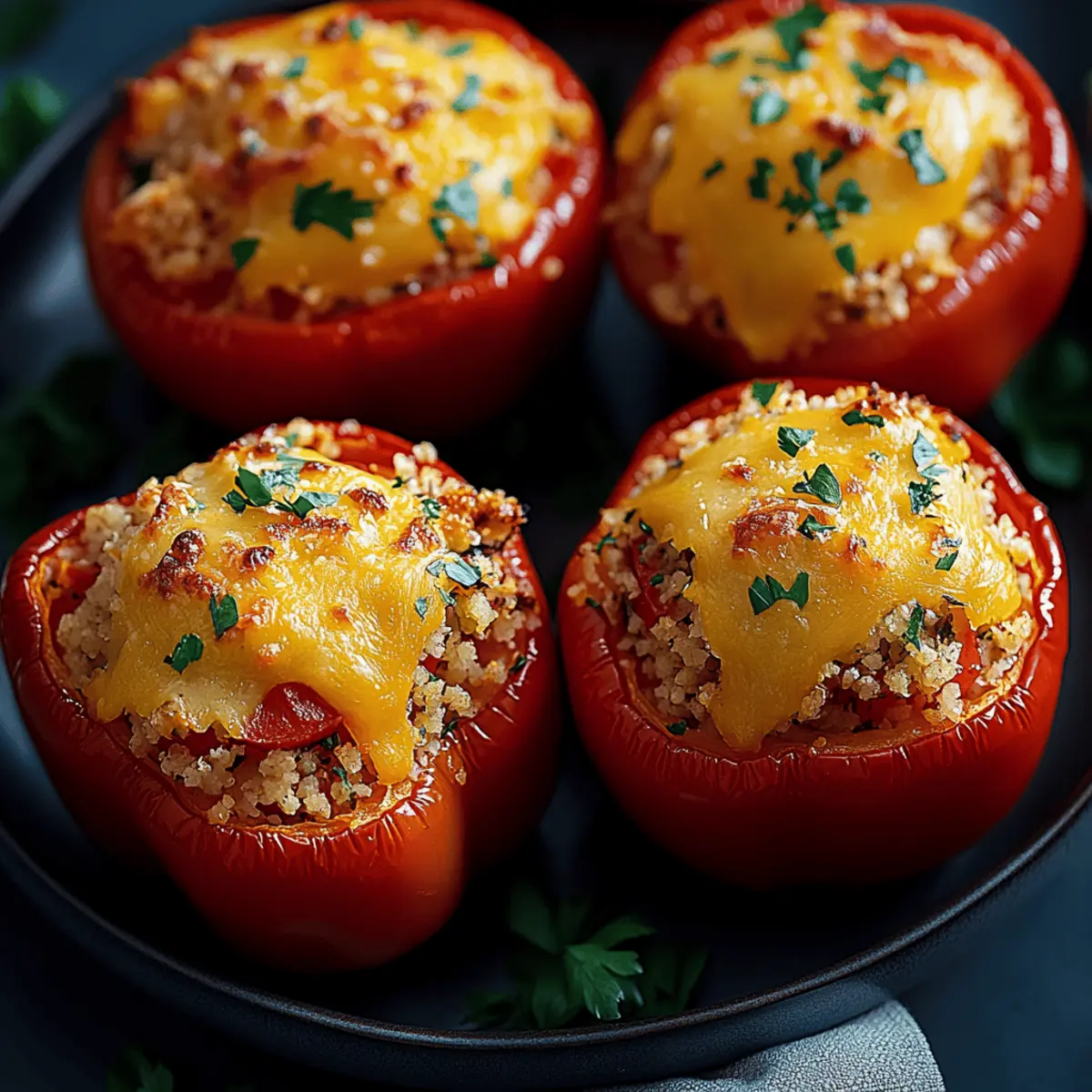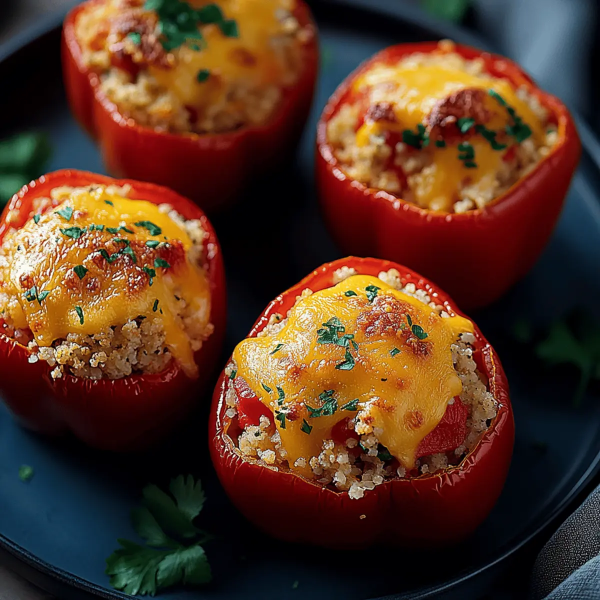 As the vibrant colors of summer begin to fade, I find myself longing for dishes that bring warmth and nourishment to our tables. Enter my Easy Vegetarian Stuffed Peppers—a delightful fusion of textures and flavors that will transport your taste buds to a sun-drenched garden. This quick meal prep option is not only customizable to suit whatever ingredients you have on hand—but it also packs a nutritional punch that leaves you feeling satisfied and guilt-free. Imagine juicy bell peppers filled to the brim with a hearty mix of rice, black beans, and aromatic spices. Whether you’re preparing for a cozy family dinner or planning meals for the week ahead, these stuffed peppers are sure to become a go-to favorite. Ready to discover the secret to making these crowd-pleasers? Let’s dive in! Why are Vegetarian Stuffed Peppers a hit? Bold, Vibrant Colors: The stunning presentation of these stuffed peppers adds excitement to any meal, making them a feast for the eyes as well as the palate. Endless Customization: Mix and match your favorite fillings—from beans to grains—tailoring the dish to your taste and dietary needs. Quick Meal Prep: In just under an hour, you can whip up a batch that’s perfect for lunches or weeknight dinners. Nutritional Powerhouse: Packed with fiber and protein, these peppers deliver essential nutrients without compromising on flavor. They’re also naturally gluten-free! Family-Friendly Appeal: Kids and adults alike adore these tasty pockets of goodness, making them a fantastic dinner option for the whole family to enjoy. Easy Storage Solutions: Leftovers refrigerate well and can be frozen for delicious meals down the line; just heat and enjoy! Vegetarian Stuffed Peppers Ingredients • Prepare to create a colorful feast with these delicious vegetarian stuffed peppers! For the Peppers Bell Peppers – Choose vibrant colors for a stunning presentation; poblano or mini peppers can also work for a twist. For the Filling Olive Oil – Essential for sautéing vegetables and enhancing flavor; vegetable oil is a good alternative. Onions – Sweetness from yellow or red onions brings depth to the filling; they are a must. Garlic – Fresh garlic provides a wonderful aroma; garlic powder can substitute if needed (1/4 tsp per clove). Black Beans – A great protein source and adds fantastic texture; canned beans save time, but dry beans work too. Cooked Rice – Binds the filling together; for added nutrients, use brown rice or quinoa. Diced Tomatoes – Contributes moisture and a refreshing tang; you may opt for fresh tomatoes during the season. Spices – A mix of cumin, paprika, and oregano creates that Mediterranean flair; feel free to adjust to your taste. Salt & Pepper – Important for elevating flavors; season to your personal preference. Shredded Cheese (optional) – Adds creaminess to the top; choose between dairy or plant-based options for your dietary needs. Ready to get cooking? Your journey to perfect vegetarian stuffed peppers begins now! Step‑by‑Step Instructions for Easy Vegetarian Stuffed Peppers Step 1: Prepare the Peppers Start by preheating your oven to 375°F (190°C). While the oven heats, wash the bell peppers under cool water. Cut the tops off each pepper and gently remove the seeds and membranes, ensuring they’re ready for stuffing. Set the cleaned peppers aside in a baking dish to dry while you prepare the filling. Step 2: Sauté Filling In a large skillet, heat two tablespoons of olive oil over medium heat. Add one finely chopped onion and two minced garlic cloves, sautéing them for about 3-5 minutes until they become translucent and fragrant. This step builds the foundation of flavor for your Vegetarian Stuffed Peppers, creating a delicious aroma in your kitchen. Step 3: Combine Ingredients Next, stir in one can of drained black beans, one cup of cooked rice, one can of diced tomatoes, and your chosen spices—such as cumin, paprika, and oregano. Cook this mixture for 5-7 minutes, stirring occasionally until everything is well combined and heated through. Taste and season with salt and pepper, ensuring the filling is deliciously seasoned. Step 4: Stuff Peppers Carefully spoon the flavorful filling into each prepared bell pepper, packing it gently to fit as much as possible. If you like, sprinkle a handful of shredded cheese atop each stuffed pepper for an added creamy texture. This step transforms your peppers into delightful, edible bowls brimming with goodness. Step 5: Bake Place the stuffed peppers upright in your baking dish. Add a splash of water or vegetable broth to the bottom to keep them moist, then cover the dish with aluminum foil. Bake your Easy Vegetarian Stuffed Peppers for 30-35 minutes, until the peppers are tender. In the last 10 minutes, remove the foil to let the cheese brown beautifully. Step 6: Cool & Serve Once baked, carefully remove the stuffed peppers from the oven and allow them to cool for a few minutes before serving. For an extra touch, you may want to top them with a dollop of Greek yogurt or a sprinkle of fresh herbs. Enjoy your delicious and nutritious Vegetarian Stuffed Peppers as part of a delightful family meal! Make Ahead Options These Easy Vegetarian Stuffed Peppers are perfect for busy home cooks looking to save time on meal preparation! You can prepare the filling up to 24 hours in advance by sautéing the onions and garlic, then mixing in the black beans, cooked rice, diced tomatoes, and spices. Store the mixture in an airtight container in the refrigerator to maintain flavor and freshness. You can also wash and prepare the bell peppers a day ahead, just keeping them stored in a dry place. When you’re ready to bake, simply stuff the prepped peppers, cover, and bake at 375°F (190°C) as directed for delicious results that taste just as fresh! What to Serve with Easy Vegetarian Stuffed Peppers A colorful meal awaits you with these delightful stuffed peppers as your centerpiece! Fresh Green Salad