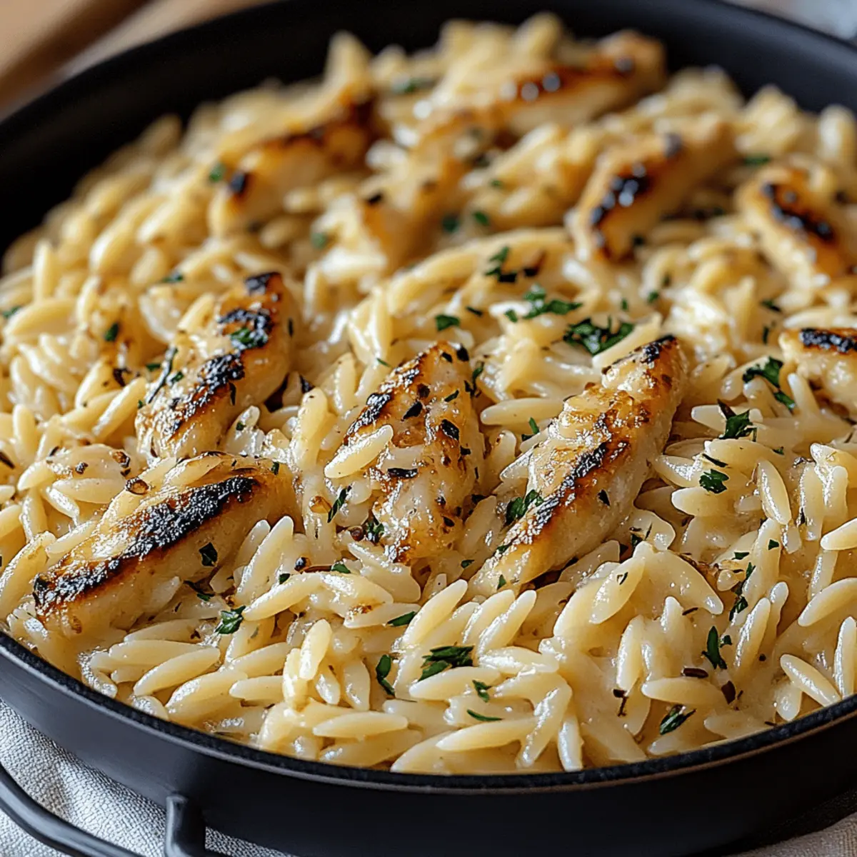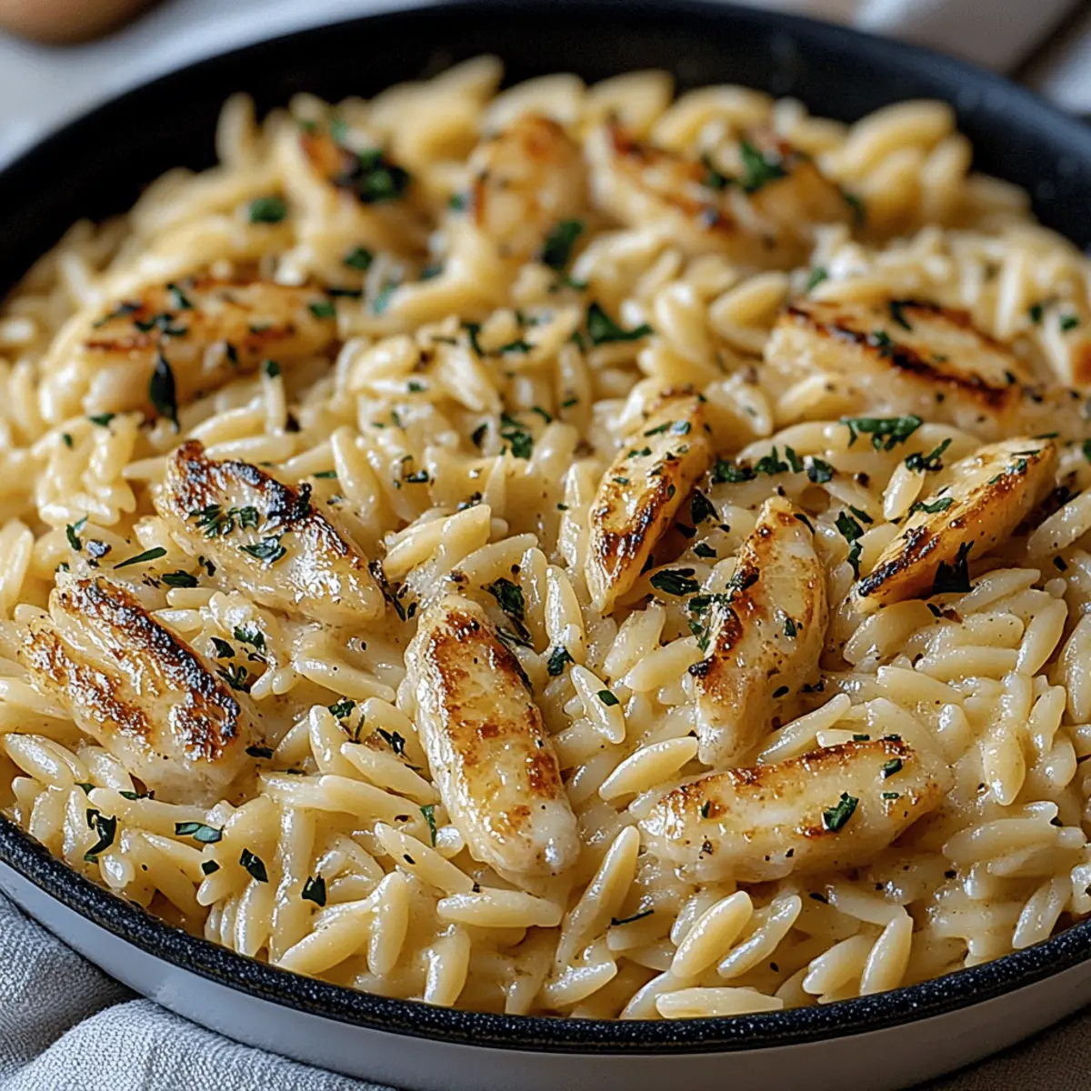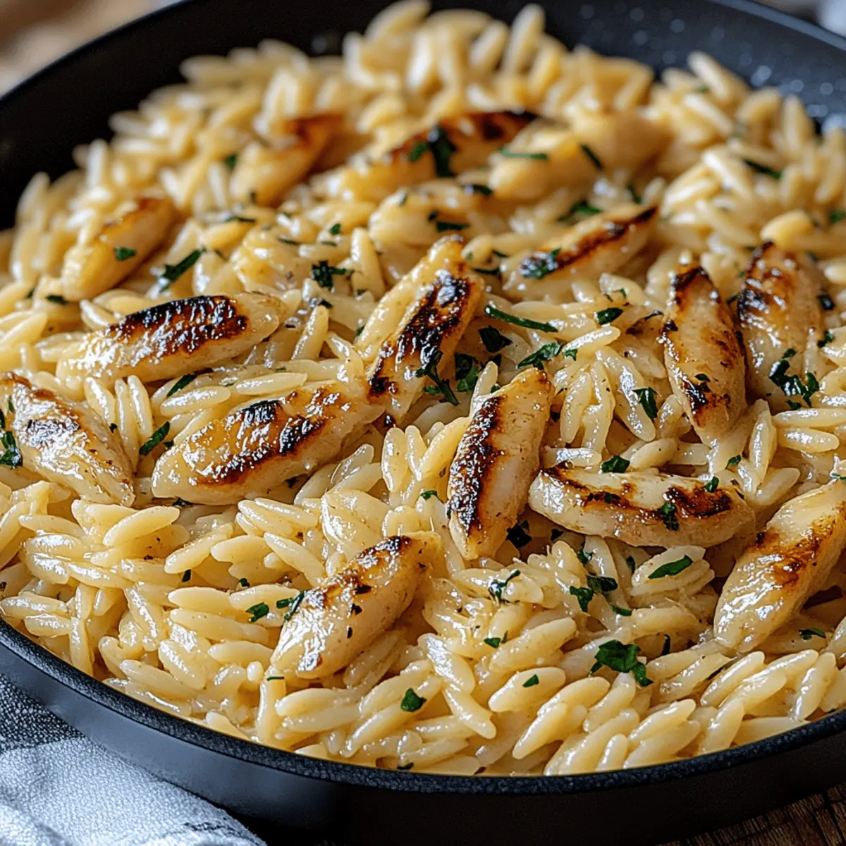 There I was, rushing home after a long day, craving something satisfying yet effortless. That’s when I stumbled upon the idea for Garlic Butter One Pan Orzo—a dish that perfectly marries rich flavors with a simple, streamlined cooking process. Imagine creamy orzo enveloped in a savory garlic butter sauce, all made in just one pan for minimal cleanup. This delightful recipe not only whisks together nourishing ingredients in under 30 minutes, making it a weeknight winner, but it also leaves plenty of room for customization to suit any palate. Whether you’re looking to impress a loved one or simply indulge in a comforting meal at home, you’ll find this Garlic Butter One Pan Orzo has everything you crave. What would you add to make it your own? Why is this Orzo Recipe a Must-Try? Comforting Flavors: The creamy garlic butter sauce envelops each orzo grain in a delightful hug of flavor, making every bite a cozy experience. One-Pan Convenience: There’s nothing better than a meal that can be whipped up in just one pan, saving you time on both cooking and cleanup. Quick Preparation: Ready in under 30 minutes, it fits perfectly into your busy weeknight routine, allowing you to enjoy a homemade meal without a lengthy time commitment. Customizable Base: Personalize your dish by adding proteins or extra veggies—think sautéed spinach or tender chicken—to make it truly your own. Impressive Presentation: With its creamy texture and fresh herbs, this dish looks as good as it tastes, perfect for serving at family gatherings or casual dinners with friends. Garlic Butter One Pan Orzo Ingredients For the Base • Olive Oil – Adds richness and helps sauté garlic; ensure it’s high-quality for best flavor. • Butter – Provides a creamy texture; use plant-based alternatives for a dairy-free option. • Minced Garlic – Delivers a robust flavor foundation; fresh is recommended, but garlic powder can be substituted in a pinch. • Orzo Pasta – The main ingredient; offers a unique texture, with regular orzo being best. • Chicken or Vegetable Broth – Adds depth of flavor and moisture; opt for low-sodium to control salt levels. For the Finish • Parmesan Cheese – Gives a creamy finish and umami flavor; nutritional yeast works as a dairy-free substitute. • Fresh Herbs (e.g., parsley) – Provides freshness and color; consider adding basil or chives for different flavor profiles. • Salt and Pepper – Essential for seasoning; adjust to taste, ensuring the Garlic Butter One Pan Orzo shines. Step‑by‑Step Instructions for Garlic Butter One Pan Orzo Step 1: Prepare the Base In a large skillet, heat 2 tablespoons of olive oil and 2 tablespoons of butter over medium heat until the butter melts and starts to bubble, about 1-2 minutes. This creates a flavorful base for your Garlic Butter One Pan Orzo. Make sure the skillet is large enough to hold all the ingredients comfortably, allowing room for stirring. Step 2: Sauté the Garlic Add 4 cloves of minced garlic to the skillet and sauté for about 1 minute, stirring frequently until the garlic is fragrant and lightly golden. Keep an eye on it to prevent burning, as overcooked garlic can turn bitter. This step enhances the rich flavors of the dish, setting the stage for the delicious orzo that follows. Step 3: Toast the Orzo Pour in 1 cup of orzo pasta, stirring to coat it in the garlic butter mixture. Let the orzo toast for about 2-3 minutes, stirring occasionally until it turns a light golden color. This process enhances the nuttiness of the orzo and adds depth to your Garlic Butter One Pan Orzo, making it extra comforting. Step 4: Add the Broth Slowly pour in 2 ½ cups of warm chicken or vegetable broth while stirring gently. Bring the mixture to a low boil over medium-high heat, then reduce heat to a simmer. Let it cook uncovered for 10-12 minutes, stirring occasionally, until the liquid is mostly absorbed and the orzo is tender but still has a slight bite. Step 5: Stir in the Finish Once the orzo is cooked, reduce the heat to low and stir in an additional 2 tablespoons of butter and ½ cup of grated Parmesan cheese until creamy and well combined. This is where the Garlic Butter One Pan Orzo transforms into a luscious dish; seasoning with salt and pepper to taste will elevate the flavors even more. Step 6: Add Fresh Herbs and Serve Fold in chopped fresh herbs, such as parsley or basil, for a burst of color and freshness. Allow the dish to sit for a couple of minutes for the flavors to meld, then serve warm, garnished with more herbs or a sprinkle of Parmesan if desired. Your Garlic Butter One Pan Orzo is now ready to be enjoyed! How to Store and Freeze Garlic Butter One Pan Orzo Fridge: Store leftovers in an airtight container for up to 3 days. When reheating, add a splash of broth for extra creaminess and warmth. Freezer: Portion your Garlic Butter One Pan Orzo into freezer-safe containers. It will maintain quality for up to 2 months. Thaw overnight in the fridge before reheating. Reheating: Gently reheat on the stove over low heat, adding additional broth or water to restore creaminess. Stir frequently to prevent sticking. Room Temperature: Avoid leaving orzo at room temperature for more than 2 hours to ensure food safety. Garlic Butter One Pan Orzo Variations Feel free to make this delightful dish your own with these fun and flavorful twists! Add Protein: Toss in cooked chicken, shrimp, or crispy pancetta to elevate the dish further. Each bite will be heartier and more satisfying! Spice It Up: Incorporate red pepper flakes for a subtle kick of heat. A little warmth can transform the entire flavor profile, making it exciting! Veggie Boost: Mix in sautéed mushrooms, spinach, or bell peppers for a pop of nutrition and color. These additions bring not only texture but also a lovely freshness to the dish. Herb Alternatives: Experiment with different herbs like thyme or fresh basil for a unique twist. Each herb offers a new flavor journ