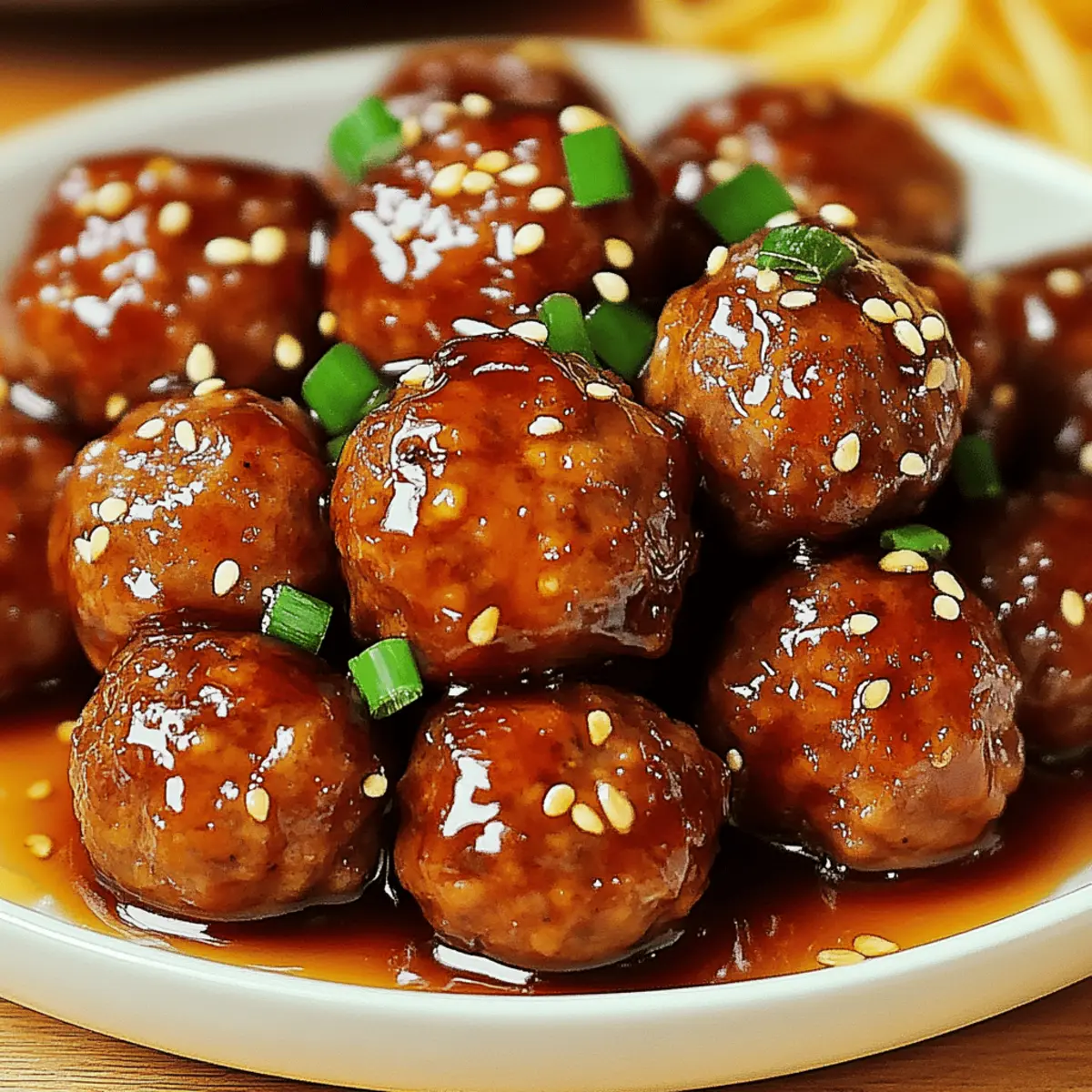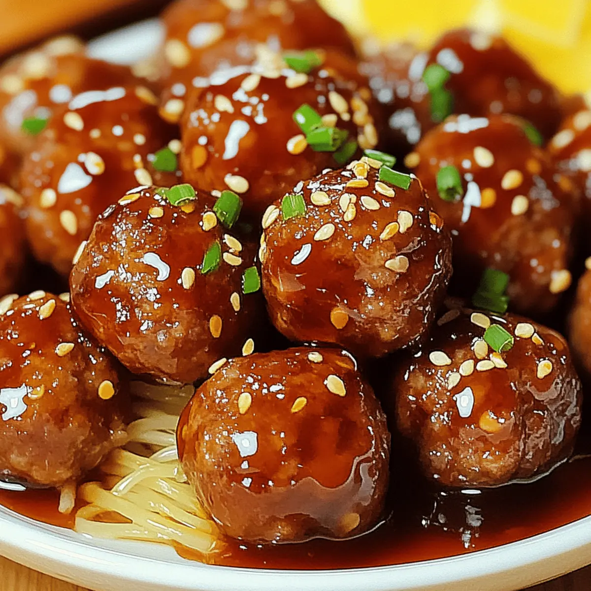 As I stirred the bubbling sauce, the sweet aroma enveloped my kitchen, cutting through the chaos of a busy weeknight. Easy Honey Garlic Meatballs are the ultimate answer to your dinner dilemmas, marrying rich flavors with effortless preparation. In just 30 minutes, you can have juicy, tender meatballs coated in a sticky, savory sauce that’s perfectly sweetened. This recipe shines as a quick dinner solution for busy families or those evenings when you crave something special without the fuss. Plus, it’s gluten-free and easily customizable—just swap out ground meats or add in vibrant veggies to suit your taste. So, are you ready to dive into this mouthwatering dish that’s sure to delight everyone at the table? Why Are Honey Garlic Meatballs Perfect? Quick Dinner Solution: These Easy Honey Garlic Meatballs come together in just 30 minutes, making them a lifesaver for busy weeknights. Flavor Explosion: The sticky honey and savory soy sauce create a deliciously balanced glaze that’s hard to resist. Customizable Goodness: Feel free to swap ground meat or add extra veggies, allowing you to cater to your family’s tastes. Gluten-Free Option: With gluten-free breadcrumbs, everyone can enjoy these flavorful bites without worry. Crowd-Pleasing Appeal: Perfect for potlucks or family dinners, these meatballs are always a hit, leaving your guests asking for the recipe! For more quick meal ideas, check out this collection of 30-minute recipes. Honey Garlic Meatballs Ingredients For the Meatballs • Ground Meat – A hearty base; opt for ground turkey or chicken for a lighter twist. • Minced Garlic – Aromatic depth is key; fresh garlic elevates the dish, but pre-minced saves time. • Breadcrumbs – These provide texture; use gluten-free breadcrumbs for a gluten-free treat. • Egg – Binds everything together, ensuring the meatballs maintain their shape. • Chopped Green Onions – Adds brightness and flavor; substitute with chives if you prefer. For the Sauce • Honey – The star ingredient that brings sweetness; maple syrup can be a delightful alternative. • Soy Sauce – Adds that savory umami punch; tamari works as a gluten-free substitute. • Water – This helps adjust the sauce’s consistency for perfect coating. Feel free to get creative with your Easy Honey Garlic Meatballs! Step‑by‑Step Instructions for Easy Honey Garlic Meatballs Step 1: Prepare the Meatball Mixture In a large bowl, combine the ground meat, minced garlic, breadcrumbs, egg, and chopped green onions. Season with salt and pepper to taste. Mix gently until just combined, ensuring not to overwork the mixture for tender meatballs. This step sets the foundation for your delicious Honey Garlic Meatballs. Step 2: Form the Meatballs With clean hands, shape the mixture into uniform meatballs, about 1 inch in diameter. This size ensures even cooking and gives you a perfect bite when ready to serve. Place the meatballs on a plate while you prepare to cook them, visualizing the delightful outcome awaiting you. Step 3: Brown the Meatballs Heat a skillet over medium heat and add a drizzle of oil to prevent sticking. Once the oil shimmers, add the meatballs in a single layer, leaving space between each one. Cook for about 5 minutes, turning them occasionally, until they are golden brown on all sides. This browning will enhance the flavor of your Honey Garlic Meatballs. Step 4: Prepare the Sauce In a separate bowl, whisk together honey, soy sauce, and a splash of water. This mixture will create the sticky glaze that coats your meatballs. Once combined, pour this sauce over the browned meatballs in the skillet, gently stirring to ensure they are evenly coated and ready to simmer. Step 5: Simmer the Meatballs Reduce the heat to low, and cover the skillet. Allow the meatballs to simmer in the sauce for about 8-10 minutes. This will not only ensure they cook through but also allow the sauce to thicken, creating that irresistible glaze for your Easy Honey Garlic Meatballs. Step 6: Garnish and Serve Afterward, remove the skillet from heat, and garnish the meatballs with additional chopped green onions and optional sesame seeds for a lovely touch. Serve these delicious Honey Garlic Meatballs alongside steamed rice, roasted veggies, or simply as appetizers. Each bite is sure to be a hit! Make Ahead Options These Easy Honey Garlic Meatballs are perfect for meal prep enthusiasts! You can prepare the meatball mixture (ground meat, breadcrumbs, garlic, egg, and green onions) up to 24 hours in advance. Just shape the meatballs and store them in an airtight container in the refrigerator. Additionally, you can make the honey garlic sauce up to 3 days ahead. Simply whisk together all sauce ingredients and refrigerate in a sealed container. When you’re ready to serve, just brown the meatballs as directed, pour the sauce over them, and let them simmer. This method not only saves time but ensures your meatballs remain just as delicious and flavorful when it’s time to eat! Honey Garlic Meatballs Variations Get ready to sprinkle your own touch on these delightful meatballs—customizing is half the fun! Dairy-Free: Omit any cheese if using and stick to the core ingredients for a wholesome dish. Spicy Kick: Add crushed red pepper flakes to the sauce for a fiery twist, perfect for those who love some heat! A little goes a long way, igniting the flavor profile. Veggie-Loaded: Stir in finely chopped bell peppers or grated carrots into the meat mixture for added nutrition and a pop of color. Herb-Infused: Incorporate fresh herbs like cilantro or basil into the meat mixture for a fresh, aromatic lift that enhances the overall flavor. Asian Fusion: Swap out the soy sauce for a teriyaki sauce, giving your meatballs a sweet and tangy flavor that’s absolutely irresistible. This twist makes for a tasty spin on your original recipe. Barbecue Style: Replace honey with barbecue sauce for a smoky, sweet coat that will take your meatballs to ba