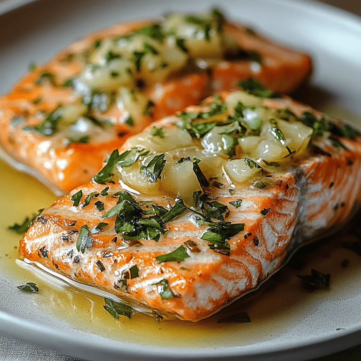 There’s something undeniably satisfying about a dish that marries simplicity with bold flavor. Let me introduce you to Horseradish Salmon, a quick and healthy delight that’s ready in under 30 minutes! This straightforward dish brings together the bright zing of fresh horseradish and the buttery goodness of salmon, making it an ideal choice whether you’re prepping a casual weeknight dinner or fancying up your gathering with family and friends. Not only is this recipe gluten-free and high in omega-3 fatty acids, but it’s also incredibly easy to customize with your favorite cooking method—bake it or pan-sear it to your heart’s content. Are you ready to take your dinner to the next delicious level? Let’s dive into the details! Why Is Horseradish Salmon So Special? Flavor Explosion: The bold zesty kick of horseradish beautifully complements the rich buttery texture of the salmon, creating a mouthwatering experience that tantalizes your taste buds. Quick Preparation: In under 30 minutes, you can serve up a gourmet meal that impresses, making it perfect for those busy weeknights or spontaneous gatherings. Versatile Cooking Methods: Choose between baking or pan-searing the salmon according to your preference, allowing you to adapt the recipe to your cooking style and kitchen setup. Health Boost: Packed with omega-3 fatty acids, this gluten-free dish supports heart health while giving you a nutritious boost that doesn’t compromise on flavor. Customizable: The recipe lends itself to personalization—whether adding herbs like dill or serving it alongside quinoa or wild rice, you can create a delightful meal that suits your tastes. This Horseradish Salmon recipe is a triumph of flavor and convenience that will have both you and your guests reaching for seconds! Try it alongside some roasted asparagus or a crisp cucumber salad for a complete, well-balanced meal. Horseradish Salmon Ingredients For the Sauce • Fresh Horseradish – Adds a zesty heat to the dish; substitute with prepared horseradish if fresh isn’t available. • Greek Yogurt/Sour Cream – Creates a creamy base for the sauce; Greek yogurt is on the lighter side, while sour cream offers a richer flavor. • Minced Garlic – Provides aromatic depth; always opt for fresh garlic to maximize flavor. • Lemon Juice – Brightens the sauce and complements the horseradish; freshly squeezed yields the best taste. • Salt and Pepper – Essential for perfect seasoning; adjust according to your taste. For the Salmon • Salmon Fillet – Delivers protein and omega-3 fatty acids; choose wild-caught for the best flavor and quality. • Olive Oil – Keeps the salmon moist during cooking and adds richness; can be swapped with other oils like avocado oil. This Horseradish Salmon recipe is straightforward and allows for creative twists to make it your own! Step‑by‑Step Instructions for Horseradish Salmon Step 1: Prepare Horseradish Sauce In a mixing bowl, combine freshly grated horseradish, creamy Greek yogurt or sour cream, minced garlic, and freshly squeezed lemon juice. Stir until the mixture is smooth and well-blended, creating a zesty sauce that perfectly complements your horseradish salmon. Taste and season with salt and pepper to your liking, ensuring a well-balanced flavor profile. Step 2: Prep Salmon Start by preheating your oven to 400°F (205°C) if you plan to bake the salmon. Pat your salmon fillets dry with paper towels, then place them skin-side down on a baking sheet lined with parchment paper. Brush the fillets with a drizzle of olive oil, and season generously with salt and pepper, creating a flavorful base for the dish. Step 3: Apply Sauce Once your salmon is prepped, take the horseradish sauce and spread it generously over each fillet. Use the back of a spoon or a spatula to ensure an even, thick layer of sauce covers the top, creating a delicious crust as it cooks. This step infuses the salmon with vibrant flavors and enhances its appearance. Step 4: Cook Salmon Now it’s time to cook your horseradish salmon! If baking, place the baking sheet in the preheated oven and roast for 12-15 minutes, or until the salmon flakes easily with a fork. Alternatively, for a pan-seared option, heat a skillet over medium heat and cook the fillets for 4-5 minutes on each side, achieving a golden-brown crust. Step 5: Rest and Serve After cooking, let the horseradish salmon rest for a few minutes to retain its juiciness. While it rests, consider garnishing with fresh herbs like parsley, chives, or dill for added flavor and a pop of color. Serve the salmon alongside your favorite sides, such as roasted vegetables or a crisp salad, for a complete meal. Expert Tips for Horseradish Salmon Fresh Ingredients: Use fresh horseradish when possible for a bolder flavor; prepared horseradish may lack the same zest. Perfect Cooking Time: Avoid overcooking by checking for doneness around the 12-minute mark; the salmon should flake easily but still be moist. Sauce Application: Apply the horseradish sauce before cooking; for a crispy texture, consider pan-searing skin-side down first. Experiment with Pairings: Explore serving options with quinoa or wild rice for added texture and nutrition that complements the dish. Storage Tips: Store any leftovers in an airtight container for up to 2 days; reheat gently to maintain moistness. What to Serve with Horseradish Salmon? To create a delightful meal around your Horseradish Salmon, consider these beautiful and complementary pairings that will elevate your dining experience. Garlic Mashed Potatoes: Creamy, buttery mashed potatoes are a classic side, balancing the zest from the salmon with their rich texture and flavor. Roasted Asparagus: This tender yet slightly crisp vegetable adds a fresh, earthy touch to your plate, enhancing the overall presentation and taste. Quinoa Salad: A nutty quinoa salad with cherry tomatoes and cucumbers provides an energetic bite and is a healthy match for the salmon