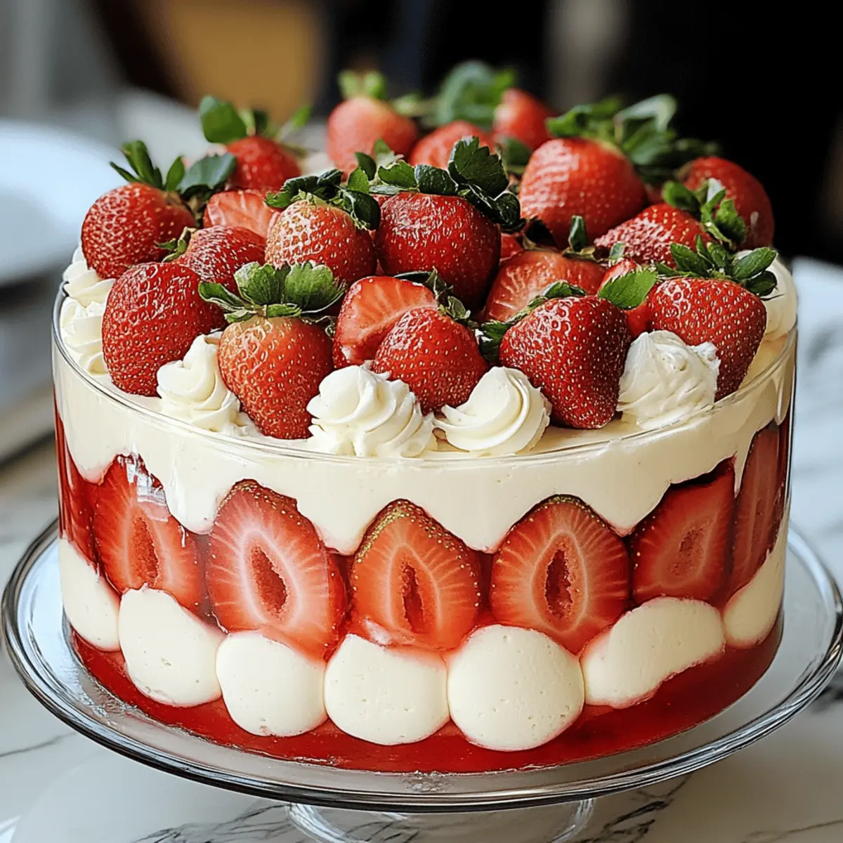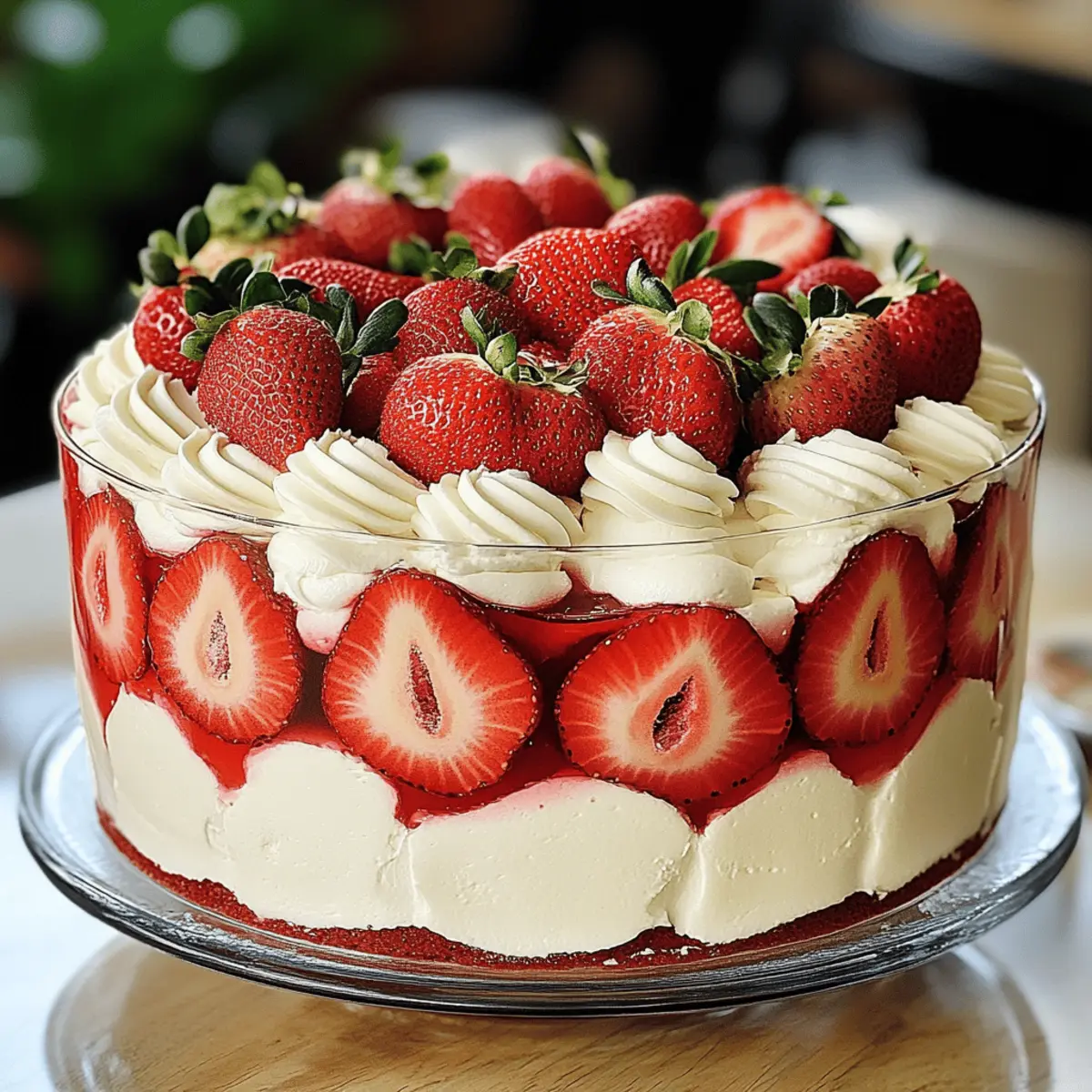As I sifted through my grandmother’s favorite recipes, the Southern Strawberry Punch Cake caught my eye. This classic dessert is a delightful combination of moist cake and fresh strawberries, all hugged by a zesty punch-flavored glaze. It’s the kind of cake that doesn’t just fill your stomach; it wraps you in a warm embrace of nostalgia, making it perfect for any gathering. Not only does it bring a refreshing twist to your dessert table, but it’s also a breeze to prepare, ensuring more time for laughter and connection with loved ones. With options to make it gluten-free for dietary needs, this fruity masterpiece leaves everyone happily satisfied. Ready to whip up this Southern delight and create some delicious memories? Let’s dive into the recipe! Why is Southern Strawberry Punch Cake irresistible? Deliciously fruity: Fresh strawberries meld beautifully with a punch-flavored glaze, offering a delightful, refreshing taste that dances on your palate. Easy preparation: This cake mixes together quickly, allowing you to spend less time in the kitchen and more time enjoying with family. Gluten-free option: Simply swap in a gluten-free cake mix to ensure everyone can indulge without worry. Perfect for gatherings: Its vibrant color and flavor make it an eye-catching centerpiece for any celebration, sure to please all ages. Chill factor: Placing the cake in the fridge allows flavors to meld, heightening its deliciousness—so it’s the ideal make-ahead dessert. Elevate your dessert game today with this Southern Strawberry Punch Cake, also check out our Chocolate Covered Strawberry for another fruity twist! Southern Strawberry Punch Cake Ingredients For the Cake • Fresh Strawberries – Adds juiciness and a burst of flavor; frozen strawberries can be swapped if they’re thawed and well-drained. • White Cake Mix – Provides a soft, tender crumb; feel free to use a gluten-free cake mix to cater to dietary needs. • Punch-Flavored Drink – Infuses the cake with a citrusy sweetness; consider using a light orange or tropical punch for the best results. For the Topping • Cool Whip or Whipped Cream – Adds a creamy finish to the cake; heavy whipped cream is a great alternative for a richer topping. Prepare to enjoy this delightful Southern Strawberry Punch Cake, where each bite is filled with nostalgia and fruity bliss! Step‑by‑Step Instructions for Southern Strawberry Punch Cake Step 1: Prepare Strawberries Begin by washing 1 pound of fresh strawberries under cool running water. Remove the green tops, then slice each strawberry into thin pieces, setting them aside in a bowl. These luscious slices will add a burst of freshness both inside and on top of your finished Southern Strawberry Punch Cake. Step 2: Bake Cake Preheat your oven to 350°F (175°C) and grease a 9×13-inch baking pan. In a large mixing bowl, combine the white cake mix with the ingredients specified on the package to create a smooth batter. Pour the batter into the prepared pan, spreading it evenly. Bake for 25-30 minutes, or until a toothpick inserted in the center comes out clean and the top is golden brown. Step 3: Infuse Cake Once out of the oven, let the cake cool in the pan for about 10 minutes. Carefully poke several holes across the top of the warm cake using a fork; this step allows for better absorption. Pour your chosen punch-flavored drink evenly over the cake, ensuring the liquid seeps into the holes to soak every bite of your Southern Strawberry Punch Cake with delightful flavor. Step 4: Top Cake After the cake has absorbed the punch, spread a generous layer of Cool Whip or whipped cream over the top. Then, artfully arrange the sliced strawberries on top of the whipped cream to create a beautiful and inviting presentation. This layering adds texture and flavor, making each slice of the Southern Strawberry Punch Cake irresistible. Step 5: Chill Cover the cake gently with plastic wrap or foil and place it in the refrigerator. Let it chill for at least 4 hours, although overnight is best, allowing the flavors of the strawberries and punch to meld perfectly together. This chilling time enhances the cake’s texture, providing a refreshing treat for your family and guests. Step 6: Serve When you’re ready to serve, remove the Southern Strawberry Punch Cake from the refrigerator. For an elegant finish, garnish with a few additional fresh strawberry slices and sprigs of mint. Cut into generous squares and present this delightful dessert to your loved ones, inviting them to dive into this fruity and nostalgic creation. Make Ahead Options The Southern Strawberry Punch Cake is an ideal candidate for meal prep, saving you precious time on busy days! You can bake and prepare the cake up to 24 hours in advance. Simply let the cake cool completely, poke holes, and infuse it with the punch-flavored drink before storing it in an airtight container in the refrigerator. You can also slice the strawberries and refrigerate them separately for up to 3 days. When you’re ready to serve, just spread the whipped cream on top, layer with the fresh strawberries, and garnish. Following these steps ensures your cake remains just as delicious and ready to impress your guests! Expert Tips for Southern Strawberry Punch Cake Perfect Cooling: Allow the cake to cool slightly before poking holes; this prevents tearing and ensures even soakage for the Southern Strawberry Punch Cake. Fresh is Best: Opt for fresh strawberries when possible; if using frozen, thaw and drain them well to avoid sogginess in your cake. Chill for Flavor: Allow your cake to chill overnight if you can; it maximizes flavor blending and enhances the overall taste and texture. Serving Suggestion: Consider drizzling a bit of extra punch over each slice when serving; it adds a refreshing kick and visual appeal. Experiment with Flavors: Don’t hesitate to try different punch flavors, such as lemonade or fruit punch, for a twist on the classic Southern Strawberry