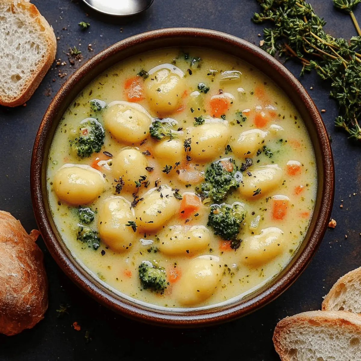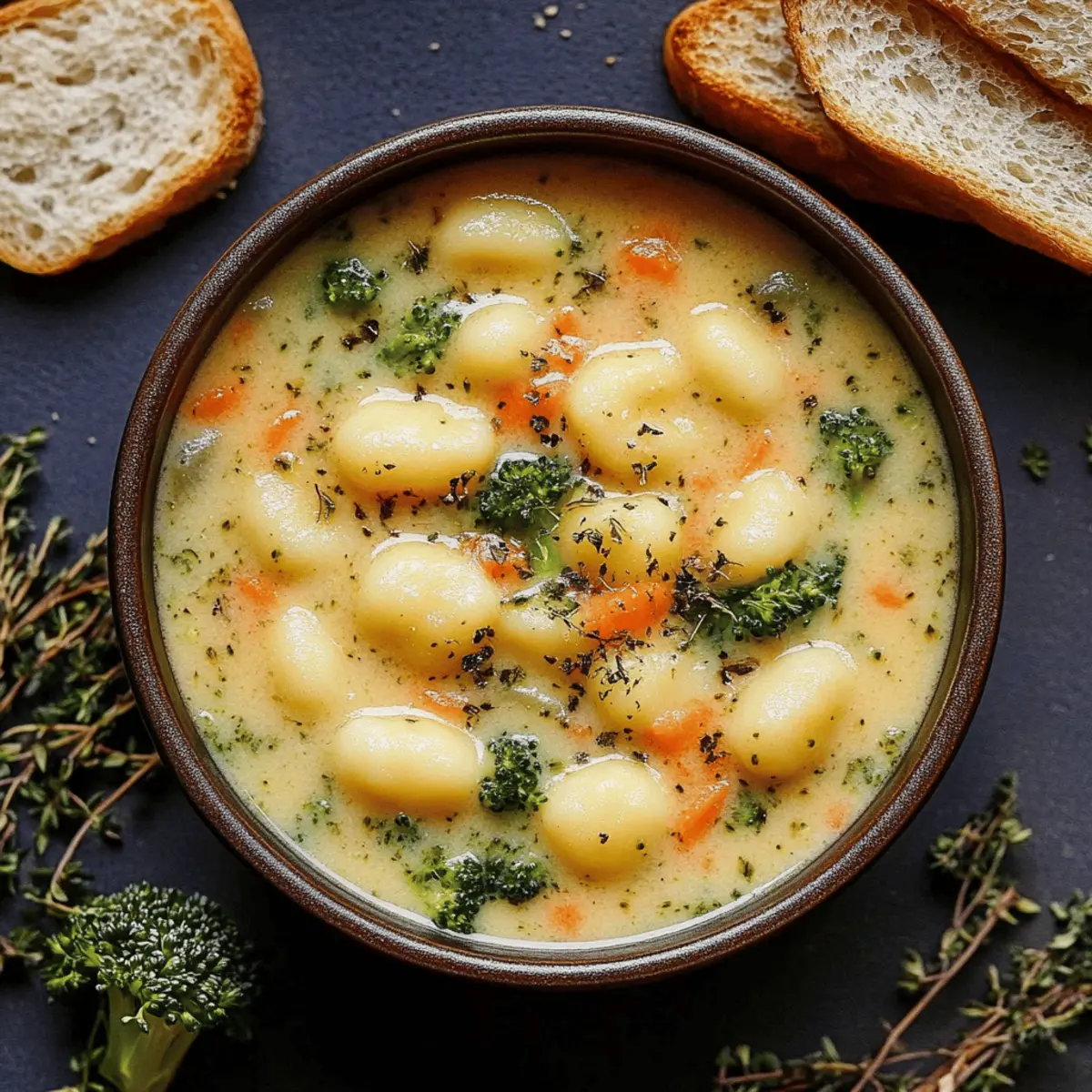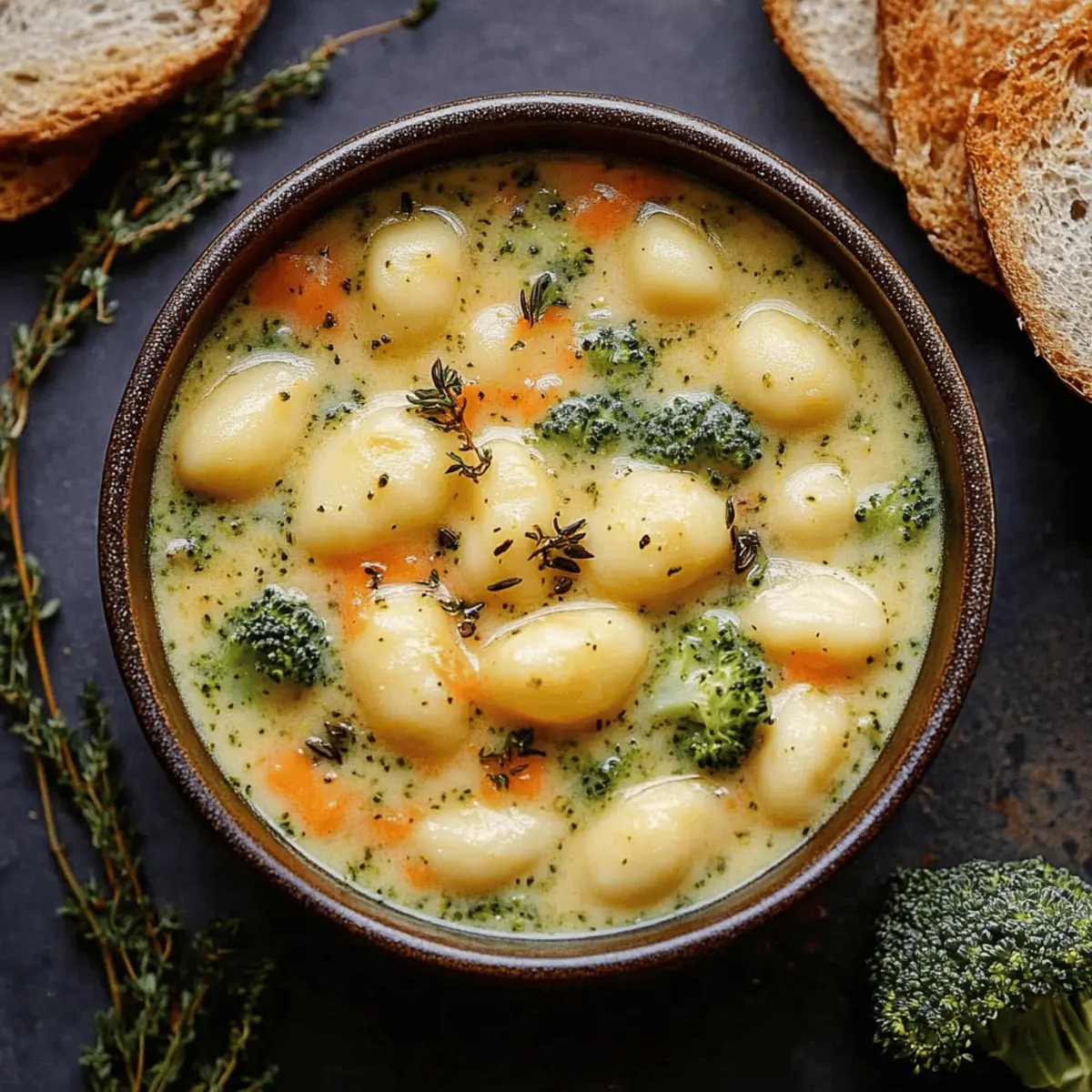 As I stirred the pot, a warm, savory aroma began to envelop my kitchen, beckoning my family to gather around. That’s when I realized—there’s nothing quite like a hearty bowl of Broccoli Cheddar Gnocchi Soup to lift spirits and warm hearts. This creamy comfort dish seamlessly blends tender potato gnocchi, fresh broccoli, and rich cheddar cheese into a velvety masterpiece that cannot be resisted. Not only is this recipe a true crowd-pleaser, but it’s also surprisingly easy to whip up after a long day, making it perfect for busy weeknights. And the best part? It’s adaptable—you can easily make it vegetarian or even gluten-free! Are you ready to enjoy a taste of home that embraces cozy vibes in every spoonful? Let’s dive in! Why is this soup a must-try? Comforting and creamy, this Broccoli Cheddar Gnocchi Soup envelops you in warmth with every spoonful! Quick and easy to prepare, it’s perfect for busy weeknights or chilly weekends when you crave something satisfying. Versatile enough to adapt for dietary needs, it can easily become vegetarian or gluten-free without sacrificing flavor. Most importantly, it’s a true crowd-pleaser that delights both family and friends, making it an ideal choice for gatherings. Get ready to savor a cozy bowl of happiness! Broccoli Cheddar Gnocchi Soup Ingredients Discover the key ingredients that create this deliciously comforting dish! For the Soup Base • Butter – Adds richness; use olive oil for a dairy-free option. • Onion – Base flavor; chopped finely for optimal sweetness. • Garlic – Provides aromatic depth; sauté until fragrant but not burnt. • All-Purpose Flour – Thickens the soup; substitute with a gluten-free flour blend if desired. • Milk – Creates the creamy texture; opt for plant-based milk for a dairy-free version. • Chicken Broth – Adds umami and flavor; vegetable broth works for vegetarian modifications. • Heavy Cream – Contributes to a luxurious consistency; can replace with additional milk for a lighter option. • Dijon Mustard – Adds a tangy note; optional but enhances overall flavor. • Worcestershire Sauce – Introduces depth; look for vegan options if necessary. For the Vegetables • Shredded Carrots – Adds sweetness and texture; can omit if preferred. • Broccoli Florets – The star vegetable; fresh is preferred, but frozen can be used (just add later to avoid mushiness). For the Cheese • Sharp Cheddar Cheese – Key flavor component; use high-quality cheese for best melt and taste. Every ingredient in this Broccoli Cheddar Gnocchi Soup has its purpose, melding together into a comforting masterpiece that invites you to cozy up and enjoy! Step‑by‑Step Instructions for Broccoli Cheddar Gnocchi Soup Step 1: Sauté Aromatics In a Dutch oven, melt 2 tablespoons of butter over medium heat. Add 1 finely chopped onion and sauté for about 5 minutes, until it becomes translucent and fragrant. Next, stir in 2 minced garlic cloves, cooking for an additional 30 seconds until the garlic is aromatic but not browned, ensuring a flavorful base for your Broccoli Cheddar Gnocchi Soup. Step 2: Create the Roux Sprinkle 1/4 cup of all-purpose flour over the onion and garlic mixture, stirring continuously to form a roux. Cook for about 2 minutes, allowing the flour to absorb the flavors and slightly brown, which will deepen the taste of your soup. This step is crucial to achieving the perfect creamy consistency in your comforting Broccoli Cheddar Gnocchi Soup. Step 3: Whisk in Liquids Gradually whisk in 4 cups of milk while stirring to create a smooth, creamy base. Continue to cook over medium heat for about 5 minutes, allowing the soup to thicken slightly. The mixture should become velvety and coat the back of a spoon, setting the foundation for the rich flavors to come in your delightful Broccoli Cheddar Gnocchi Soup. Step 4: Add Flavor Components Pour in 4 cups of chicken broth, followed by 1/2 cup of heavy cream, 1 tablespoon of Dijon mustard, and 1 teaspoon of Worcestershire sauce. Increase the heat to bring the mixture to a gentle boil, stirring frequently for about 2 minutes. This will enhance the savory depth of your Broccoli Cheddar Gnocchi Soup, making it deliciously inviting. Step 5: Incorporate Vegetables Once boiling, add 1 cup of shredded carrots and 2 cups of broccoli florets to the soup. Reduce the heat to a simmer and cook for 10 minutes, or until the broccoli is tender yet still vibrant green. This cooking time ensures that your vegetables retain their texture and complement the creamy broth beautifully in the Broccoli Cheddar Gnocchi Soup. Step 6: Prepare the Gnocchi While the soup simmers, cook 1 package of gnocchi in a separate pot of salted boiling water according to the package instructions; this typically takes about 2-4 minutes. Once they float to the surface, they’re done! Drain the gnocchi well and set aside, ready to be folded into the soup shortly. Step 7: Melt in the Cheese Before adding the cheese, taste the Broccoli Cheddar Gnocchi Soup and adjust seasonings as needed. Reduce the heat to low, then gradually stir in 2 cups of shredded sharp cheddar cheese, allowing it to melt completely—about 3-5 minutes. This is where the magic happens, turning your soup into a creamy, cheesy delight! Step 8: Combine and Serve Finally, gently fold the cooked gnocchi into the cheesy broth, ensuring they are coated well. Let the soup heat through for another 2 minutes, then serve hot, garnished with additional cheese or fresh parsley if desired. This Broccoli Cheddar Gnocchi Soup is now ready to warm your hearts and satisfy your cravings! Make Ahead Options Preparing Broccoli Cheddar Gnocchi Soup in advance is a fantastic way to save time on busy weeknights! You can prepare the soup base (without the gnocchi and cheese) up to 3 days ahead; just store it in an airtight container in the refrigerator. Be sure to let the soup cool completely before refrigerating to maintain its quality a