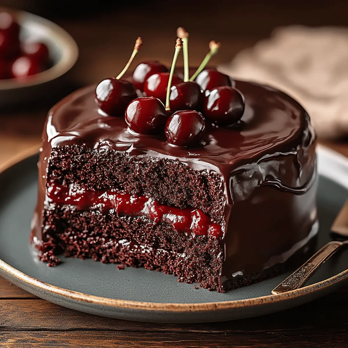 As I pulled the warm Chocolate Cherry Cake from the oven, the aroma wafted through my kitchen, mingling rich cocoa with the sweet, inviting scent of cherries. It’s a recipe that’s both simple and stunning, perfect for anyone who’s ever craved a comforting slice of homemade dessert. This delightful cake is not only a showstopper for special occasions but also a quick indulgence for cozy nights in. With its moist, tender crumb and the perfect balance of chocolate and tart cherry flavors, it promises to become a beloved staple in your collection. Plus, if you’re looking to accommodate dietary needs, a gluten-free option is just a flour swap away! Are you ready to whip up this delicious treat and create some mouthwatering memories? Why is Chocolate Cherry Cake irresistible? Decadent, fruity delight: The rich cocoa beautifully complements the sweetness of cherries, creating a flavor profile that’s simply to die for. Simplicity: This recipe is a breeze to make, perfect for both novice and seasoned bakers looking for quick satisfaction. Versatile options: Easily swap out cherries for seasonal fruits like raspberries or blueberries to keep things fresh and exciting! Gluten-free friendly: Just use gluten-free flour, and everyone can enjoy this indulgent cake without worry. Show-stopping presentation: With its stunning look, it’s an ideal centerpiece for celebrations or a delightful treat for a cozy night at home. Crowd pleaser: Whether you’re hosting a dinner party or just treating your family, this Chocolate Cherry Cake will leave everyone asking for seconds! Chocolate Cherry Cake Ingredients • To create this irresistible Chocolate Cherry Cake, gather the following ingredients: For the Batter All-purpose Flour – Provides structure to the cake; substitute with a gluten-free flour blend for a gluten-free option. Cocoa Powder – Adds a rich chocolate flavor; use Dutch-processed cocoa for a deeper taste. Baking Powder – A leavening agent that helps the cake rise; ensure it’s fresh for the best results. Baking Soda – Works with baking powder to enhance the cake’s rise. Butter – Creates a tender texture and rich flavor; can be substituted with vegetable oil for a dairy-free version. Sugar – Adds sweetness and contributes to a light, fluffy texture when creamed with butter. Eggs – Provide moisture and richness; for an egg-free option, consider a flax egg or similar substitute. Vanilla Extract – Enhances flavor depth; use pure vanilla for a stronger taste. Cherries (fresh or canned) – Infuse fruity sweetness; thaw frozen cherries before use and drain excess liquid. Feel free to substitute with blueberries or raspberries. For Dusting (Optional) Powdered Sugar – Adds a decorative touch; dust over the cooled cake for an elegant finish. Each ingredient plays a vital role in making the Chocolate Cherry Cake a delightful indulgence that is bound to please! Step‑by‑Step Instructions for Chocolate Cherry Cake Step 1: Preheat and Prepare Begin by preheating your oven to 350°F (175°C) while you prepare your baking pan. Grease a 9-inch round cake pan or line it with parchment paper to ensure easy cake removal later. The aromas filling the kitchen will set the mood for making your Chocolate Cherry Cake! Step 2: Mix Dry Ingredients In a large mixing bowl, whisk together 1 ¾ cups of all-purpose flour, ¾ cup of cocoa powder, 1 teaspoon of baking powder, and ½ teaspoon of baking soda. This combination will create the flavorful foundation of your cake. Ensure there are no lumps, and set this bowl aside as we’ll be returning to these dry ingredients shortly. Step 3: Cream Butter and Sugar In another bowl, using an electric mixer, beat together ½ cup of softened butter and 1 cup of sugar on medium speed for about 3-4 minutes until light and fluffy. The mixture will become pale in color, indicating that it’s ready for the next ingredients. Enjoy the sweet aroma wafting through your kitchen as you proceed! Step 4: Add Eggs and Vanilla Next, add two large eggs to the creamed butter and sugar mixture, one at a time, ensuring each egg is well incorporated before adding the next. Follow with 1 teaspoon of pure vanilla extract, mixing until smooth. This step adds richness and flavor to your Chocolate Cherry Cake. Step 5: Combine Wet and Dry Ingredients Gradually add the dry ingredient mixture to the wet mixture, stirring gently with a spatula. Mix until just combined; it’s important not to overmix to preserve the cake’s tender texture. The batter will be thick and rich, ready to embrace the stars of this recipe – the cherries! Step 6: Fold in the Cherries Carefully fold in 1 cup of chopped cherries, either fresh or well-drained canned ones. Make sure to distribute them evenly throughout the batter, being gentle to prevent them from breaking apart. You’ll see flecks of vibrant fruit, enhancing the visual appeal of your Chocolate Cherry Cake. Step 7: Bake the Cake Pour the cake batter into your prepared pan, smoothing the top with a spatula. Place it in the preheated oven and bake for 35-40 minutes. To check for doneness, insert a toothpick into the center; it should come out clean or with just a few moist crumbs clinging to it. Step 8: Cool and Dust Once baked, remove the cake from the oven and let it cool in the pan for about 10 minutes before transferring it to a wire rack. Allow the Chocolate Cherry Cake to cool completely. For a delightful finishing touch, dust the top with powdered sugar or your favorite icing once it’s cooled. Step 9: Serve and Enjoy Slice your beautiful Chocolate Cherry Cake and serve it up with a scoop of vanilla ice cream or a dollop of whipped cream for an extra-special treat. This rich dessert is sure to impress at any gathering or cozy night in! Make Ahead Options These Chocolate Cherry Cakes are perfect for meal prep enthusiasts who want to save time! You can prepare the batter up to 24 hours in advance by mixing all the dry ingredients a