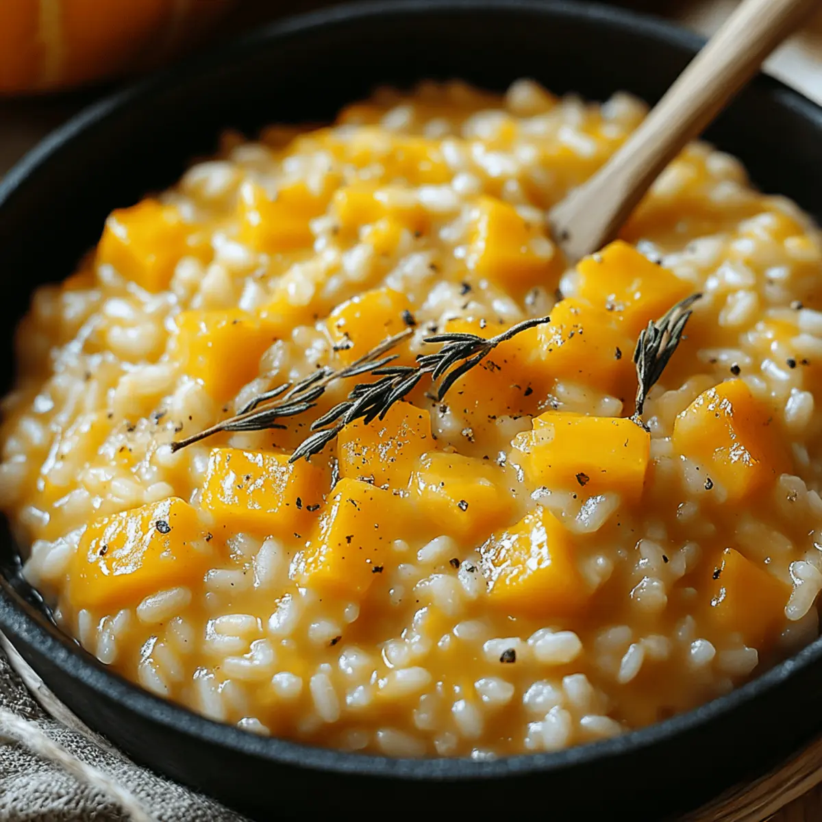 As I stood in my kitchen, the crisp autumn air drifting through the window, the earthy aroma of roasting butternut squash drew me in like a warm hug. This is the moment I knew I had to share my Cozy Butternut Squash Risotto recipe—a dish that’s not just creamy and comforting, but also a true celebration of the fall harvest. With its naturally sweet squash and tender arborio rice, this risotto is a beautiful way to indulge in seasonal flavors while providing a hearty, gluten-free option for gatherings or a cozy night in. Plus, it accommodates various dietary needs, ensuring everyone around your table can savor this dish. Are you ready to warm up your kitchen and impress your loved ones with a meal that captures the essence of autumn? Why is Butternut Squash Risotto So Special? Comforting and Cozy: This risotto is a warm embrace on chilly nights, capturing the essence of fall in every creamy bite. Seasonal Delight: Packed with the natural sweetness of roasted butternut squash, it’s a true celebration of autumn’s bounty. Versatile and Inclusive: With easy adjustments for vegan and gluten-free diets, everyone can enjoy this dish, making it perfect for gatherings. Simple Elegance: Made with pantry staples, this recipe proves that gourmet comfort food can be incredibly accessible. Impressive Presentation: Topped with fresh herbs and crunchy pumpkin seeds, it’s as visually appealing as it is delicious, guaranteed to impress your guests! Ready to get cooking? Explore more with these tips on comforting seasonal recipes. Cozy Butternut Squash Risotto Ingredients For the Risotto Butternut Squash – Provides natural sweetness and depth of flavor; can substitute with frozen butternut squash. Olive Oil – Used for roasting squash and sautéing aromatics; can replace with butter for a richer flavor. Butter – Adds creaminess to the risotto; can be omitted for dairy-free/vegan options. Onion – Offers a base flavor; sauté until translucent; substitute with shallots for a milder taste. Garlic – Enhances flavor; minced and added just before rice; fresh garlic is recommended for aroma. Arborio Rice – Essential for a creamy risotto; absorbs broth gradually; no direct substitute, but Carnaroli rice works similarly. White Wine – Brightens flavors; use dry white wine; omit for a non-alcoholic version or use additional broth. Vegetable Broth – Foundation for cooking rice; homemade is best, but store-bought works; use low-sodium for better control of salt. Parmesan Cheese – Adds savoriness and creaminess; freshly grated is recommended; for vegan, use nutritional yeast or a dairy-free cheese alternative. Salt and Pepper – Essential seasonings to taste. For the Garnish Fresh Herbs (Parsley/Sage) – For garnish; adds freshness and visual appeal. Toasted Pumpkin Seeds – Optional topping; adds crunch and nutty flavor. This Cozy Butternut Squash Risotto is your ticket to an autumn feast filled with flavor and comfort! Step‑by‑Step Instructions for Cozy Butternut Squash Risotto Step 1: Roast the Butternut Squash Begin by preheating your oven to 400°F (200°C). Peel and dice the butternut squash into bite-sized cubes, then toss them with olive oil, salt, and pepper. Spread the squash evenly on a baking sheet and roast for 25-30 minutes, or until tender and caramelized, stirring halfway through for even cooking. Step 2: Sauté Aromatics In a large, heavy-bottomed pan, heat 2 tablespoons of olive oil and 2 tablespoons of butter over medium heat. Once melted and shimmering, add the finely chopped onion. Sauté for about 5 minutes until the onion is soft and translucent, then stir in the minced garlic, cooking for an additional minute until fragrant. Step 3: Toast the Rice Add 1 cup of arborio rice to the pan with the cooked onions and garlic, stirring constantly for 2-3 minutes. As the edges of the rice become translucent, you’ll notice a slight nutty aroma—a sign that the rice is being perfectly toasted. This step is crucial for achieving the creamy texture of your Cozy Butternut Squash Risotto. Step 4: Deglaze with Wine Pour in ½ cup of dry white wine, using a wooden spoon to scrape up any bits stuck to the bottom of the pan. Stir consistently until the wine is mostly absorbed, allowing the rich flavors of the wine to meld with the rice, which should take about 2-3 minutes. Step 5: Cook the Risotto Now, begin adding the warm vegetable broth, one ladleful at a time, to the arborio rice. Stir frequently and wait until each addition of broth is mostly absorbed before adding the next. This process will take about 18-20 minutes, and the rice should be tender yet firm to the bite when finished. Step 6: Finish and Fold Once the rice reaches the desired al dente texture, gently fold in the roasted butternut squash along with ½ cup of freshly grated Parmesan cheese (or nutritional yeast for a vegan option). Adjust seasoning with salt and pepper, and for extra creaminess, consider stirring in an additional tablespoon of butter. Step 7: Serve and Garnish To serve your Cozy Butternut Squash Risotto, spoon it into bowls or onto plates, then top with freshly chopped herbs like parsley or sage. For added crunch and flavor, sprinkle with toasted pumpkin seeds. This dish beautifully pairs with a mixed green salad or grilled proteins, ideal for any autumn gathering. Cozy Butternut Squash Risotto Variations Feel free to jazz up your Cozy Butternut Squash Risotto with these simple and delightful twists! Mushroom Medley: Add sautéed mushrooms as you toast the rice for an earthy flavor that beautifully complements the squash. Spinach Surprise: Stir in fresh spinach just before finishing the risotto for a pop of green and added nutrients; it wilts perfectly into the dish. Nutty Addition: Top with toasted pine nuts or walnuts for a crunchy texture and an extra layer of flavor; they add a wonderful earthy crunch. Vegan Delight: Use nutritional yeast in place of Parmesan cheese for a dairy-free option tha
