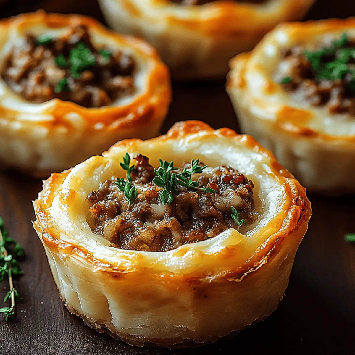 In a kitchen filled with the aroma of sautéing onions and garlic, I found myself in the midst of a mini culinary adventure, crafting Mini Shepherd’s Pies that promise not only comfort but a taste of home. These individual-sized delights feature a savory ground meat filling nestled under a cloud of creamy mashed potatoes, perfect for cozy gatherings or busy weeknight dinners. Not only are they gluten-free, making them accessible for a variety of diets, but they also come together quickly, ensuring you can whip up a hearty meal with minimal fuss. Each bite is like a warm hug, bringing joy to the table as they evoke memories of shared family meals. Ready to dive into this comforting feast? Let’s get cooking! Why Are Mini Shepherd’s Pies a Must-Try? Comforting Warmth: Each bite delivers a rich blend of savory flavors and creamy textures, making them truly irresistible on chilly nights. Quick Prep Time: Enjoy the ease of a delicious meal that comes together in about 30 minutes, perfect for busy weeknights! Gluten-Free Goodness: Everyone can savor this dish without worry, especially when using gluten-free Worcestershire sauce. Versatile Fillings: Customize your Mini Shepherd’s Pies effortlessly—try lentils for a vegetarian twist or add extra veggies for added nutrition. Crowd-Pleasing Delight: Serve these charming individual pies at gatherings, and watch them disappear faster than you can say “comfort food!” Dive deeper into more cozy recipes like our Cheesy Cauliflower Bake for special occasions! Mini Shepherd’s Pies Ingredients • Perfect for a cozy evening! For the Filling Ground Meat – Provides a hearty, savory base; you can swap it for lean ground turkey for a lighter option. Onions – Adds sweetness and depth of flavor; opt for yellow or white onions for best results. Garlic – Enhances aroma and taste; fresh garlic is ideal for maximum flavor impact. Peas and Carrots – Bring sweetness and vibrant colors; frozen veggies work perfectly in a pinch. Tomato Paste – Delivers rich umami flavor; tomato sauce can substitute if you’re out of paste. Worcestershire Sauce – Introduces a tangy complexity; remember to select a gluten-free option if required. Salt and Pepper – Essential seasonings; taste as you go for the perfect balance. Herbs (e.g., thyme) – Infuse freshness into the mix; fresh or dried depending on what you have on hand. For the Mashed Potatoes Potatoes (Russet or Yukon Gold) – Forms a creamy, comforting topping; substitute with cauliflower for a low-carb option. Butter & Cream – Elevate the richness of your mash; consider dairy-free options if you’re avoiding dairy. Fresh Parsley (for garnish) – Brings a splash of color and a burst of freshness; entirely optional but highly recommended! Now that you’re equipped with the ingredients for these delightful Mini Shepherd’s Pies, you can savor a taste of comfort food that’s sure to warm your heart and home! Step‑by‑Step Instructions for Mini Shepherd’s Pies Step 1: Prepare the Filling In a large skillet over medium heat, sauté one chopped onion and two minced garlic cloves until they’re fragrant and translucent, about 3-4 minutes. Add 1 pound of ground meat to the skillet, breaking it apart as it browns for about 5-7 minutes. Stir in 1 cup of frozen peas and carrots, along with 2 tablespoons of tomato paste, 1 tablespoon of Worcestershire sauce, and salt and pepper to taste. Let it simmer for an additional 5 minutes until thickened. Step 2: Make the Mashed Potatoes While the filling simmers, peel and chop 2-3 large potatoes, then boil them in a pot of salted water for about 15-20 minutes, or until fork-tender. Drain well, then return the potatoes to the pot and mash them with 2 tablespoons of butter and 1/4 cup of cream until smooth and fluffy. Season with salt and pepper to your liking, ensuring a creamy texture that will delight under the golden crust of your Mini Shepherd’s Pies. Step 3: Assemble the Pies Preheat your oven to 400°F (200°C). Grease individual ramekins or a muffin tin with non-stick spray so the Mini Shepherd’s Pies come out easily. Divide the savory meat filling evenly among the ramekins. Using a spoon, carefully top each with a generous layer of mashed potatoes, creating peaks and swirls with a fork for added texture and crunch once baked. Step 4: Bake Place the assembled Mini Shepherd’s Pies in the preheated oven and bake for about 20 minutes. Stay on the lookout for the tops to turn a beautiful golden brown, indicating they’re perfectly baked. This is when the comforting aromas fill your kitchen, hinting at the deliciousness waiting to be enjoyed. Step 5: Cool Slightly and Serve Remove your Mini Shepherd’s Pies from the oven and let them cool for a few minutes before serving. Their golden, crispy tops will maintain their texture, while the filling remains warm and savory beneath. Garnish with fresh parsley for a pop of color and extra flavor, inviting everyone to dig into these delightful individual portions of comfort food. Make Ahead Options These Mini Shepherd’s Pies are perfect for meal prep enthusiasts looking to save time during busy weeknights! You can prepare the filling up to 24 hours in advance by following the initial steps of the recipe and refrigerating it once it has cooled. The mashed potatoes can also be made ahead and stored separately in an airtight container for up to 3 days to maintain their creamy texture. When you’re ready to enjoy, simply assemble the pies in your ramekins, add a spoonful of mashed potatoes on top, and bake from refrigerated until heated through, about 25-30 minutes. This way, you’ll have a hearty, homemade meal that’s just as delicious and comforting with minimal effort! Expert Tips for Mini Shepherd’s Pies Layering for Flavor: Ensure you evenly distribute the filling and mash to create a luscious top layer; this will enhance the taste of your Mini Shepherd’s Pies. Substituting Ingredients: If yo