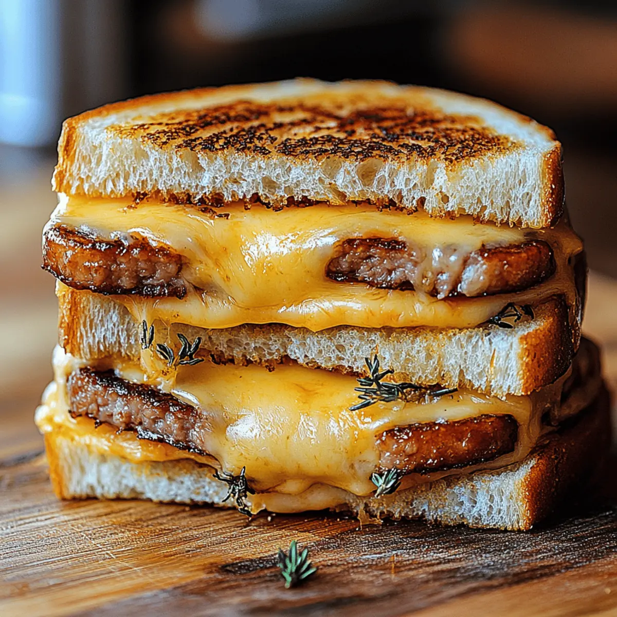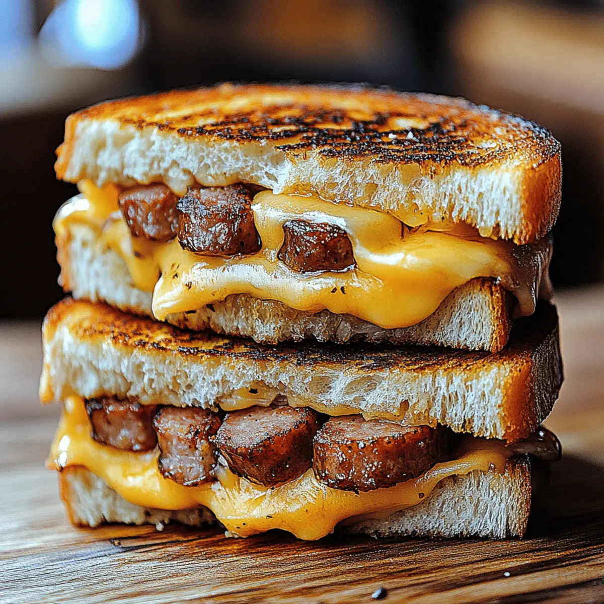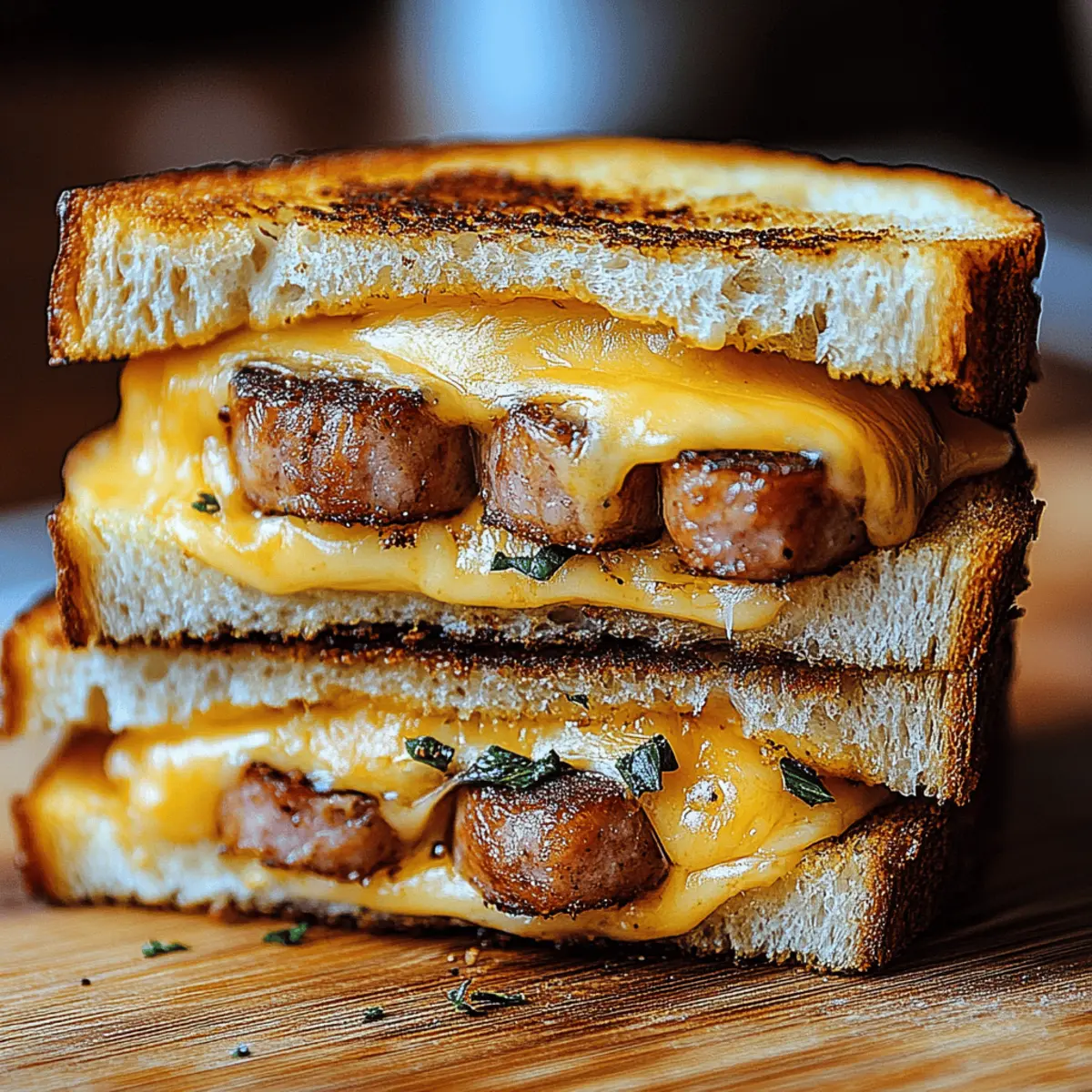 There’s something incredibly satisfying about the crunch of toasted bread giving way to a warm, gooey center—that’s the kind of hug in food form I crave. Enter the Smoked Sausage Grilled Cheese, a delightful twist on a beloved classic that’s bound to elevate your sandwich game. With the rich flavor of smoked sausage mingling with your choice of melty cheeses, this recipe excels in heartiness while being ridiculously easy to whip up. Plus, it’s adaptable, allowing you to cater to various tastes and dietary needs, including a gluten-free option. Whether it’s for a cozy weeknight dinner or a weekend lunch, this grilled cheese is not just satisfying; it’s a fun culinary adventure waiting to happen. Ready to discover how to create a sandwich that will have everyone asking for seconds? Why Will You Love This Sandwich? Indulgent, mouthwatering flavor: The combination of smoky sausage and melty cheese creates a flavor explosion that will make your taste buds dance. Customizable impact: Whether you prefer cheddar, gouda, or something more adventurous, the ingredients can adapt to your whims or pantry staples, including gluten-free options. Quick and easy: Whip this up in less than 30 minutes, making it perfect for a filling weeknight dinner or a leisurely weekend lunch. Crowd-pleaser: Kids and adults alike will love this hearty twist on a classic, and it’s an ideal dish to impress at casual gatherings. Pair it with a side of Pot Mac Cheese for a comfort meal that satisfies even the pickiest eaters! Smoked Sausage Grilled Cheese Ingredients For the Sandwich Smoked Sausage – Adds a rich, smoky flavor; you can substitute with kielbasa or andouille for different tastes. Bread – A sturdy choice is essential for grilling; gluten-free bread is an excellent option for a gluten-free version. Cheese (Cheddar/Mozzarella/Gouda/Pepper Jack) – Provides creaminess and a gooey texture; feel free to mix cheeses for extra depth. Butter – Necessary for toasting the bread, ensuring a crispy exterior; don’t skimp on covering the outside generously! Optional Garnishes Fresh Parsley – Brightens the presentation; sprinkle for a burst of color. Smoked Paprika – Offers an extra layer of flavor that complements the smoked sausage beautifully. Step‑by‑Step Instructions for Smoked Sausage Grilled Cheese Step 1: Prepare the Sausage Begin by slicing the smoked sausage into thin rounds, about ¼-inch thick. Place a skillet over medium heat and add the sausage, cooking for 3-4 minutes until it begins to brown slightly and release its savory aromas. This quick step enhances the flavor and adds a delightful texture to your Smoked Sausage Grilled Cheese. Once done, transfer the sausage to a plate and set aside. Step 2: Assemble the Sandwich Take two slices of your chosen bread and generously butter one side of each. On the unbuttered side, layer your choice of cheese—cheddar, mozzarella, or gouda—followed by the sautéed smoked sausage. Feel free to mix different cheeses for a richer tasting experience. Stack another piece of bread on top, with the buttered side facing outward, creating a flavorful sandwich ready for grilling. Step 3: Grill the Sandwich Heat a non-stick skillet over medium-low heat and place your assembled Smoked Sausage Grilled Cheese onto the pan. Grill for 3-4 minutes, or until the bread turns a golden-brown color and the cheese begins to melt. Use a spatula to gently press down on the sandwich, ensuring nice contact with the pan for even cooking. Step 4: Flip and Finish Carefully flip the sandwich using the spatula and continue grilling for another 3-4 minutes on the other side. Look for a crispy, golden surface and melted cheese oozing from the sides—this is the perfect sign that your sandwich is done. Once both sides are beautifully toasted, remove the sandwich from the pan and let it rest for a minute. Step 5: Serve and Garnish Slice your Smoked Sausage Grilled Cheese in half for easy handling, revealing the melted cheese and smoky sausage inside. For an extra touch of flavor and presentation, sprinkle with chopped fresh parsley or a dash of smoked paprika. Serve this delicious sandwich warm, perhaps alongside your favorite pickles or a light salad for a complete meal. Make Ahead Options These Smoked Sausage Grilled Cheese sandwiches are a fantastic option for meal prep enthusiasts! You can prepare the sausage by slicing it and cooking it up to 24 hours in advance, then refrigerate it in an airtight container to maintain its flavor and texture. The next day, assemble your sandwiches by layering the cold sausage and cheese on the bread, ready for grilling. When you’re ready to serve, simply butter the exterior and grill the sandwiches as instructed. This way, you’ll enjoy the delightful combination of smoky sausage and melty cheese without the fuss, making your busy weeknights effortlessly delicious! Smoked Sausage Grilled Cheese Variations Feel free to explore these delicious twists and substitutions to make the Smoked Sausage Grilled Cheese truly your own! Vegetarian Option: Substitute the smoked sausage with grilled portobello mushrooms or tempeh for a hearty, plant-based delight. This gives the sandwich a unique earthiness while still providing that satisfying umami flavor. Gluten-Free: Use gluten-free bread to make a scrumptious gluten-free version without sacrificing flavor or texture. It’s a delightful way to ensure everyone can enjoy this comfort food classic! Spicy Kick: Elevate your sandwich by adding sliced jalapeños or a smear of sriracha for a fiery burst of flavor. The heat pairs wonderfully with the rich, melted cheese and smoky sausage, creating a delightful contrast. Cheese Combinations: Try mixing different cheeses like pepper jack with gouda or a sharp cheddar with fontina for added creaminess. This mix creates a fuller flavor profile that oozes deliciousness with every bite! Add Crunch: Incorporate crispy fried onions or fresh spinach to intro