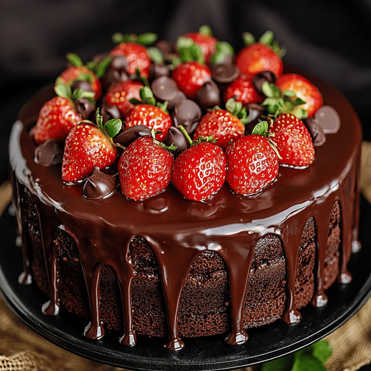 As I stood in my kitchen, a burst of sweetness danced through the air, igniting a wave of nostalgia. The magic I was crafting? A Moist Strawberry Chocolate Cake, a delightful fusion of rich chocolate and fresh strawberries that embodies the spirit of celebration. This cake isn’t just a dessert; it’s a show-stopping centerpiece for your next gathering, yet simple enough for a cozy weeknight treat. With its moist layers and vibrant strawberry accents, it’s a guaranteed crowd-pleaser that’ll impress friends and family. Plus, the best part? You’ll be amazed at how quickly you can whip it up! Ready to dive into this charming recipe that will have everyone asking for seconds? Let’s get baking! Why Is This Cake So Irresistible? Decadent Flavor: The combination of rich chocolate and fresh strawberries creates a luxurious taste that makes every bite unforgettable. Easy to Make: With simple ingredients and straightforward steps, this recipe is beginner-friendly, ensuring that everyone can join in on the fun of baking. Versatile Delight: Perfect for celebrations and casual gatherings alike, it easily adapts to any occasion, making it a seasonal favorite. Moist & Tender: Each slice boasts a delightful crumb, thanks to the harmonious balance of ingredients that ensures your cake remains moist and inviting. Show-stopping Presentation: Topped with fresh strawberries and silky ganache, it not only tastes divine but also looks breathtaking on any dessert table. Treat yourself and your loved ones to an unforgettable experience with this Strawberry Chocolate Cake that’s ready for all your special moments! Strawberry Chocolate Cake Ingredients For the Cake • All-purpose flour – Forms the structure of the cake; substitute gluten-free flour for a gluten-free version. • Cocoa powder – Provides a rich chocolate flavor; Dutch-processed cocoa offers a milder taste. • Baking powder & baking soda – Essential leavening agents that ensure your cake rises beautifully; check for freshness before using. • Butter – Adds necessary richness and moisture; vegetable oil can be used for a lighter option. • Sugar – Sweetens the cake while retaining moisture; no significant substitutions are recommended. • Eggs – Bind the ingredients together and add moisture; for a vegan option, try flax eggs. • Vanilla extract – Enhances the overall flavor profile; opt for quality pure extract for the best taste. • Milk or buttermilk – Contributes to moisture and tenderness; almond milk or dairy-free alternatives work well too. • Fresh strawberries – Provides moisture, sweetness, and a burst of freshness; use ripe strawberries for optimal flavor, though frozen can be used if well-drained. For the Decoration • Chocolate ganache – A silky topping that elevates your cake; use dark chocolate for a richer flavor. • Fresh strawberry slices – Adds a visually stunning finish and enhances the flavor; ensure they’re ripe and sweet for the best results. Get ready to enjoy every luscious bite of this delectable Strawberry Chocolate Cake and create joyful memories with every slice! Step‑by‑Step Instructions for Strawberry Chocolate Cake Step 1: Preheat the Oven and Prepare Pans Begin by preheating your oven to 350°F (175°C). While it’s heating, prepare two 8-inch round cake pans by greasing them generously with butter and lightly dusting them with flour. This step ensures that your moist Strawberry Chocolate Cake layers release easily after baking, giving you beautiful, intact cakes to work with. Step 2: Mix the Dry Ingredients In a large mixing bowl, sift together the all-purpose flour, cocoa powder, baking powder, and baking soda. This process not only helps to eliminate lumps but also aerates the dry ingredients, creating a lighter texture for your cake. Set this bowl aside and focus on the wet ingredients for the next step. Step 3: Cream Butter and Sugar In a separate bowl, use an electric mixer to cream the softened butter and sugar together until the mixture is light and fluffy, approximately 3-4 minutes. This crucial step infuses air into the mixture, which results in a tender crumb. Then, add the eggs one at a time, mixing well after each addition, followed by the vanilla extract to enhance the flavors of your delicious Strawberry Chocolate Cake. Step 4: Combine Wet and Dry Ingredients Gradually add the sifted dry ingredients to the creamed mixture while alternating with milk or buttermilk, starting and ending with the dry ingredients. Mix on low speed until everything is just combined, ensuring not to overmix, as this will keep the cake texture light and fluffy. Step 5: Fold in Fresh Strawberries Gently fold in the chopped fresh strawberries with a spatula until evenly dispersed throughout the batter. This step not only adds vibrant color and moisture but also infuses your Strawberry Chocolate Cake with delightful fruity bursts. Be careful not to overwork the batter in this stage. Step 6: Bake the Cake Layers Divide the batter evenly between the prepared cake pans, smoothing the tops with a spatula. Place them in the preheated oven and bake for 25–30 minutes. You’ll know they’re done when a toothpick inserted into the center comes out clean. Enjoy the enticing aroma of chocolate and strawberries that fills your kitchen during baking! Step 7: Cool and Frost the Cake Once baked, remove the cake layers from the oven and allow them to cool in the pans for about 10 minutes. Then, carefully remove them from the pans and place on wire racks to cool completely. Once cool, you’re ready to frost the moist Strawberry Chocolate Cake with chocolate ganache or your favorite frosting, topping it with fresh strawberry slices for a delightful presentation. Helpful Tricks for Strawberry Chocolate Cake Room Temperature Ingredients: Ensure all ingredients, especially eggs and butter, are at room temperature. This promotes better blending and a fluffier cake. Don’t Overmix: Mix the batter j