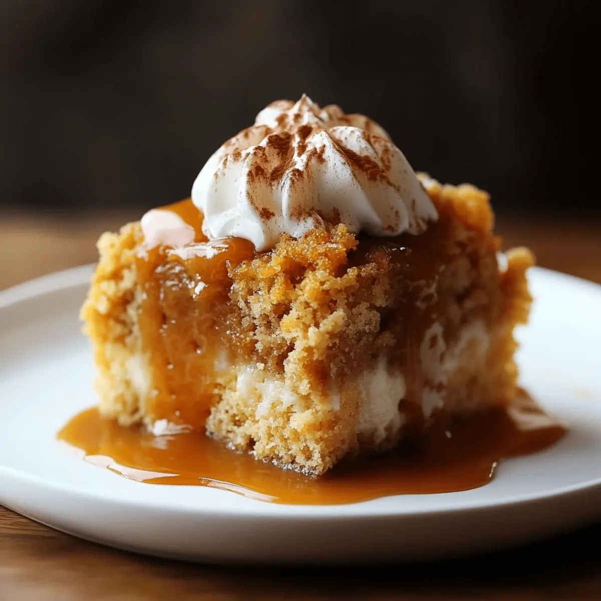 Enjoy a warm, cozy Pumpkin Dump Cake, perfect for fall gatherings and effortless baking.