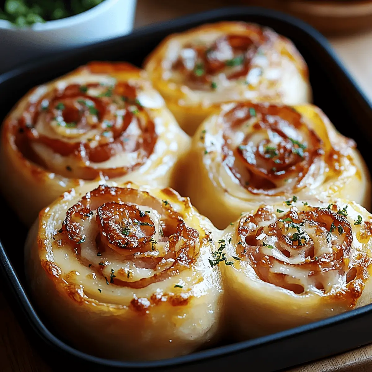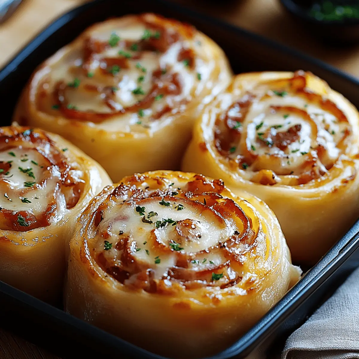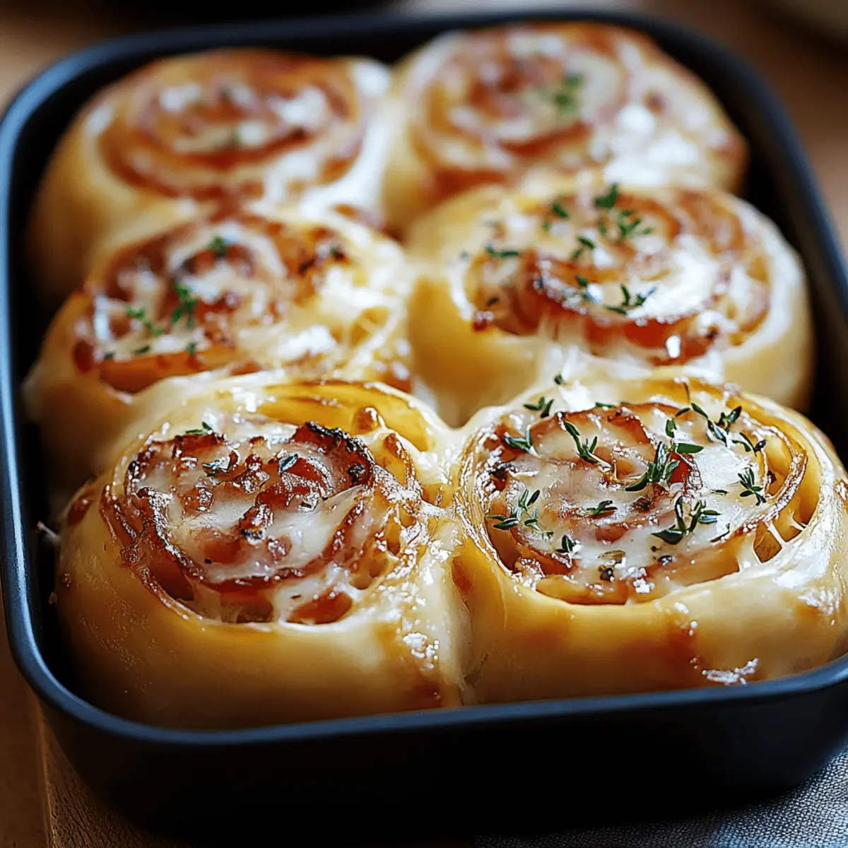As I pulled these Bacon & Cheese Rolls from the oven, the aroma of crispy bacon and melted cheddar instantly transported me to my favorite family gatherings. These savory snacks are a delightful fusion of textures, with a golden-brown exterior that gives way to a warm, gooey center—a truly irresistible combination. Whether you’re looking for a quick snack or planning a gathering, this recipe is a lifesaver! With just 10 minutes of prep and 15 minutes of baking, you can whip up these mouthwatering rolls that everyone will enjoy. Plus, they’re incredibly adaptable; you can easily cater to gluten-free diets or switch up the flavors for an even more personalized taste. Ready to indulge? Let’s dive into the delicious world of homemade Bacon and Cheese Rolls! Why Choose Bacon and Cheese Rolls? Irresistible Appeal: These Bacon & Cheese Rolls are the ultimate crowd-pleaser, perfect for any occasion—whether it’s a game day snack or a cozy family dinner. Quick & Easy: With just 10 minutes of prep time and 15 minutes of baking, you’ll have fresh, flavorful rolls ready in no time. Versatile Ingredients: Feel free to customize! Whether you’re opting for gluten-free rolls or experimenting with different cheeses, you can craft the perfect bite for everyone. Satisfying Texture: The contrast of the crispy exterior and gooey interior makes each roll a delightful treat that’s hard to resist. Perfect for Sharing: Serve them warm at gatherings, allowing your guests to indulge in their cheesy goodness, and don’t forget to pair with your favorite dipping sauce for added flavor! Get ready to enjoy these Rolls; they’ll quickly become a staple at your table! Bacon and Cheese Rolls Ingredients For the Rolls • Dinner Rolls – Use soft rolls for the best texture; feel free to substitute gluten-free options! • Butter – Adds richness; opt for dairy-free butter for a lactose-free version. For the Filling • Bacon – The star ingredient for that savory crunch; swap for turkey bacon or plant-based alternatives as needed. • Cheddar Cheese – Melts perfectly to create a gooey center; try Monterey Jack or dairy-free cheese if you prefer. For Flavor Enhancement • Garlic Powder – Boosts the flavor profile; fresh minced garlic can be used instead if you prefer a stronger note. These Bacon and Cheese Rolls are adaptable and delicious, perfect for satisfying all taste buds! Step‑by‑Step Instructions for Bacon and Cheese Rolls Step 1: Cook Bacon In a skillet over medium heat, cook the bacon strips until they are crispy, taking about 6-8 minutes. Once cooked, transfer the bacon to a paper towel-lined plate to drain any excess fat. Allow it to cool slightly before crumbling into bite-sized pieces, ensuring that each savory bite will enhance the flavor of your Bacon and Cheese Rolls. Step 2: Prepare Rolls While the bacon is cooling, preheat your oven to 375°F (190°C). Take each soft dinner roll and carefully cut a pocket into the top, making sure not to slice all the way through. This will create the perfect vessel to hold the delicious filling in your Bacon and Cheese Rolls. Set the rolls aside as you prepare the stuffing. Step 3: Stuff Rolls Fill each prepared pocket of the rolls with a generous amount of shredded cheddar cheese and crumbled bacon. Aim for an even distribution to ensure each mouthful of these Bacon and Cheese Rolls is bursting with flavor. As you stuff the rolls, the cheese will melt beautifully during baking, creating a gooey and satisfying center. Step 4: Butter Mixture In a small bowl, melt some butter and mix in garlic powder for added flavor. Using a pastry brush, liberally brush this mixture over the tops of each stuffed roll, ensuring a lovely golden color as they bake. The buttery garlic will not only enhance the taste but also promote a crisp top for your delicious Bacon and Cheese Rolls. Step 5: Bake Place your stuffed rolls on a baking sheet lined with parchment paper for easy cleanup. Bake in the preheated oven at 375°F (190°C) for about 12-15 minutes. Keep an eye on them as they bake; you want the cheese to be bubbly and the tops to reach a beautiful golden brown color—a signal that your Bacon and Cheese Rolls are ready to be devoured. Step 6: Garnish Once out of the oven, allow the rolls to cool for a few minutes. For a burst of freshness, sprinkle chopped parsley or chives on top for an inviting presentation. This small touch elevates the rustic charm of your Bacon and Cheese Rolls, making them not just tasty, but visually appealing as well. Step 7: Serve Serve your Bacon and Cheese Rolls warm alongside your favorite dipping sauces such as ranch or honey mustard. These rolls make for an excellent appetizer or snack that everyone will enjoy. Pair them with light sides like a green salad or crispy potato wedges for a complete meal, perfect for any gathering or cozy night in! What to Serve with Bacon & Cheese Rolls Elevate your meal with delightful pairings that will complement these savory favorites perfectly. Garlic Butter Pasta: The buttery flavor of garlic pasta enhances the rolls while adding a soft, comforting texture alongside. A wonderful way to indulge! Fresh Green Salad: A crisp salad with a tangy vinaigrette balances the richness of the rolls, bringing a refreshing crunch to your meal. Crispy Potato Wedges: Golden brown wedges add a satisfying crunch, and their mild flavor makes them an ideal companion for the gooey cheesy rolls. Enjoy them dipped in ketchup or ranch! Honey Mustard Dip: This sweet and tangy dip is a crowd favorite that pairs effortlessly with the salty bacon and cheese, adding an extra layer of flavor. Creamy Coleslaw: The cool, creamy texture of coleslaw contrasts beautifully with the warm rolls, creating a delightful harmony of flavors and textures. Homemade Tomato Basil Soup: A warm bowl of soup offers a comforting combo, with the acidity of tomatoes complementing the richness of the rolls beautifully. Sparkling Lemonade: Th