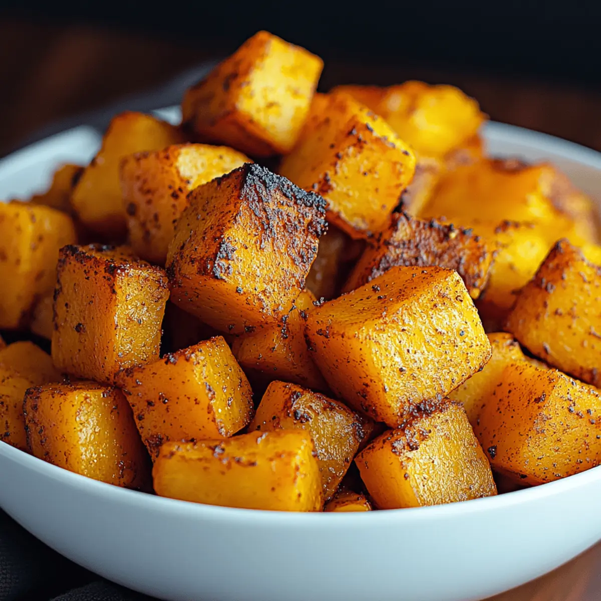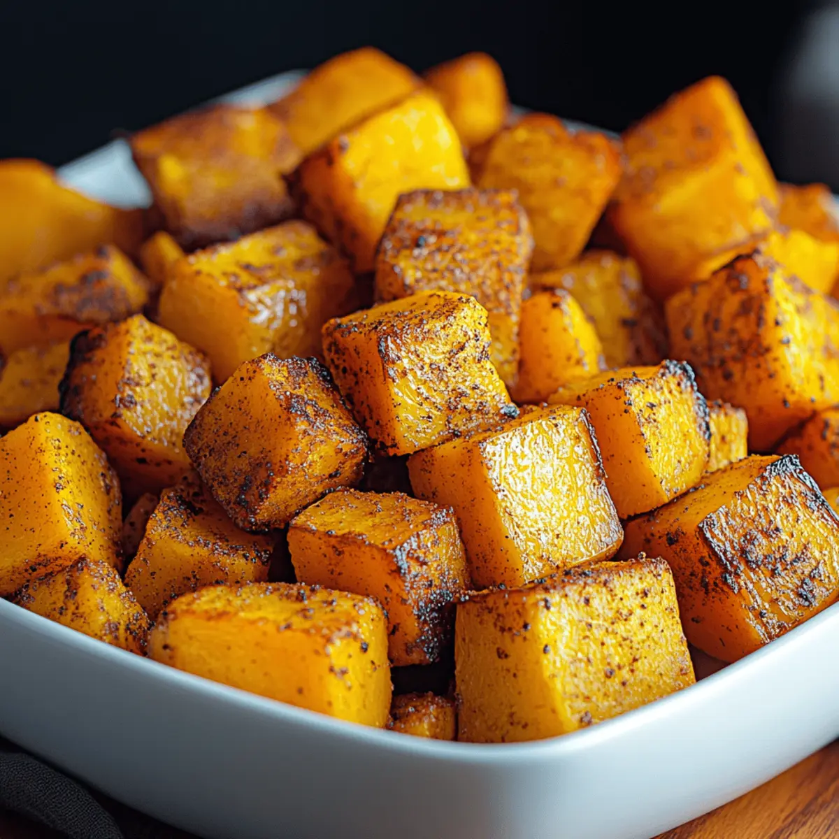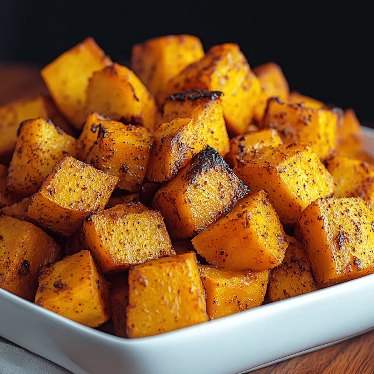 As the autumn breeze dances through my kitchen window, it’s the perfect reminder to embrace the bounty of harvest flavors. One of my favorite ways to enjoy this seasonal goodness is with my Easy Cinnamon Roasted Butternut Squash recipe. The natural sweetness of the butternut squash, combined with warm, inviting cinnamon, transforms this simple dish into a comforting delight. Not only is it quick to prepare, making it ideal for busy weeknights, but it’s also incredibly versatile—perfect for showcasing different squash varieties or sweeteners. Whether you’re serving it alongside roasted meats or as a standalone snack, this dish will surely win over your family and friends. Ready to bring the warmth of autumn to your table? Let’s dive into this savory side dish! Why is Butternut Squash so Special? Nutritious Goodness: Butternut squash is packed with vitamins A and C, making it a healthy addition to any meal. Quick & Easy: This dish can be whipped up in just 30 minutes—perfect for those busy weeknights or last-minute gatherings! Impressive Flavor: The warm notes of cinnamon enhance the natural sweetness, creating a flavor profile that’s both comforting and satisfying. Versatile Options: Feel free to swap in different squash types or sweeteners, allowing you to personalize the dish to your liking. Crowd-Pleasing Appeal: This Easy Cinnamon Roasted Butternut Squash is sure to impress both family and guests, making it a must-have for any gathering! Whether it’s a holiday feast or a casual dinner, it pairs beautifully with a host of main dishes or can shine on its own. Cinnamon Roasted Butternut Squash Ingredients For the Squash • Butternut Squash – The star of the dish that provides natural sweetness and a creamy texture; you can also use acorn squash or sweet potatoes as a substitute. • Olive Oil – Essential for roasting, it adds richness and helps achieve a crispy exterior; other neutral oils work just as well. • Ground Cinnamon – This warm spice is crucial for the signature flavor of the dish; feel free to experiment with nutmeg for a twist. • Salt – Enhances the natural flavors of the squash; I recommend using sea salt or kosher salt for the best results. • Pepper (optional) – Adds a hint of warmth; adjust to your taste or skip it for a sweeter profile. • Maple Syrup or Honey (optional) – For that extra touch of sweetness after roasting; choose maple syrup for a vegan-friendly version. This Cinnamon Roasted Butternut Squash recipe is both simple and versatile, making it the perfect addition to your autumn table! Step‑by‑Step Instructions for Cinnamon Roasted Butternut Squash Step 1: Preheat Your Oven Begin by preheating your oven to 400°F (200°C). This temperature is crucial for achieving that caramelized goodness on your cinnamon roasted butternut squash. Set a timer for about 10 minutes, allowing your oven to reach the perfect roasting heat before you start preparing the squash. Step 2: Prepare the Squash While the oven heats up, take your butternut squash and carefully peel it with a sharp vegetable peeler. Cut it in half lengthwise, scoop out the seeds, and then chop the squash into 1-inch cubes. Uniform cutting ensures even roasting, so take your time and enjoy the process of transforming this seasonal beauty. Step 3: Season the Cubes In a large mixing bowl, combine the cubed butternut squash with a drizzle of olive oil, ground cinnamon, salt, and optionally, a pinch of pepper. Toss everything together until the squash is well-coated with the fragrant seasoning mixture. This step will infuse the squash with delightful flavors that really shine during roasting. Step 4: Arrange for Roasting Line a baking sheet with parchment paper for easy cleanup and to ensure the squash gets crispy edges. Spread the seasoned cubes of butternut squash out in a single layer on the baking sheet. Avoid overcrowding, as this will help them roast evenly and achieve that irresistible caramelization. Step 5: Roast the Squash Place the baking sheet into the preheated oven and roast the butternut squash for 25-30 minutes. Halfway through the roasting time, gently flip the cubes with a spatula to ensure even browning. You’ll know they’re done when they’re golden brown and fork-tender, creating a perfect base for your cinnamon roasted butternut squash dish. Step 6: Finish with a Sweet Drizzle Once roasted, remove the baking sheet from the oven and drizzle your squash with maple syrup or honey for that added touch of sweetness. Toss gently to coat the cubes evenly. This step enhances the natural flavors, making your cinnamon roasted butternut squash truly memorable. Step 7: Serve and Enjoy Transfer the fragrant cinnamon roasted butternut squash to a serving dish, garnishing it with fresh herbs or nuts if desired. Whether you enjoy it as a side dish or a standalone treat, this colorful preparation is sure to bring warmth and excitement to your dining table. Expert Tips for Cinnamon Roasted Butternut Squash Even Cuts Matter: Ensure the butternut squash is cut into uniform sizes. This guarantees even cooking and perfectly tender bites throughout your cinnamon roasted butternut squash. Don’t Overcrowd: Spread the squash cubes in a single layer on the baking sheet. Overcrowding can lead to steaming instead of roasting, resulting in soggy edges instead of crispy ones. Perfectly Crisp Reheating: Reheat leftovers in the oven or on the stovetop rather than the microwave. This helps maintain the crispy texture and warm flavors of your cinnamon roasted butternut squash. Experiment with Flavors: Feel free to personalize your dish by adding spices or swapping sweeteners. Nutmeg or a hint of cayenne can elevate the flavor of your cinnamon roasted butternut squash to new heights! Batch It Up: If you’re serving a crowd, consider roasting in batches to ensure every bite has those caramelized edges. No one can resist the beauty of perfectly roasted squash! How to Store and Freez
