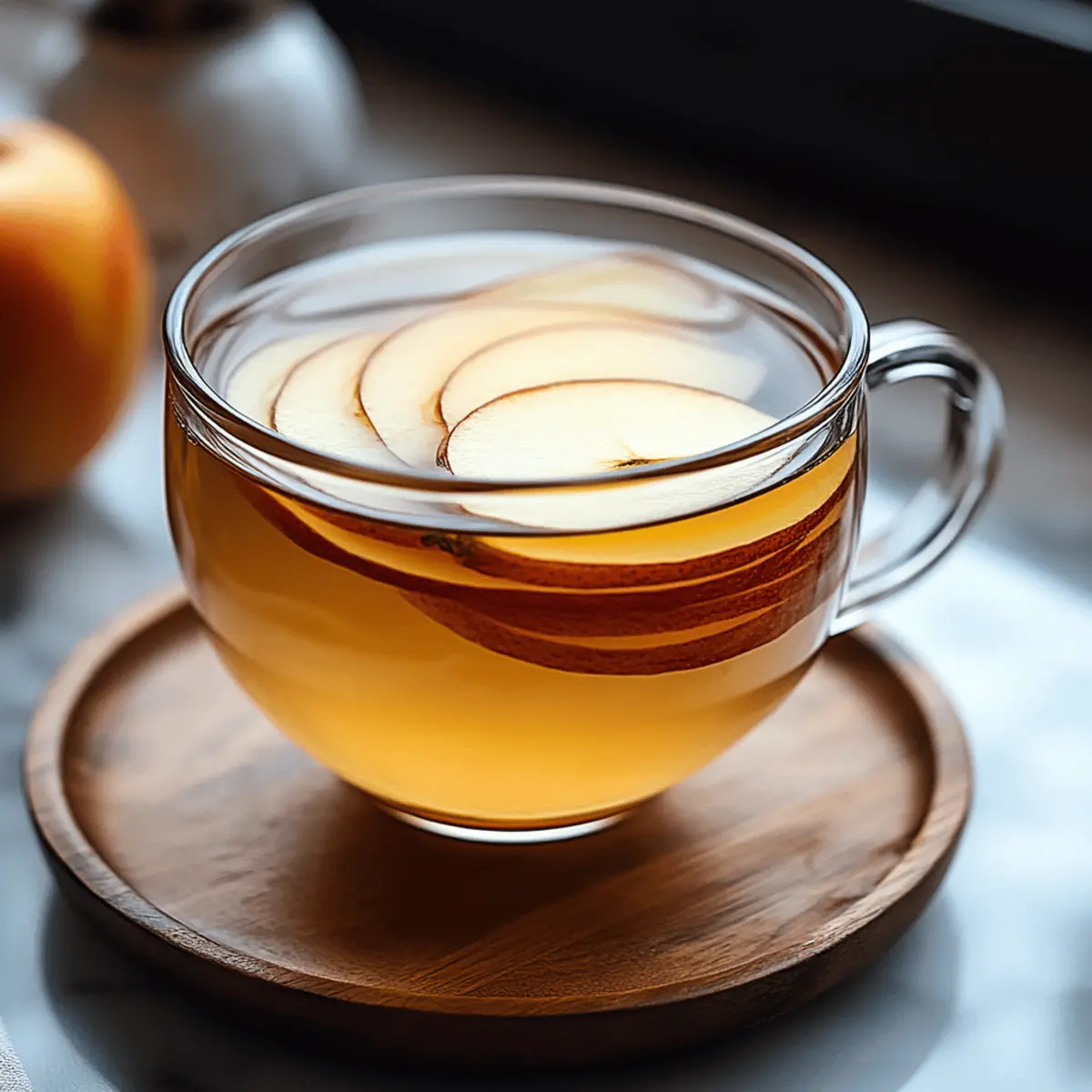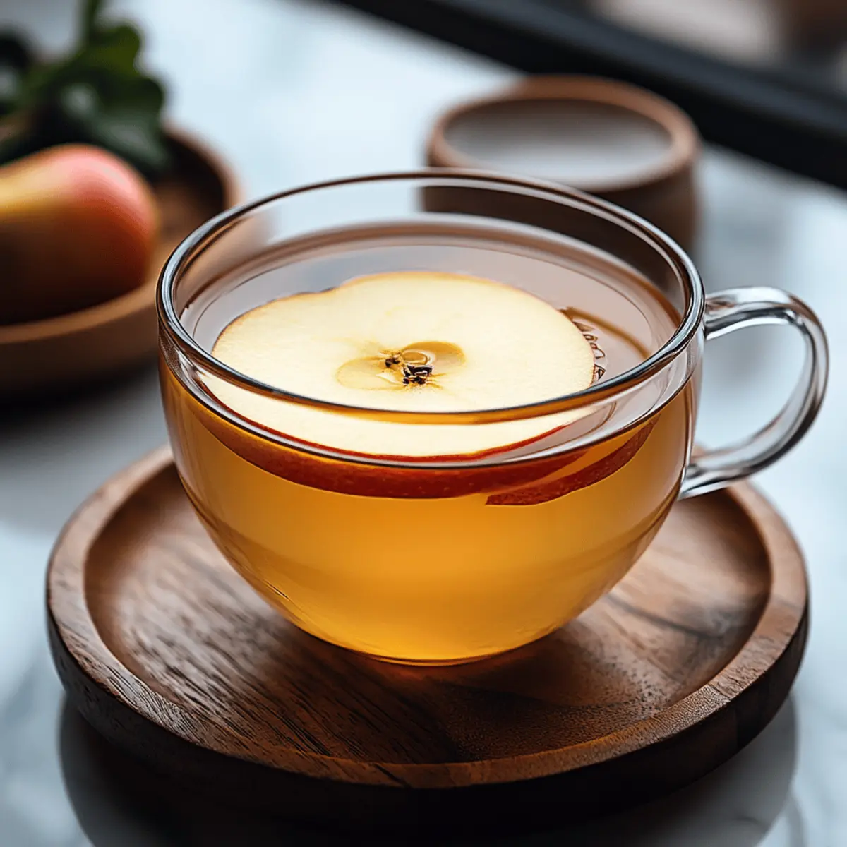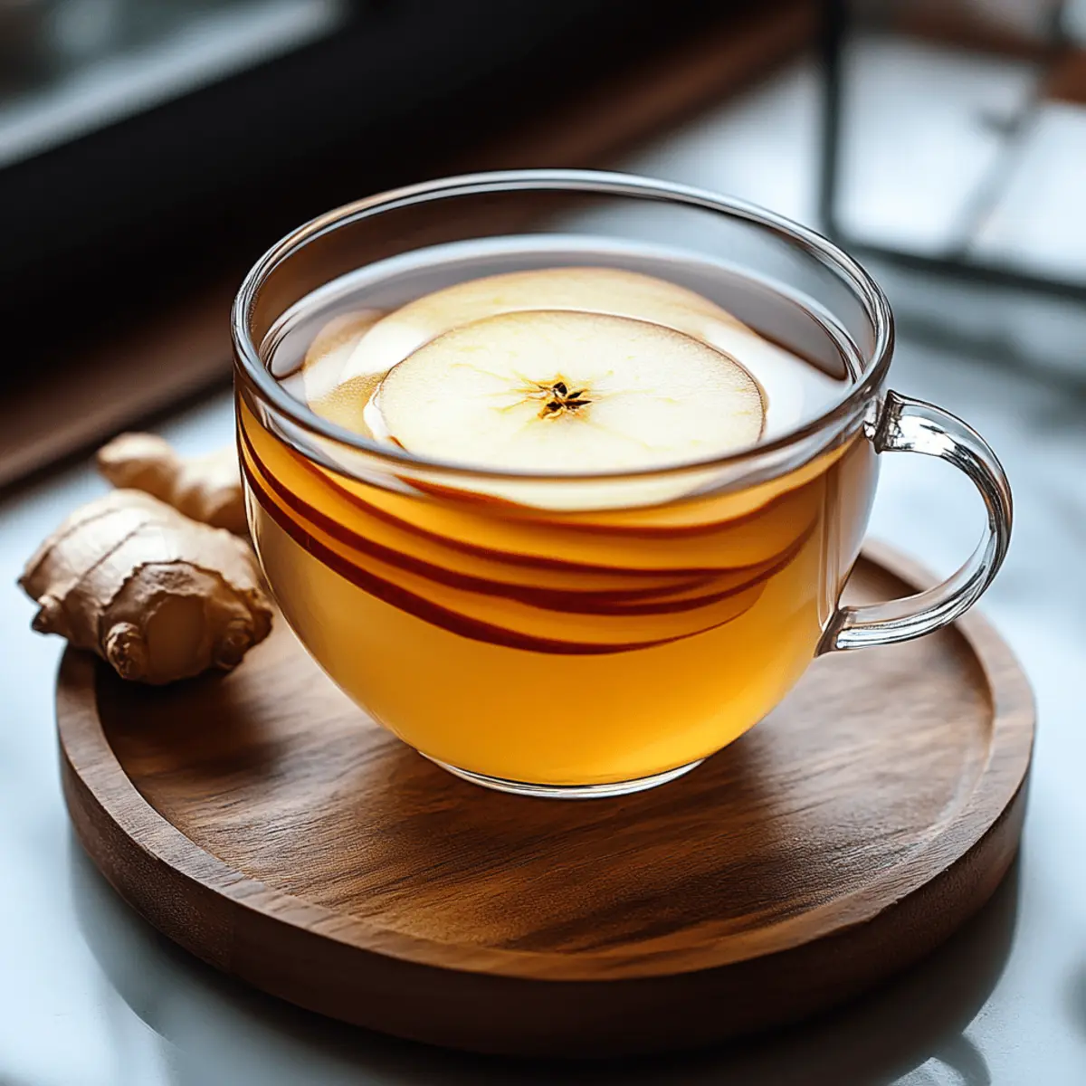 As the leaves turn and a crisp chill fills the air, I find myself reaching for a warm cup of comfort—Korean Apple Ginger Tea. This delightful brew, brimming with fresh ginger’s spicy warmth and the sweet essence of antioxidant-rich apples, is not just a beverage; it’s a hug in a mug, perfect for those cozy evenings. Not only is this tea immune-boosting, making it a fantastic choice for the health-conscious, but its simplicity also allows you to whip it up in no time, making it a crowd-pleaser without the fuss. Whether you’re sipping it on a quiet afternoon or sharing it with friends, this recipe invites creativity, letting you tailor it to fit your health goals or the ingredients you have on hand. Curious how to make this cozy cup of goodness? Let’s dive into the recipe! Why is Korean Apple Ginger Tea special? Comforting Warmth: This tea warms you from the inside out, making it perfect for chilly evenings. Immunity Boost: Packed with ginger’s anti-inflammatory properties and apple’s antioxidants, it’s a delicious way to support your immune health. Quick & Easy: With just a few ingredients and simple steps, you can have a nourishing drink ready in no time. Customizable Experience: Personalize your tea by adding a splash of lemon for brightness or experimenting with spices like cinnamon. Crowd-Pleasing Delight: Serve it hot or cold, and watch it become a favorite for everyone at the table! For a delightful pairing, consider some light snacks such as rice cakes or steamed dumplings to elevate your tea time. Korean Apple Ginger Tea Ingredients For the Tea Apples – Their natural sweetness and antioxidants make for a delicious base; use organic apples for extra flavor. Fresh Ginger – This adds warmth and essential anti-inflammatory properties; slice it thinly to maximize its infusion. Filtered Water – A quality base for the tea; always opt for fresh, filtered water to enhance flavor. For Sweetening Honey (or preferred sweetener) – This enhances sweetness naturally; consider maple syrup for a vegan alternative to make your Korean Apple Ginger Tea suitable for all diets. Optional Lemon Juice – Adds a zesty brightness; use 1-2 tablespoons to brighten the flavor and boost vitamin C content. There you have it! Gather these simple ingredients, and you’re just moments away from enjoying your soothing cup of Korean Apple Ginger Tea that’s crafted to boost your immune system beautifully. Step‑by‑Step Instructions for Korean Apple Ginger Tea Step 1: Prepare Ingredients Begin by washing 2 medium-sized organic apples thoroughly before slicing them thinly with the skin on, revealing their juicy delight. Next, peel and slice about 1–2 inches of fresh ginger root into thin pieces. These prep steps are crucial as they enhance the flavors that will meld beautifully in your Korean Apple Ginger Tea. Step 2: Simmer In a medium saucepan, bring 4 cups of filtered water to a rolling boil over medium-high heat. Once boiling, add the sliced apples and ginger. Cover the saucepan with a lid and let it simmer for 20 to 30 minutes, allowing the flavors to infuse. You’ll know it’s ready when the water has taken on a beautiful golden hue and emanates a warm, inviting spiciness. Step 3: Strain After your concoction has simmered, carefully remove the saucepan from heat and grab a sieve or fine mesh strainer. Pour the tea through the sieve into cups or a teapot, separating the solids from the liquid. This step ensures that you enjoy a smooth Korean Apple Ginger Tea, perfectly infused and ready for sweetening. Step 4: Sweeten While the tea is still warm, stir in your choice of sweetener—about 2 tablespoons of honey or your preferred vegan option like maple syrup. Mix well until fully dissolved, as the warmth of the tea helps the sweetener blend seamlessly, creating that comforting flavor profile characteristic of Korean Apple Ginger Tea. Step 5: Add Lemon If desired, add a splash of fresh lemon juice to the brewed tea—about 1–2 tablespoons should do the trick. This addition not only brightens the flavor but also provides an extra boost of vitamin C, enhancing the immune-supportive qualities of your Korean Apple Ginger Tea. Adjust the amount to your personal taste preference. Step 6: Garnish & Serve For a delightful presentation, consider garnishing your Korean Apple Ginger Tea with thin apple slices or a sprig of mint. Serve it steaming hot for cozy evenings or allow it to cool for a refreshing iced version. This simple yet delicious tea is perfect for sharing or enjoying solo, complementing any occasion beautifully. Expert Tips for Korean Apple Ginger Tea Use Fresh Ingredients: Fresh apples and ginger maximize both flavor and health benefits. Dried spices won’t replicate this tea’s vibrant taste. Simmer Wisely: Don’t over-simmer; while longer infusion boosts flavor, excessive simmering may make your Korean Apple Ginger Tea taste bitter. Taste it along the way! Adjust Sweetness: Start with less sweetener and add more to your taste. This keeps your tea healthy while letting the natural flavors shine through. Store Leftovers Properly: Keep any leftover tea in an airtight container in the fridge and consume within three days for the best flavor and benefits. Experiment with Spices: Enhance your tea with spices like cinnamon or cloves for added warmth and complexity; remember to adjust the sweetener accordingly! What to Serve with Korean Apple Ginger Tea Imagine curling up with a cup of this soothing tea while enjoying flavors that perfectly complement its warm, spicy essence. Steamed Dumplings: Their soft texture adds a delightful contrast to the tea’s warmth, making for a balanced bite that pleases the palate. Fresh Fruit Salad: A mix of citrus and berries brightens each sip of tea while enhancing hydration, creating a refreshing pairing. Rice Cakes: These lightly chewy snacks provide a subtle sweetness that echoes the apple’s flavor, making for a delightful tea time treat. 