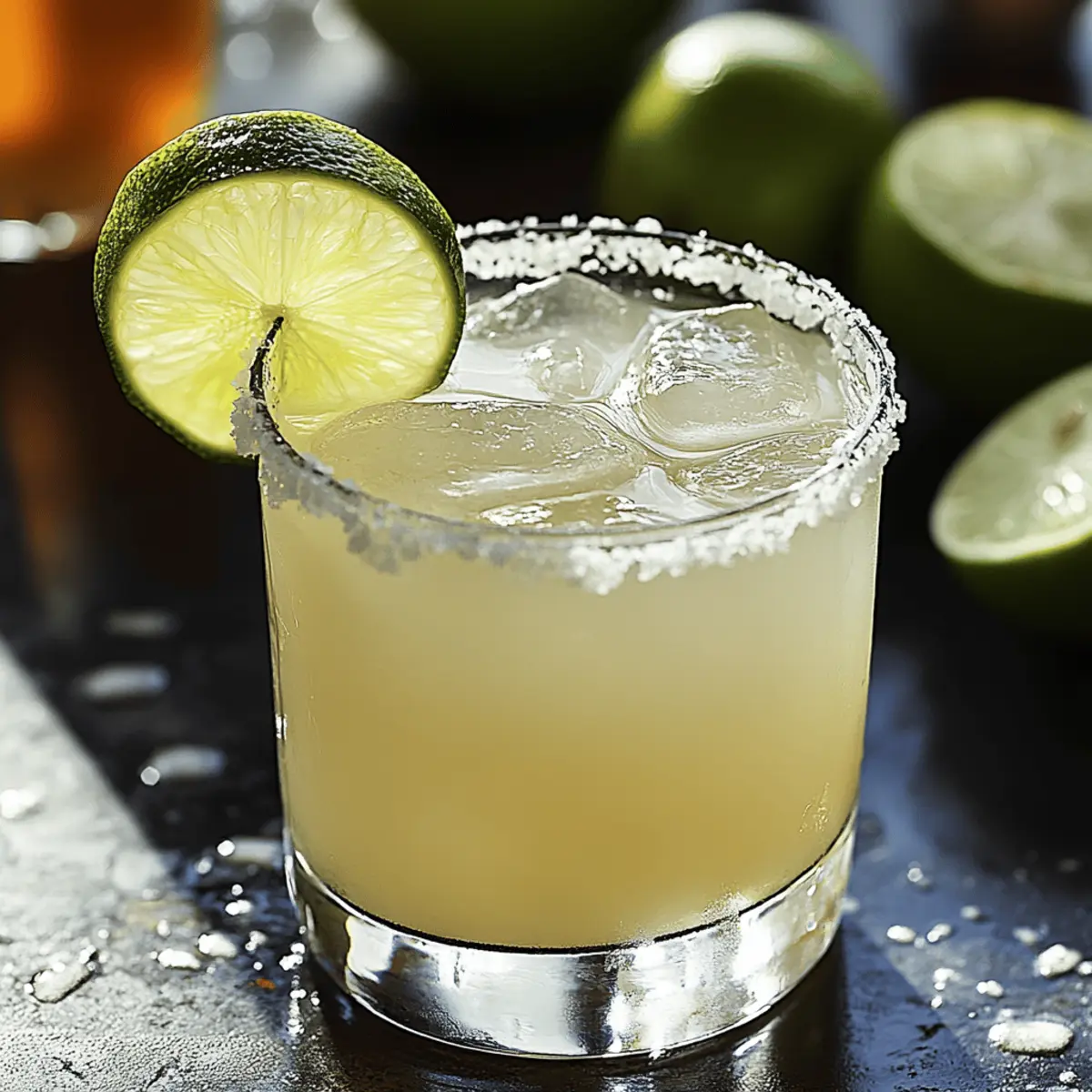 As I took a sip of my Classic Margarita, the vibrant tang of fresh lime and the smoothness of top-shelf tequila instantly transported me to a sun-soaked terrace in Mexico. This glorious cocktail—gluten-free and easy to whip up in just five minutes—harmonizes zesty flavors with just the right hint of sweetness, making it perfect for everything from casual weeknight relaxation to lively celebrations. The simple combination of ingredients—fresh lime juice, orange liqueur, and a hint of salt—highlights how little effort is needed for maximum enjoyment. Trust me, your taste buds will thank you! Curious about how to make this refreshing delight perfectly? Let’s dive into the details! Why is this Margarita recipe a must-try? Simplicity at Its Best: This Classic Margarita can be made in just five minutes with only a few ingredients, making it an easy choice for anyone who loves homemade cocktails. Fresh Ingredients: The use of fresh lime juice and quality tequila elevates the flavor, ensuring every sip is vibrant and refreshing. Versatile Twist: Feel free to customize; add fruits or herbs to give it your unique spin, just like my flavored variations. Perfect for Gatherings: Whether it’s a casual evening or a festive celebration, this margarita is sure to impress your guests and keep the party lively! Gluten-Free Goodness: Serving a gluten-free cocktail means everyone can enjoy this classic drink without worry. Best Margarita Ingredients • The key to crafting a refreshing Margarita lies in quality ingredients and a simple method. For the Cocktail Tequila Blanco – This base spirit gives depth and kick; always use 100% agave for authentic flavor. Fresh Lime Juice – Essential for acidity and brightness; freshly squeezed is much better than bottled for optimal taste. Orange Liqueur – Adds a hint of sweetness and citrus; popular choices include Cointreau or triple sec. Simple Syrup – Balances the tartness of lime; adjust the amount to achieve your desired sweetness. For the Rim Coarse Salt – Ideal for rimming the glass; it enhances the flavors with every sip and adds a delightful crunch. For Garnish Fresh Lime Wedge/Wheel – Complements the drink perfectly by adding aroma and an appealing visual touch. Step‑by‑Step Instructions for Classic Margarita Step 1: Prepare the Glass Start by prepping your serving glass for the Classic Margarita. Take a fresh lime wedge and run it along the rim of the glass to moisten it. Then, dip the rim into coarse salt, twisting gently to ensure a nice, even coating. This salted edge will enhance the flavors of your delightful cocktail, creating a perfect balance with each sip. Step 2: Mix the Cocktail In a cocktail shaker, combine 2 ounces of tequila, 1 ounce of freshly squeezed lime juice, 1 ounce of orange liqueur, and ½ ounce of simple syrup. Fill the shaker with ice, allowing the cold to enhance the flavors nicely. Make sure all the ingredients are mixed well—this is where the vibrant profile of the Classic Margarita begins to come together. Step 3: Shake Seal the cocktail shaker tightly and shake vigorously for about 15 seconds. You want to feel the shaker getting frosty, as this means your ingredients are mixing and chilling perfectly. The goal here is to achieve a refreshing, well-blended margarita that is ice-cold and invigorating. Step 4: Strain Once shaken, open the shaker and place a strainer on top. Pour the chilled margarita mixture into your prepared glass filled with fresh ice. Use a fine mesh strainer if you prefer to catch any pulp from the lime juice for a smoother sip. This pouring step showcases the delightful color of your Classic Margarita. Step 5: Garnish To finish off your Classic Margarita, take a fresh lime wheel and place it on the rim of the glass or drop it gently into the drink for added aroma. For a creative touch, consider adding a sprig of mint or a slice of jalapeño if you’re feeling adventurous. This garnish not only enhances the visual appeal but also complements the refreshing cocktail beautifully. Make Ahead Options These Classic Margaritas are perfect for preparing in advance, making them a fantastic choice for busy evenings or entertaining. You can mix the margarita components—2 oz tequila, 1 oz lime juice, 1 oz orange liqueur, and ½ oz simple syrup—up to 24 hours ahead of time and store them in the refrigerator. To maintain freshness and prevent dilution, keep the salt rim separate until you’re ready to serve. When it’s time to enjoy, simply shake the chilled mixture with ice, strain it into your salted glass, and garnish with a lime wedge. This way, you can savor the refreshing flavors of your Classic Margarita with minimal effort! How to Store and Freeze Margarita Fridge: Keep your prepared Margarita mix in a sealed container in the refrigerator for up to 24 hours. Add ice only right before serving to retain its refreshing quality. Freezer: If you want to make a large batch, pour the Margarita mix into ice cube trays and freeze. These can be blended later for a slushy treat or used to chill fresh mixes. Reheating: Since Margarita is best served cold, simply blend the frozen cubes with a splash of fresh lime juice and tequila for a quick drink. Room Temperature: If you have made the Margarita mix and need to set it out for a short time, ensure it does not sit out longer than 2 hours to maintain freshness. Expert Tips for the Best Margarita Quality Matters: Always opt for 100% agave tequila and freshly squeezed lime juice to ensure your Margarita has the best flavor profile. Rim Responsibly: Avoid oversalting the rim; a light, even coating of coarse salt enhances the drink without overpowering it. Sweetness Balance: Start with ½ oz of simple syrup, then adjust to your taste; it’s easier to add sugar than to remove it. Chill Your Glass: For an extra refreshing experience, chill your glass ahead of time in the freezer—this keeps your Margarita colder for longer! Make Ahead: You can pre