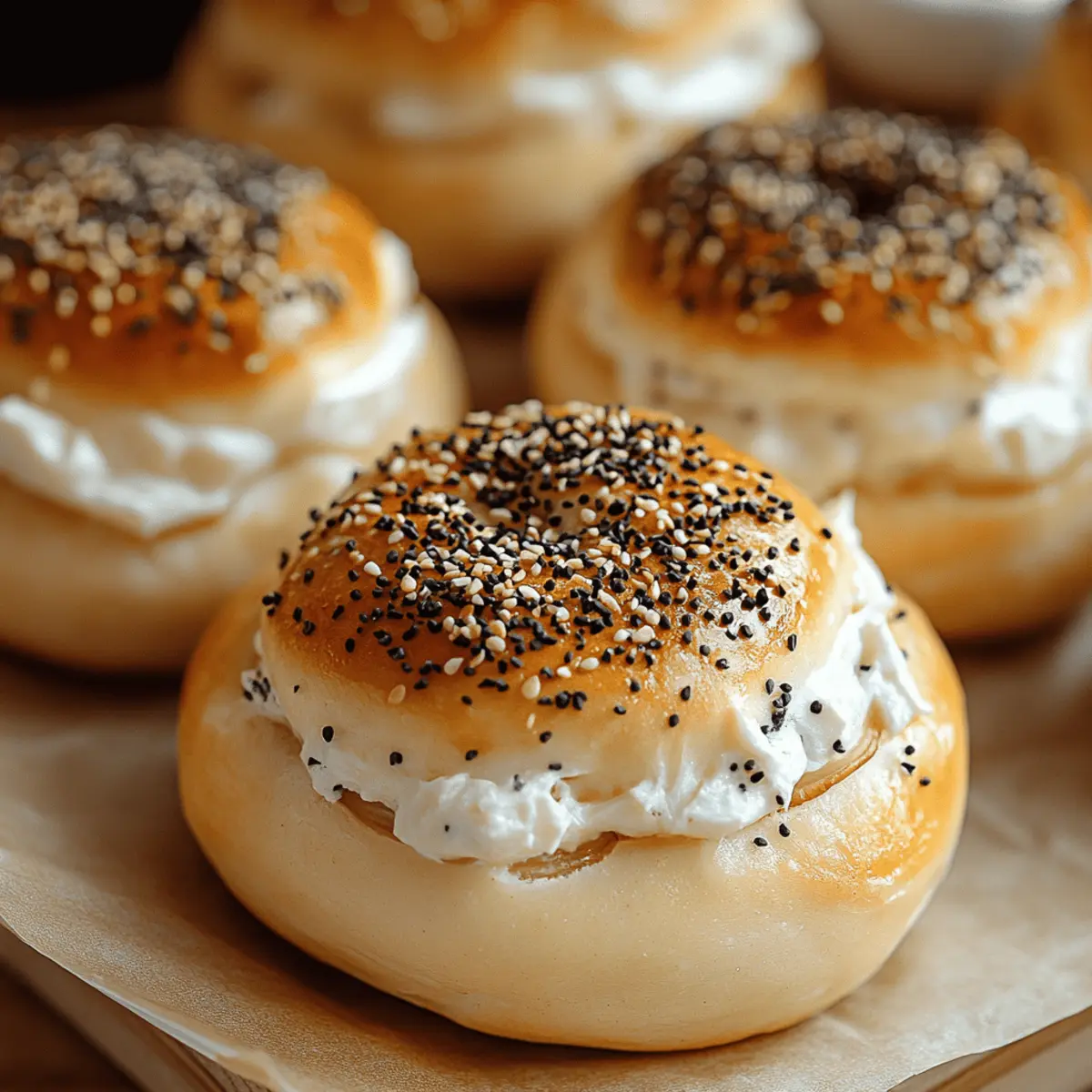 As the warm aroma of freshly baked bagels drifts through my kitchen, I can’t help but feel a little spark of joy. These stuffed bagels are nothing short of transformative, taking your typical breakfast or snack and turning it into a personalized culinary adventure. With endless filling options, from savory herbs to sweet spreads, this recipe invites creativity while being incredibly quick and straightforward. Whether you’re accommodating a busy morning routine or planning a leisurely brunch with friends, these stuffed bagels are bound to impress. Plus, they’re easily adaptable to fit dietary preferences, making them a versatile choice for everyone at the table. Are you ready to dive into these delightful little pockets of bliss? Let’s get cooking! Why Are Stuffed Bagels So Special? Endless possibilities await! These stuffed bagels are not just breakfast—they’re a customizable culinary canvas. Easy to prepare, they can be made gluten-free or vegetarian with simple swaps. Irresistible flavors abound, from creamy herb blends to sweet nut butters, catering to every palate. Perfectly chewy with a crispy outer crust, they provide a satisfying texture. Impressive yet simple, they’re great for gatherings or quick meals, making them a loved choice for any home cook. Have you checked out our expert tips for perfect bagels to elevate your baking game? Stuffed Bagels Ingredients For the Bagels • Bagels – The heart of the dish; choose plain, sesame, or whole wheat for a yummy base. For the Filling • Cream Cheese – Provides creaminess and binds ingredients; swap for vegan cheese for a dairy-free treat. • Fresh Herbs – (e.g., chives, dill) – Elevate flavor and freshness; fresh herbs also brighten up the presentation. • Vegetables – (e.g., chopped peppers, spinach) – Add a pop of nutrition and color; these fresh ingredients enhance texture and flavor. • Proteins – (e.g., cooked bacon, smoked salmon) – Boosts heartiness and flavor; tailor your choice to fit dietary needs. For Garnishing • Olive Oil – Drizzled on top for added flavor; a touch of good quality oil elevates the dish. • Seasoning – (e.g., salt, pepper) – Brightens up the bagels; adjust to taste and enjoy the customizability of your stuffed bagels. Feel the joy of creating stuffed bagels that cater to all tastes with this delightful ingredient layout! Step‑by‑Step Instructions for Stuffed Bagels Step 1: Slice the Bagels Begin by preheating your oven to 350°F (175°C) if you plan to bake them later. Using a sharp knife, carefully slice each bagel horizontally to create a pocket—this allows plenty of room for filling. If you prefer an extra crunch, lightly toast the bagels for about 2-3 minutes. This initial step sets the stage for deliciously stuffed bagels. Step 2: Prepare the Filling Mixture In a medium mixing bowl, combine softened cream cheese with your choice of fresh herbs like chives or dill. Stir in any additional ingredients you desire—chopped vegetables or proteins like cooked bacon or smoked salmon work wonderfully. Mix until everything is well incorporated and smooth. The filling for your stuffed bagels should be both flavorful and easy to scoop. Step 3: Fill the Bagels Generously spoon the cream cheese mixture into the pocket of each bagel, ensuring it’s packed but not overflowing. A spoon or small spatula will help spread the filling evenly. Aim for a neat presentation, making sure every bagel is filled to the brim. This step is essential for achieving those indulgent stuffed bagels packed with flavor. Step 4: Bake the Stuffed Bagels Place your filled bagels on a baking sheet lined with parchment paper. Bake in the preheated oven for about 10-15 minutes, or until the bagels are warm and the filling is slightly melted. Keep an eye out for a light golden hue on the bagels’ edges to ensure they are perfectly baked and ooze deliciousness. Step 5: Garnish and Serve Once out of the oven, let the stuffed bagels cool for a minute before garnishing. Drizzle with olive oil and sprinkle with additional herbs or your favorite seasoning for an extra touch of flavor. Slice the bagels into halves or quarters for easier sharing, presenting them as a delightful treat for breakfast or snacks. Make Ahead Options These stuffed bagels are a fantastic option for meal prep, allowing you to enjoy deliciousness even on the busiest mornings! You can prepare the filling up to 24 hours in advance—simply mix the cream cheese, herbs, and other ingredients, then store it in an airtight container in the fridge to maintain freshness. Additionally, you can slice and fill the bagels up to 3 days ahead; just be sure to wrap them tightly in plastic wrap to prevent drying out. When you’re ready to serve, bake the stuffed bagels at 350°F (175°C) for about 10-15 minutes until warm and gooey. This way, you’ll have tasty, freshly baked treats on hand with minimal effort! What to Serve with Irresistible Stuffed Bagels Whether basking in the warm aroma of your freshly baked stuffed bagels or sharing delightful bites with loved ones, these scrumptious treats call for delightful accompaniments to create a memorable meal. Mixed Green Salad: A crisp salad with seasonal greens adds a refreshing contrast, balancing the richness of the bagels beautifully. Toss in some cherry tomatoes and a light vinaigrette for a pop of color. Classic Tomato Soup: This comforting classic pairs perfectly with stuffed bagels, allowing for delightful dunking! The warm, velvety texture complements the chewy bagels, making each bite heartier. Crispy Sweet Potato Fries: The sweetness of baked sweet potato fries adds a lovely contrast to the savory flavors of the bagels, creating a satisfying combination of textures. Spicy Avocado Toast: Drizzling a little sriracha on smashed avocado atop crunchy toast can ignite your taste buds! The creaminess of avocado complements the bagels and provides an exciting flavor twist. Fruit Salad: A med