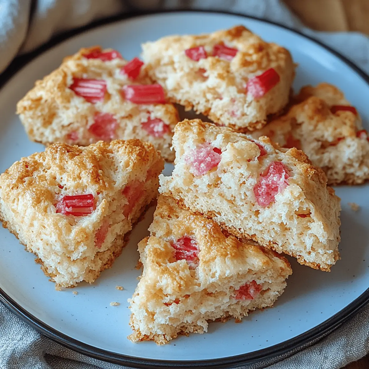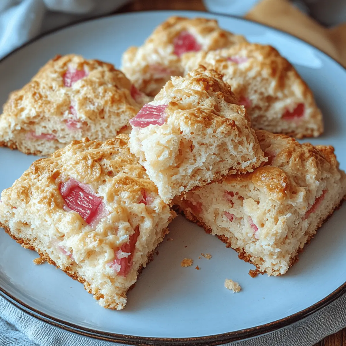As I sifted through a basket of fresh rhubarb, the vibrant pink stalks sparked an irresistible idea—a batch of Rhubarb Scones. This tangy breakfast treat embodies the refreshing spirit of spring, making it the perfect pick-me-up when you want something more than mundane toast. Combining the natural tartness of rhubarb with a buttery, flaky texture, these scones have quickly become a cherished staple in my kitchen. With a quick prep time that allows you to whip up bakery-quality scones at home, they’re a perfect solution for brunch gatherings or a cozy Saturday morning. Plus, they’re vegetarian-friendly, so everyone can indulge in their delightful flavor. Who’s ready to dive into this simple yet rewarding recipe that’ll have your taste buds dancing? Why Are Rhubarb Scones So Special? Fresh Flavor: The tangy sweetness of rhubarb perfectly balances with the buttery scone, creating a delightful burst of flavor in every bite. Quick and Easy: With just a few simple steps, you can enjoy homemade scones in around 30 minutes—perfect for a spontaneous breakfast treat. Endless Variations: These scones are highly adaptable! Swap rhubarb for other fruits or add spices like cinnamon for a cozy twist. Crowd-Pleaser: Whether it’s a brunch party or a family breakfast, these scones are sure to impress and satisfy everyone at the table. Baking Made Fun: Baking these Rhubarb Scones is not only easy but also an enjoyable way to fill your home with warm, inviting aromas. If you’re curious about more scone variations, don’t hesitate to peek at our other easy scone recipes. Rhubarb Scone Ingredients Dive into the delightful world of baking with these Rhubarb Scones! For the Scones All-Purpose Flour – Forms the structural base; opt for gluten-free flour for a dietary switch. Baking Powder – A crucial leavening agent; ensure it’s fresh for the best rise! Sugar – Balances rhubarb’s tartness; brown sugar offers a deeper flavor enhancement. Cold Unsalted Butter – Adds flakiness and richness; plant-based butter works for a vegan twist. Fresh Rhubarb – Provides a refreshing, tangy flavor; feel free to substitute with strawberries if needed. Heavy Cream – Infuses moisture; consider buttermilk for a delightful tang. Vanilla Extract – Enhances flavor depth; can be omitted if you prefer a simpler taste. Egg Wash (optional) – Gives a lovely golden finish; substitute with milk or plant-based milk for a vegan option. With just a few simple ingredients, you’re on your way to baking scrumptious Rhubarb Scones that everyone will adore! Step‑by‑Step Instructions for Rhubarb Scones Step 1: Preheat the Oven Begin by preheating your oven to 400°F (200°C). This temperature is crucial for achieving that perfect golden-brown crust on your Rhubarb Scones. While the oven heats up, take a moment to gather all your ingredients and line a baking tray with parchment paper, ensuring a non-stick surface for your baked delights. Step 2: Prepare the Rhubarb Wash the fresh rhubarb thoroughly and finely chop it into small pieces, roughly the size of a pea. This helps the rhubarb distribute evenly throughout the scone batter, creating a delightful burst of tangy flavor in every bite. Set aside the chopped rhubarb, and let its vibrant color inspire your baking journey. Step 3: Mix Dry Ingredients In a large mixing bowl, whisk together the all-purpose flour, baking powder, and sugar until well combined. This blending creates a light and airy mixture, essential for the fluffy texture of your Rhubarb Scones. Take a moment to appreciate the clean, fresh scent of the dry ingredients as they come together. Step 4: Incorporate the Butter Now, take the cold unsalted butter straight from the fridge and cut it into the flour mixture using a pastry cutter or two forks. You want the mixture to resemble coarse crumbs with some small lumps remaining, which will contribute to the flakiness of the scones. This step is key to ensuring your scones rise beautifully in the oven. Step 5: Fold in the Rhubarb Gently fold the chopped rhubarb into the flour-butter mixture using a spatula or wooden spoon. Be careful not to overmix; you want to maintain the integrity of the rhubarb and keep the mixture light. Once combined, you’ll notice the bright pink pieces of rhubarb standing out, ready to add their tangy flavor to your scones. Step 6: Combine Wet Ingredients In a separate bowl, whisk together the heavy cream and vanilla extract until smooth. This mixture will enrich your scone dough. Pour this creamy blend into the flour-rhubarb mixture, stirring gently until the dough comes together. The goal is a slightly sticky dough that will yield tender, moist Rhubarb Scones. Step 7: Shape the Dough Turn the dough out onto a lightly floured surface. Use your hands to gently shape it into a 1-inch thick disk. Avoid overworking the dough, as this can lead to tough scones. Once shaped, place the disk in the fridge for about 10-15 minutes to chill, which will help keep the butter cold for that perfect flakiness. Step 8: Cut and Prepare for Baking After chilling, remove the dough from the fridge and cut it into wedges, like a pizza. Arrange the wedges on your prepared baking tray, leaving space between each scone for them to expand. If desired, brush the tops with an egg wash for a beautiful golden finish, or use milk for a vegan option. Step 9: Bake the Scones Place the tray in the preheated oven and bake the Rhubarb Scones for 15-18 minutes or until they are golden brown and have risen beautifully. You’ll know they’re ready when the tops are lightly golden and a toothpick inserted in the center comes out clean. The mouthwatering aroma will fill your kitchen! Step 10: Cool and Serve Once baked, remove the scones from the oven and allow them to cool slightly on the tray. Serve warm, dusted with powdered sugar or enjoyed with a dollop of clotted cream for an extra treat. These Rhubarb Scones are perfect for sharing or savoring on your 
