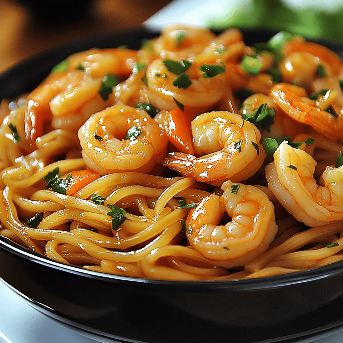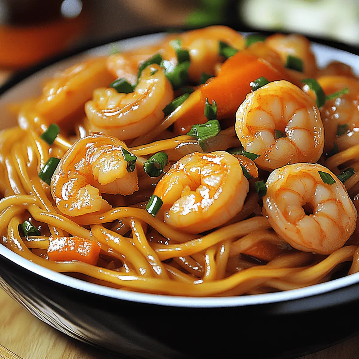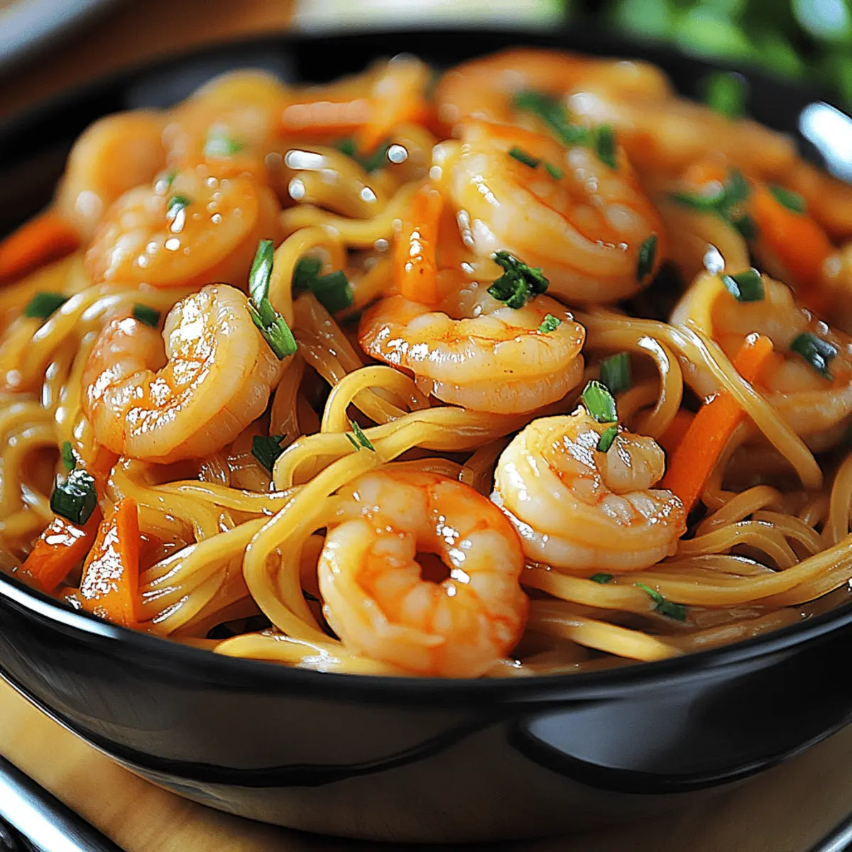 The faint aroma of sizzling garlic and ginger takes me back to bustling streets filled with tantalizing food stalls, each promising a dish more delicious than the last. Today, I’m excited to share my Quick Instant Pot Shrimp Lo Mein with you, a vibrant recipe bursting with tender shrimp, soft noodles, and crisp veggies, all enveloped in a savory sauce. This dish isn’t just quick; it’s also incredibly satisfying, delivering restaurant-quality flavors in under 30 minutes—perfect for those busy weeknights when you crave something homemade. Plus, you can easily adapt it to fit your dietary needs, making it gluten-free with just a few simple substitutions. So why not brighten up your dinner routine with this delightful dish? What flavors or ingredients will you add to make it your own? Why is Shrimp Lo Mein So Loved? Flavorful and versatile, this Instant Pot Shrimp Lo Mein is a delightful take on a timeless classic. Ready in under 30 minutes, it’s a lifesaver for those hectic weeknights. Nutritious veggies mingle beautifully with tender shrimp and chewy noodles, making each bite satisfying. Easily customizable, feel free to swap in your favorite ingredients or make it gluten-free as needed. Plus, crowd-pleaser status means everyone at the table will be asking for seconds! Be sure to explore ideas for enhancing or serving this dish in ways that make it uniquely yours. Shrimp Lo Mein Ingredients For the Noodles • Noodles – Use traditional egg noodles or spaghetti for a familiar taste, or choose gluten-free options to keep it adaptable. For the Shrimp • Shrimp – Opt for peeled, deveined shrimp for quick preparation; frozen shrimp works too, just remember to thaw and drain. For the Vegetables • Bell Peppers – Add vibrant color and sweetness; feel free to substitute with seasonal vegetables you have on hand. • Broccoli – Brings a crunchy texture and is packed with nutrients; fresh is best, but frozen can work in a pinch. • Carrots – Sweet and crunchy, thinly sliced for quick cooking; try swapping with snow peas for a different crunch. For the Sauce • Soy Sauce – Infuses the dish with umami flavor; use gluten-free tamari if you’re watching for gluten. • Sesame Oil – Adds a rich, nutty essence to the dish; if unavailable, a light olive oil can serve as a substitute. For the Aromatics • Minced Garlic – Freshly minced for the best aroma; avoid garlic powder for a more robust flavor. • Grated Ginger – Enhances the dish with its fresh zing; always use fresh ginger for optimal taste. For Cooking Liquid • Vegetable Broth – Imparts a deep flavor to the noodles; can be swapped with water, but broth enriches your dish greatly. For Garnishing • Green Onions – Chopped for crunch and a fresh taste, adding color just before serving. • Sesame Seeds – Sprinkled for a lovely finish and added nutty flavor; consider using toasted sesame seeds for an extra depth of flavor. This vibrant Shrimp Lo Mein is a bowl of comfort that encourages creativity while staying true to its roots! Step‑by‑Step Instructions for Quick Instant Pot Shrimp Lo Mein Step 1: Prepare Ingredients Start by washing and chopping your bell peppers, broccoli, and carrots into bite-sized pieces. In the meantime, ensure your shrimp is peeled and deveined, ready for the pot. Prepare your noodles by soaking them if needed, as this will help them cook evenly through the Instant Pot for your delicious Shrimp Lo Mein. Step 2: Sauté Aromatics Set your Instant Pot to the “Sauté” function and add a generous drizzle of sesame oil. As the oil heats up, add minced garlic and grated ginger, stirring frequently for about 1-2 minutes until fragrant and golden. This aromatic base sets the stage for your flavorful Quick Instant Pot Shrimp Lo Mein. Step 3: Add Vegetables and Broth Once your aromatics are ready, toss in the chopped bell peppers, broccoli, and carrots. Stir them well to combine, allowing them to sauté for another 2-3 minutes. Afterward, pour in the vegetable broth over the veggies, ensuring everything is well coated, which will serve as the cooking liquid for those tasty noodles. Step 4: Layer Noodles Carefully place your soaked noodles on top of the vegetable and broth mixture without stirring. This layering helps the noodles cook uniformly while absorbing all those wonderful flavors. Securely seal the Instant Pot lid and set it to cook on “Manual” for 3-4 minutes, allowing the magic of pressure cooking to happen. Step 5: Release Pressure When the cooking time is complete, perform a quick release by turning the valve to venting. Stand clear from the steam as it releases, ensuring to do this safely. You’ll know it’s ready when the steam has diminished, and you can safely open the lid, revealing perfectly cooked noodles and veggies for your Shrimp Lo Mein. Step 6: Add Shrimp and Sauce Gently layer the raw shrimp over the noodle mixture, then drizzle soy sauce atop. Select the “Sauté” function again and cook for another 2-3 minutes, stirring occasionally until the shrimp turn opaque and curl, indicating they are fully cooked. This step enhances the flavor while ensuring everything melds beautifully in your Shrimp Lo Mein. Step 7: Toss and Serve Once the shrimp is perfectly cooked, use tongs or a spatula to gently toss the noodles, veggies, and shrimp together until well combined. Garnish with a generous sprinkle of chopped green onions and sesame seeds before serving. This colorful dish is now ready to be enjoyed—delight in every satisfying bite of your Quick Instant Pot Shrimp Lo Mein! Shrimp Lo Mein Variations & Substitutions Feel free to let your creativity flow and transform this dish with your personal touch! Vegetarian Swap: Replace shrimp with tofu, using firm, cubed tofu for a satisfying plant-based option. Extra Veggies: Boost nutrition and color by adding snap peas or bok choy; they provide an excellent crunch and flavor contrast. Gluten-Free Choice: Use gluten-