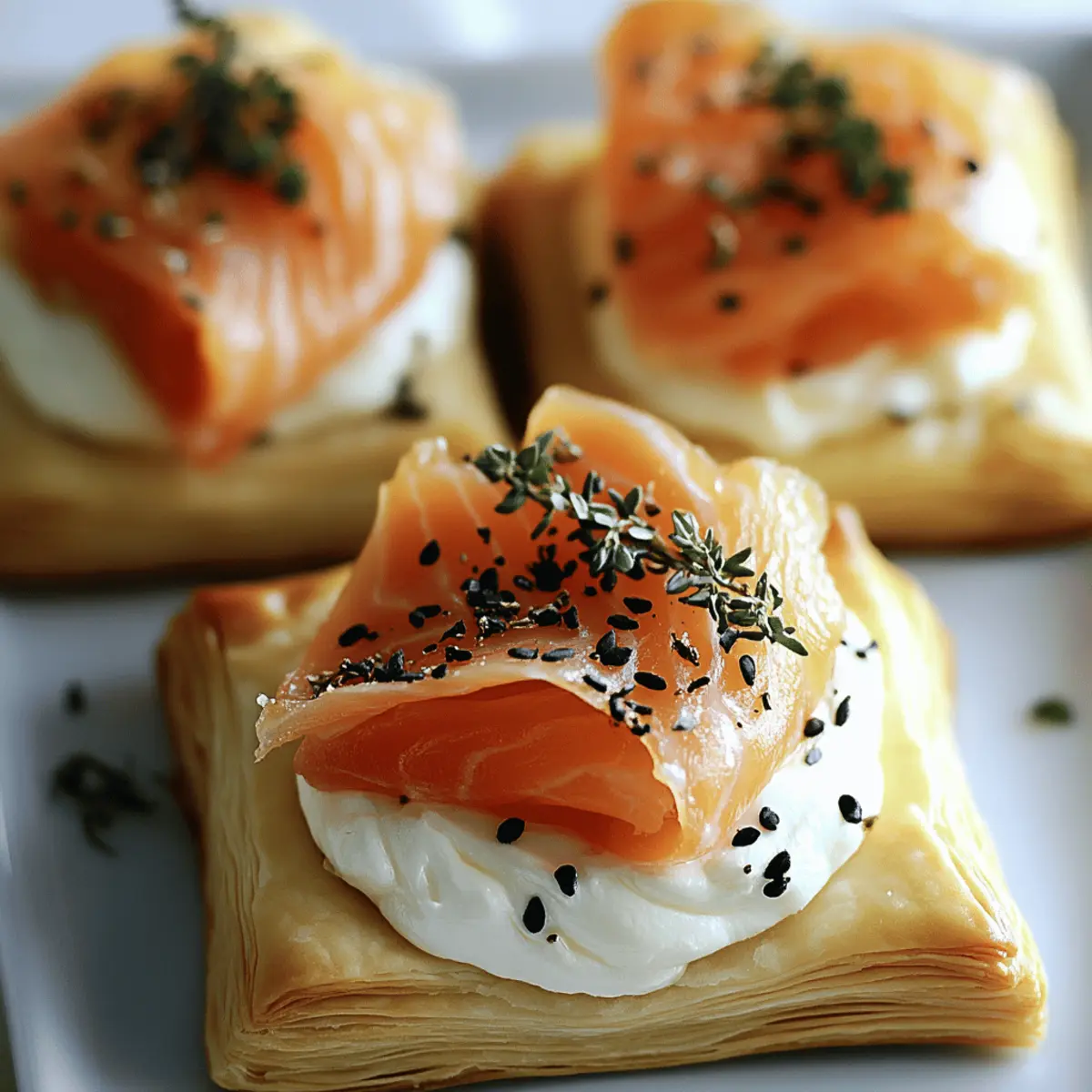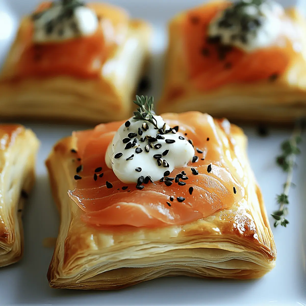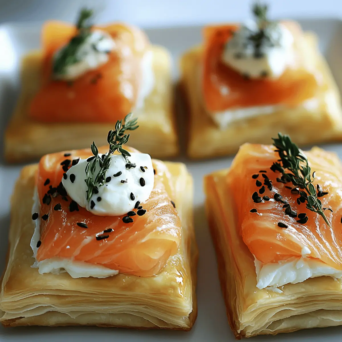 In the bustling kitchen, I suddenly found myself craving a blend of elegance and comfort—something to elevate a simple gathering into a memorable feast. That’s when I decided to whip up this Smoked Salmon & Goat Cheese Puff Pastry Delight. Wrapped in golden, flaky pastry, the richly flavored smoked salmon harmonizes beautifully with the creamy, tangy goat cheese, creating an appetizer that is both sophisticated and satisfying. Best of all, it comes together quickly, making it a fantastic choice for spontaneous get-togethers or a cozy night in. Plus, with the option for gluten-free pastry, everyone can enjoy this culinary gem. Could you imagine impressing your guests with such a delightful creation? Let’s dive into the details! Why is this puff pastry a must-try? Elevated flavors: The luxurious combination of smoked salmon and goat cheese creates an appetizer bursting with richness, perfect for impressing guests at any gathering. Simplicity at its core: You don’t need culinary expertise to pull this off! With just a few ingredients and easy steps, you can serve a restaurant-quality dish in no time. Versatile options: Feel free to substitute with cream cheese or add fresh herbs for a personal touch. It’s adaptable for dietary needs with a gluten-free option available, making it truly inclusive! Quick and satisfying: Whether it’s a last-minute gathering or a special occasion, this dish cooks up perfectly in under 20 minutes. Say goodbye to fast food and embrace gourmet! Crowd pleaser: With its beautiful presentation and delightful flavors, everyone will be reaching for seconds. Serve this dish alongside a crisp salad or crème fraîche for an upscale flair that complements the ensemble! Smoked Salmon & Goat Cheese Puff Pastry Ingredients For the Puff Pastry • Puff Pastry – Choose store-bought or homemade; ensure it’s thawed but cold for easy handling. For the Filling • Goat Cheese – This creamy base layer adds tanginess; substitute with cream cheese for a milder flavor. • Smoked Salmon – Adds richness and a smoky flavor; fresh or thawed is best, avoid frozen. • Fresh Herbs (Dill/Chives) – Infuse aromatic notes and freshness; opt for your favorite herbs or leave out for simplicity. • Lemon Zest – Provides brightness; you can also squeeze in a bit of fresh lemon juice for a zesty kick. For the Egg Wash • Egg – Creates a glossy finish when baked; milk can be used as an alternative for a lighter glaze. Step‑by‑Step Instructions for Smoked Salmon & Goat Cheese Puff Pastry Step 1: Prepare Puff Pastry Begin by thawing your puff pastry according to package instructions, ensuring it’s cold but pliable for easy handling. Lightly flour your work surface and roll out the pastry to a thickness of about ¼ inch, creating a rectangle. This flakiness will provide the perfect base for the Smoked Salmon & Goat Cheese Puff Pastry. Step 2: Make Cheese Mixture In a mixing bowl, soften the goat cheese using a fork, making it creamy and easy to spread. Add in your chopped fresh herbs and lemon zest, blending well to combine the flavors. This mixture will create a tangy and aromatic filling that complements the smoked salmon beautifully, making your appetizer both rich and refreshing. Step 3: Assemble Spread the cheese mixture evenly over the rolled-out pastry, leaving a small border around the edges. Carefully layer the smoked salmon on top of the cheese, ensuring to cover the surface fully for that rich, smoky flavor in every bite. Once layered, fold or roll the pastry to enclose the filling securely, creating an elegant, pocket-like shape. Step 4: Seal and Brush Using your fingers, press the edges of the pastry together firmly to seal in the delicious filling. For a golden finish, brush the top and edges with a beaten egg to create a beautiful glaze while baking. This step ensures that your Smoked Salmon & Goat Cheese Puff Pastry will have a stunning, shiny exterior. Step 5: Bake Preheat your oven to 400°F (200°C) while you finish preparing the pastry. Once heated, place your assembled pastry on a parchment-lined baking sheet and bake for 15-20 minutes. Look for a golden-brown color and an inviting puffiness, indicating that it’s ready to be taken out and enjoyed as a delightful treat. Step 6: Garnish and Serve Once baked to perfection, remove the Smoked Salmon & Goat Cheese Puff Pastry from the oven and let it cool slightly. Garnish with additional fresh herbs and serve alongside lemon wedges for a sharp kick. Pair it beautifully with a light salad or crème fraîche for an upscale touch that enhances the overall dining experience. Smoked Salmon & Goat Cheese Puff Pastry Variations Feel free to explore delightful twists and alternatives to make this recipe uniquely yours! Creamy Alternative: Substitute goat cheese with herbed cream cheese for a smoother, milder filling that’s just as indulgent. Green Goodness: Add a handful of sautéed spinach or fresh arugula to the filling for a nutritious burst of flavor and texture. Change the Fish: Swap out smoked salmon for smoked trout or even smoked mackerel to introduce exciting new flavor profiles. Herb Explosion: Incorporate fresh dill, basil, or chives into the cheese mixture for an aromatic kick that brightens each bite. Zesty Kick: Add a sprinkle of red pepper flakes or hot sauce to the filling to spice things up—perfect for heat lovers! Vegetarian Delight: For a meat-free option, replace the smoked salmon with roasted red peppers or marinated artichokes for a colorful twist. Nutty Crunch: Sprinkle some toasted pine nuts or chopped walnuts into the filling for an additional crunchy texture. Caramelized Sweetness: Introduce caramelized onions to the cheese mixture for a hint of sweetness that beautifully complements the smoky flavors. These variations not only enhance flavors but also cater to various dietary preferences. Enjoy the creative journey in the kitchen and savor your incredible puff pastry treat! What 