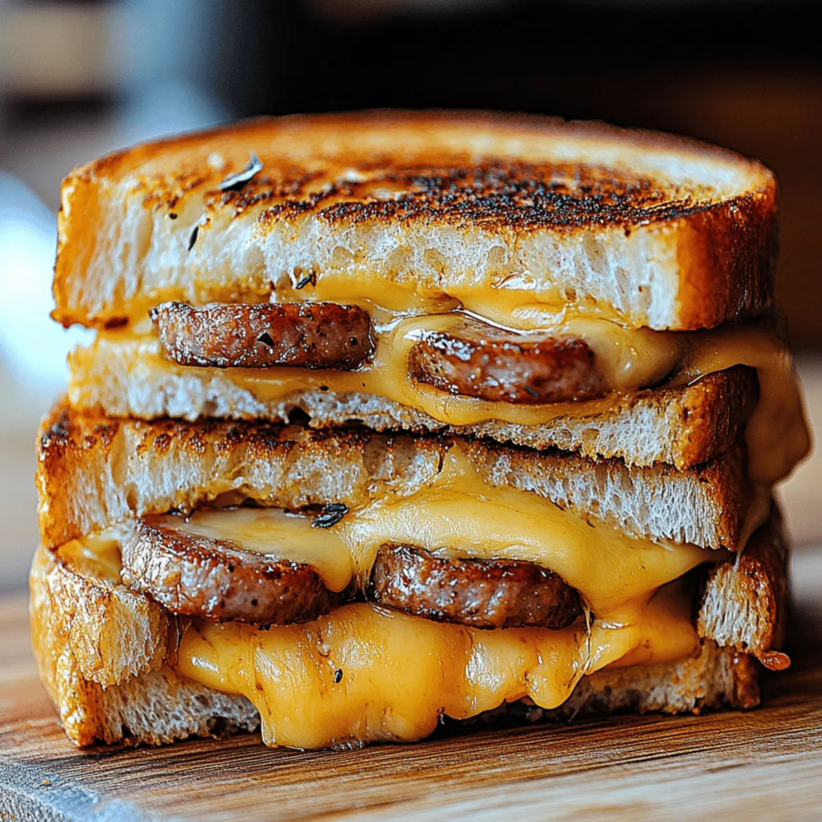 It’s amazing how a simple sandwich can become the highlight of your day. The Smoked Sausage Grilled Cheese is that kind of dish—a clever twist on the classic that offers savory satisfaction with every bite. With rich layers of smoked sausage nestled between gooey cheese and crispy bread, this indulgent yet quick recipe brings back the joy of homemade food, perfect for lunch, dinner, or a cozy snack. Plus, it’s super customizable: swap in your favorite types of cheese or even gluten-free bread if you’re watching your diet. Who knew comfort food could be so versatile? Are you ready to impress your taste buds with this gourmet delight? Why is This Grilled Cheese So Special? Ultimate Comfort Food: The Smoked Sausage Grilled Cheese elevates the classic with layers of smoky, rich flavors that leave you craving more. Easily Customizable: Mix and match your favorite cheeses or switch to gluten-free bread – this sandwich adapts to fit your palate or dietary needs perfectly. Quick and Satisfying: Ready in just minutes, it’s an ideal choice for busy weeknights or lazy weekends. Crowd-Pleasing Delight: Serve it up for family or friends, and watch as smiles spread with each gooey, cheesy bite! Perfect Pairing Options: Complement it with crispy pickles or tangy coleslaw for a delightful meal. Why not explore more serving suggestions to elevate your experience? This sandwich isn’t just food; it’s an experience that you won’t forget! Smoked Sausage Grilled Cheese Ingredients For the Sandwich Smoked Sausage – Adds a rich, savory flavor; substitute with kielbasa, andouille, or vegetarian sausage as desired. Bread – Forms the base of the sandwich; choose a gluten-free variety for a delicious Smoked Sausage Grilled Cheese option. Cheese – Provides creaminess and gooeyness; mix varieties like cheddar, mozzarella, or gouda for depth. Butter – Essential for grilling; enhances browning and flavor, so use generously for a crispy exterior. For Optional Garnish Fresh parsley – Adds color and freshness; a lovely touch to elevate your sandwich. Smoked paprika – Enhances presentation and provides a subtle warmth to the flavor profile. Step‑by‑Step Instructions for Smoked Sausage Grilled Cheese Step 1: Prepare Sausage Begin by slicing the smoked sausage into thin rounds, about ¼ inch thick. For an extra flavor kick, heat a skillet over medium heat and pan-fry the sausage slices for 3-4 minutes, turning until they are slightly browned. This step enhances the savory richness, ensuring that every bite of your Smoked Sausage Grilled Cheese is packed with flavor. Step 2: Assemble Sandwich Lay out two slices of your choice of bread on a clean surface. Generously butter one side of each slice, making sure to spread it all the way to the edges. On the unbuttered side of one slice, layer a handful of your favorite cheeses, followed by the sautéed sausage rounds. Top it off with another layer of cheese, then place the second slice of bread on top, buttered side facing outward. Step 3: Grill Sandwich Preheat a skillet over medium heat for optimal grilling. Carefully place the assembled sandwich in the skillet, pressing down gently with a spatula. Grill for about 3-4 minutes, or until the bottom is golden brown and crispy. Flip the sandwich carefully and continue grilling for another 3-4 minutes until the other side is equally golden and the cheese is melted and gooey. Step 4: Serve Once grilled to perfection, remove the Smoked Sausage Grilled Cheese from the skillet and let it rest for about a minute. This waiting period helps the cheese set slightly, making it easier to slice. For an appealing presentation, cut the sandwich diagonally and serve it warm, garnished with a sprinkle of chopped parsley or a dash of smoked paprika, if desired. Expert Tips for Smoked Sausage Grilled Cheese Perfect Heat: Keep your skillet on medium-low heat to avoid burning the bread while allowing the cheese ample time to melt perfectly. Choose Your Cheese: Mix and match cheese varieties for extra flavor depth, but ensure you pick melting cheeses like cheddar or mozzarella. Crispy Exterior: Don’t skimp on butter! Generously spreading it on your bread ensures a truly golden and crispy crust on your Smoked Sausage Grilled Cheese. Fun Shapes for Kids: For a creative twist, use cookie cutters to shape the sandwiches into fun designs, making them more enjoyable for little ones. Timely Rest: Let the sandwich sit for a minute after grilling. This helps the melted cheese settle, preventing a messy slice when you cut it. How to Store and Freeze Smoked Sausage Grilled Cheese Room Temperature: Enjoy your Smoked Sausage Grilled Cheese freshly made; it’s best served warm. If left out, consume within 2 hours to ensure food safety. Fridge: Store leftovers in an airtight container or wrap in foil for up to 2 days. Reheat in a skillet over low heat for that crispy texture. Freezer: For longer storage, individually wrap sandwiches in plastic wrap and then foil. Freeze for up to 1 month. Thaw in the fridge overnight before reheating. Reheating: Reheat in a skillet or oven to retain crispiness; about 5-7 minutes on medium heat should revive that delightful gooeyness and golden crust. What to Serve with Smoked Sausage Grilled Cheese Elevate your mealtime experience with satisfying sides that perfectly pair with this indulgent grilled cheese creation. Crispy Pickles: The tangy crunch of pickles cuts through the richness of the sandwich, bringing a refreshing contrast to each bite. Tangy Coleslaw: A cool and creamy coleslaw adds a delightful crunch and a hint of sweetness, balancing the smokiness beautifully. Fresh Garden Salad: Lighten your meal with a simple salad of mixed greens, cherry tomatoes, and a lemon vinaigrette for refreshing brightness. Sweet Potato Fries: The crispy sweetness of baked or fried sweet potato fries makes a hearty addition that complements the savory elements. Roasted Vegetables: Seasoned roasted veggies pro