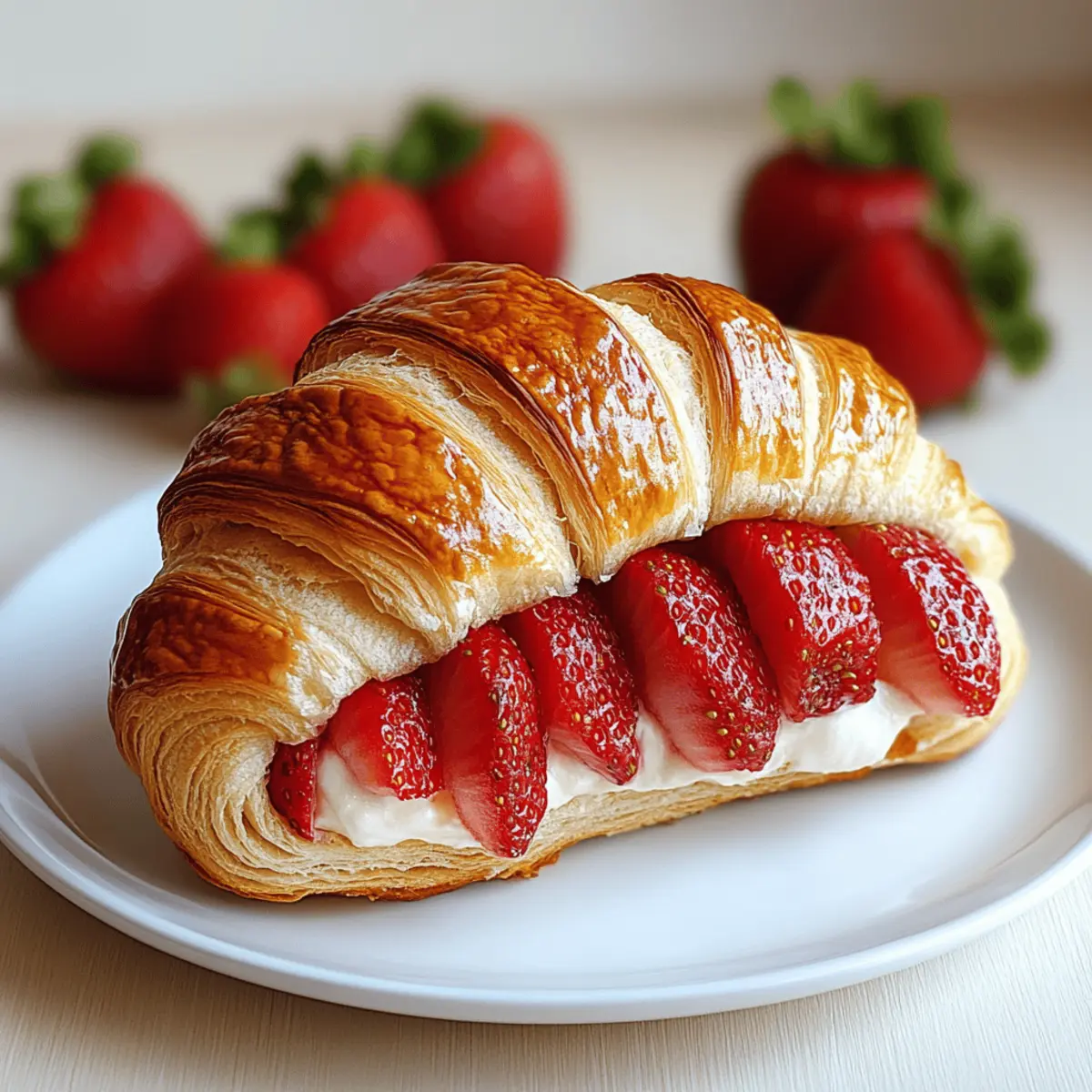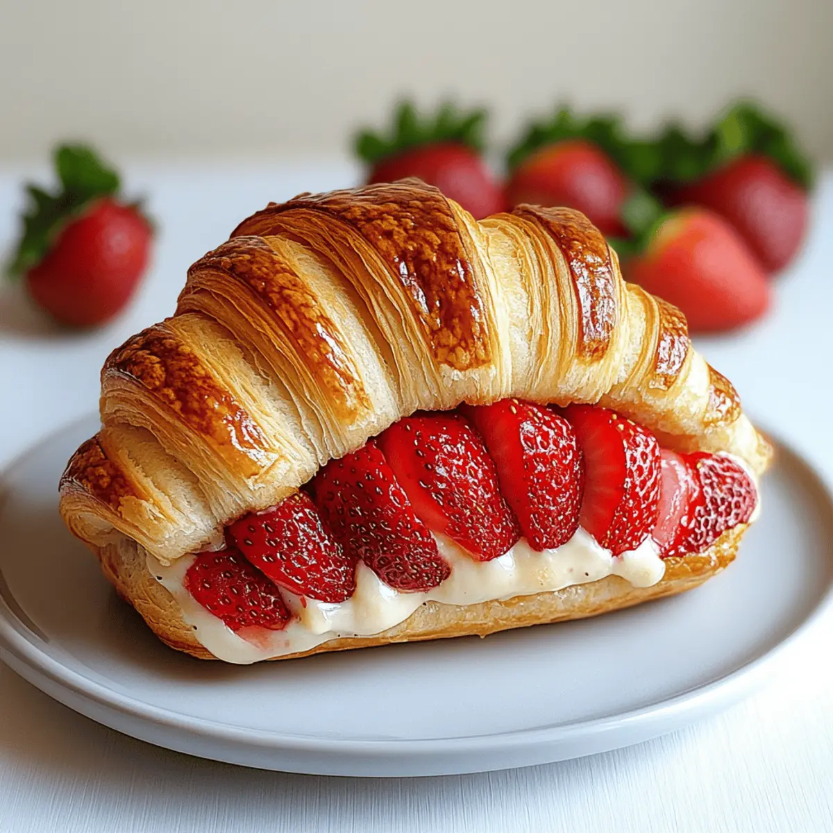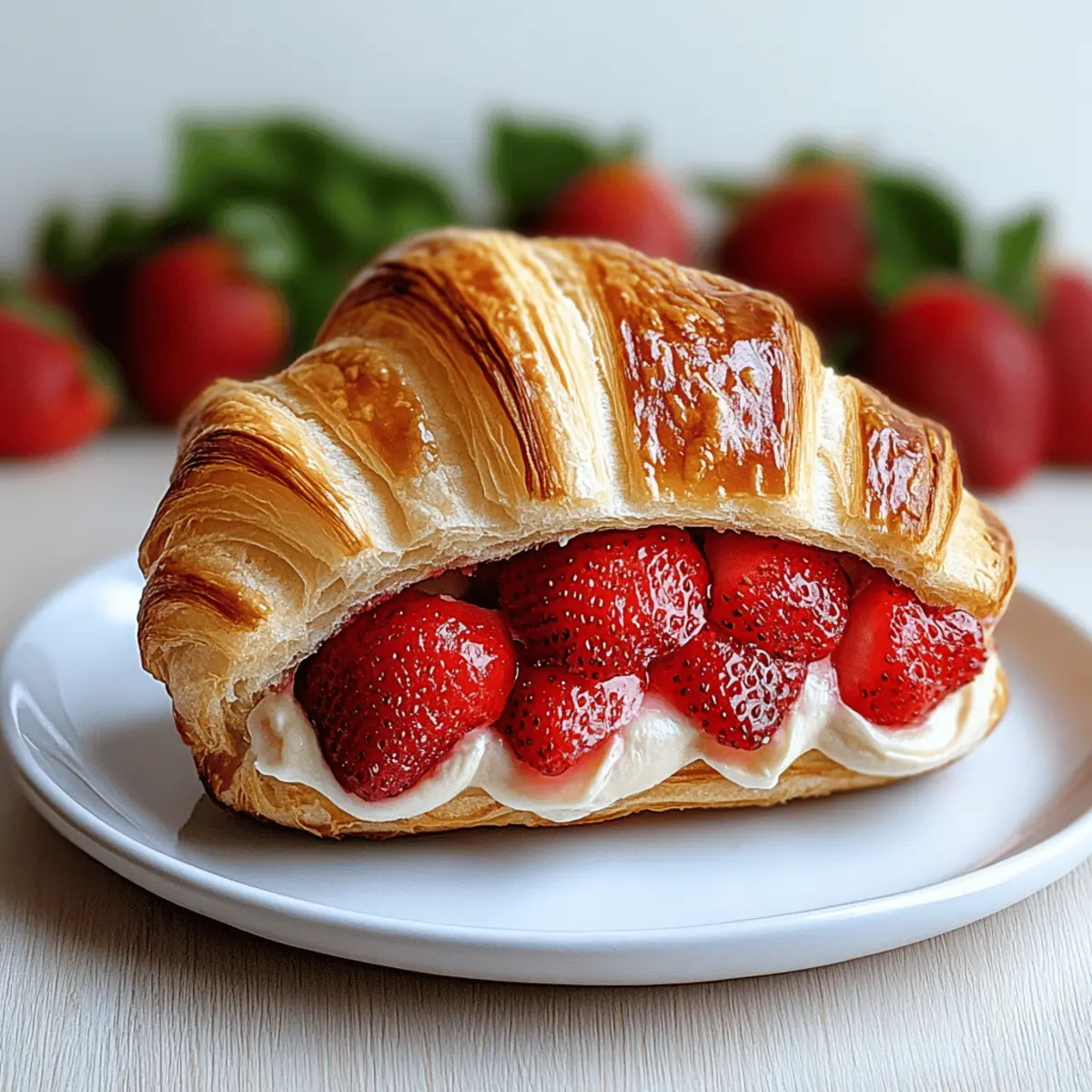 As I sunk my teeth into a warm, flaky croissant layered with juicy strawberries, I knew I had stumbled upon something truly special—the Easy Strawberry Croissant Sandwich. This delightful creation transforms your breakfast, brunch, or snack game, offering a quick, 15-minute escape from mundane meals. With its lightness and customizable nature, it’s perfect for those tired of fast food and craving a fresh, homemade touch. Whether you choose to stick with classic strawberries or mix it up with blueberries or peaches, this delectable sandwich invites you to get creative in the kitchen. Want to know how to whip up this tasty treat that’s bound to impress your friends and family? Let’s dive into this effortlessly elegant recipe! Why is this sandwich a must-try? Delightful Flavors: The harmony of buttery croissants and sweet, juicy strawberries creates a taste sensation that’s hard to resist. Quick Preparation: Ready in just 15 minutes, it’s the ultimate solution for busy mornings or spontaneous brunch plans. Customizable Fun: Feel free to swap in your favorite fruits or even use flavored cream cheeses for a personal touch. Crowd-Pleasing Appeal: Perfect for entertaining, whether it’s a light brunch or a snack platter for guests, this recipe is sure to impress. Healthy Twist: With easy vegetarian and vegan adaptations, you can enjoy this delicious treat without guilt. Elevate your breakfast game by serving it alongside a yogurt parfait or a vibrant mixed berry bowl! Strawberry Croissant Sandwich Ingredients For the Croissant Base • Croissants – Use fresh, flaky croissants for the perfect buttery texture; to enhance flavor, consider lightly toasting them. For the Filling • Strawberries – Fresh, ripe strawberries add sweetness and vibrancy; feel free to swap in blueberries or peaches for a tasty twist. • Cream Cheese – Adds a rich and creamy texture; dairy-free cream cheese works as a delicious vegan alternative. • Honey/Maple Syrup – Drizzle over the strawberries for extra sweetness; choose based on your personal preference for flavor. For the Fresh Twist • Fresh Mint/Basil (optional) – Gives an aromatic herbal kick; substitute with your favorite herbs for a unique twist. For Garnishing • Powdered Sugar – A light dusting enhances the sandwich’s presentation, making it as visually appealing as it is delicious. This Strawberry Croissant Sandwich offers endless possibilities for customization and enjoyment! Step‑by‑Step Instructions for Strawberry Croissant Sandwich Step 1: Prepare the Strawberries Begin by washing fresh strawberries under cold water, then hull and slice them thinly using a sharp knife. This will ensure even sweetness throughout the sandwich. You want the strawberry slices to be about a quarter-inch thick for optimal layering. Set them aside to let their natural juices develop while you prep the croissants. Step 2: Prepare the Croissants Take your buttery croissants and carefully slice them horizontally, creating a hinge effect. Use a serrated knife for a clean cut, making sure not to slice all the way through. Lay them open like a book, and if you’d like an extra crunch, lightly toast them in a toaster oven at 350°F for about 3-5 minutes until golden brown. Step 3: Spread Cream Cheese Generously spread cream cheese on the cut side of each croissant half. This not only adds a creamy texture but also acts as a barrier to prevent the filling from making the croissant soggy. Use a butter knife to evenly coat each piece, ensuring every bite of your Strawberry Croissant Sandwich is rich and delicious. Step 4: Layer the Strawberries Evenly arrange the sliced strawberries on top of the cream cheese layer. Feel free to overlap them a bit to create a visually appealing presentation. If you wish for added sweetness, drizzle honey or maple syrup over the berries now. This will enhance their natural flavor and add a delightful gloss. Step 5: Add Herbs If using fresh mint or basil, sprinkle the chopped herbs over the strawberries at this stage. This will add an aromatic freshness that complements the sweetness of the strawberries beautifully. Choose your herbs based on your taste preferences, and ensure they’re finely chopped for an even distribution. Step 6: Assemble the Sandwich Carefully close each croissant with the top half, gently pressing down to secure the fillings. Your Strawberry Croissant Sandwich should now reveal a delightful layer of strawberries peeking out. For an added touch, you can garnish with a light dusting of powdered sugar or arrange whole berries around the plate for an inviting presentation. Step 7: Serving Finally, slice the assembled sandwiches into bite-sized portions if desired, or serve them whole. Pair your delicious Strawberry Croissant Sandwich with a mixed berry bowl or a light salad for a complete meal. Remember, these sandwiches are best enjoyed fresh to maintain their delightful crispiness! Strawberry Croissant Sandwich Variations Feel free to get creative with this delicious recipe and customize it to suit your tastes! Whole Wheat: Substitute croissants with whole wheat or multigrain for a healthier alternative rich in fiber. The nutty flavor adds a delightful twist to your sandwiches. Berry Blend: Swap strawberries for mixed berries like raspberries, blueberries, or blackberries. Each berry brings a unique flavor that delights the palate and transforms your brunch. Peachy Delight: Replace strawberries with ripe sliced peaches for a sweet and juicy seasonal variation. The soft texture and aroma of peaches complement the croissant beautifully. Flavored Cream Cheese: Utilize different flavored cream cheeses, like chive or berry, for an unexpected taste surprise. It adds complexity and excitement to every bite! Nutty Crunch: Sprinkle chopped nuts, like almonds or pecans, over the strawberries for added crunch. This delicious texture contrast will elevate your sandwich experience. Spicy Kick: Drizzle a touch of