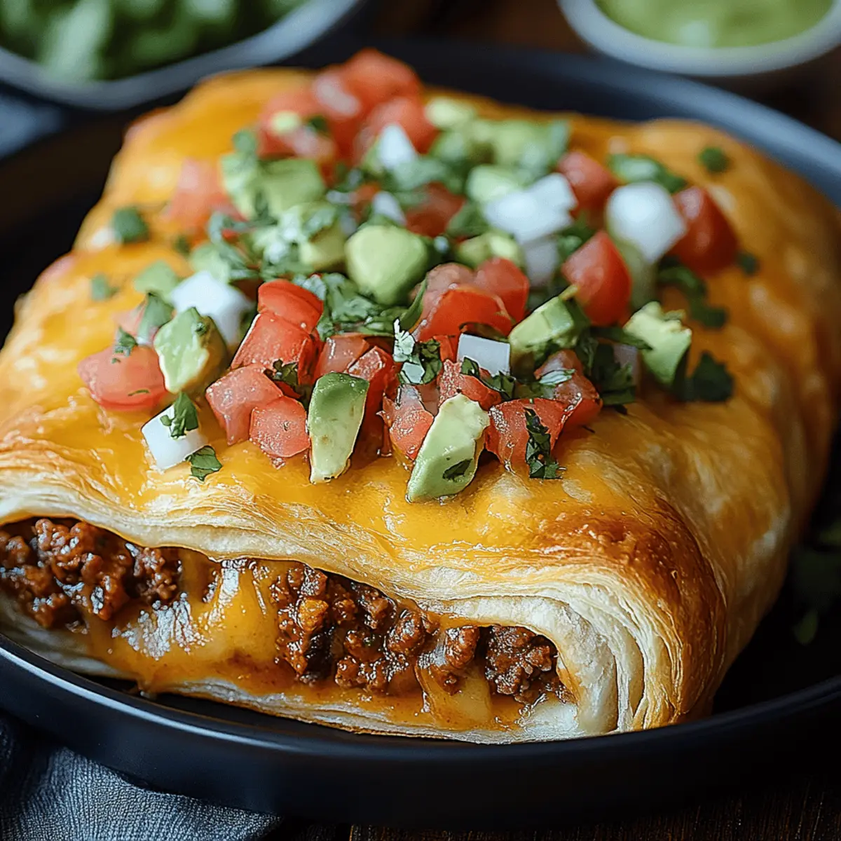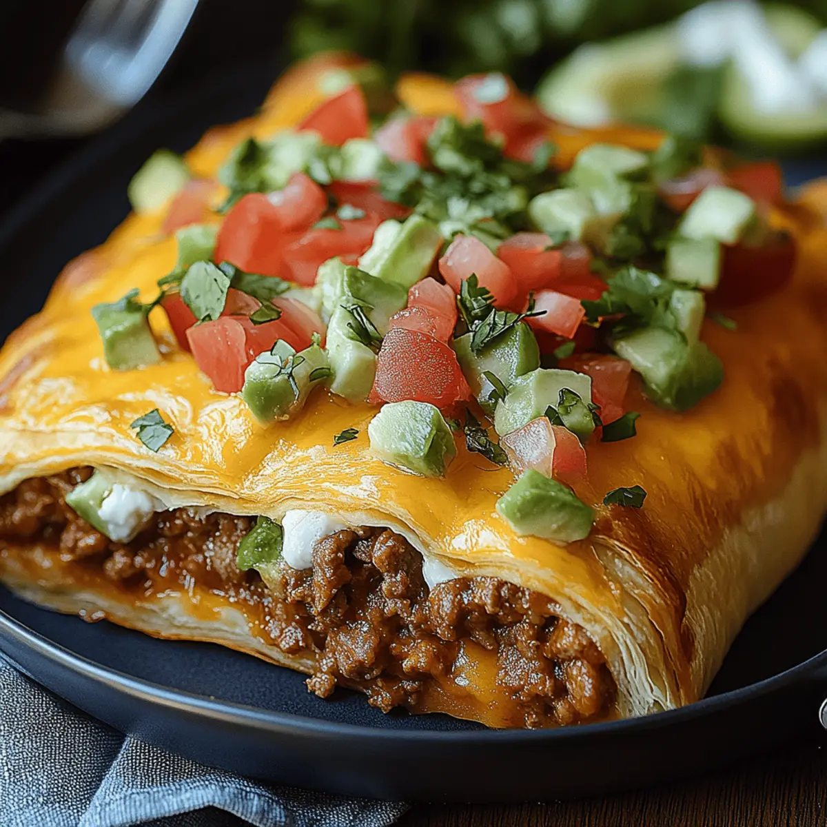 These Taco Crescent Roll Bake preparations are ideal for busy weeknights, allowing you to save precious time! You can cook the beef filling and assemble the entire dish up to 24 hours in advance. Simply prepare the filling and layer it with the cheese in the baking dish, then cover it tightly with plastic wrap and refrigerate. When you’re ready to bake, remove it from the fridge and let it sit at room temperature for about 15 minutes before popping it in the oven to ensure even cooking. This way, you ensure that your Taco Crescent Roll Bake is just as delicious as when freshly made, with no loss of flavor or texture!