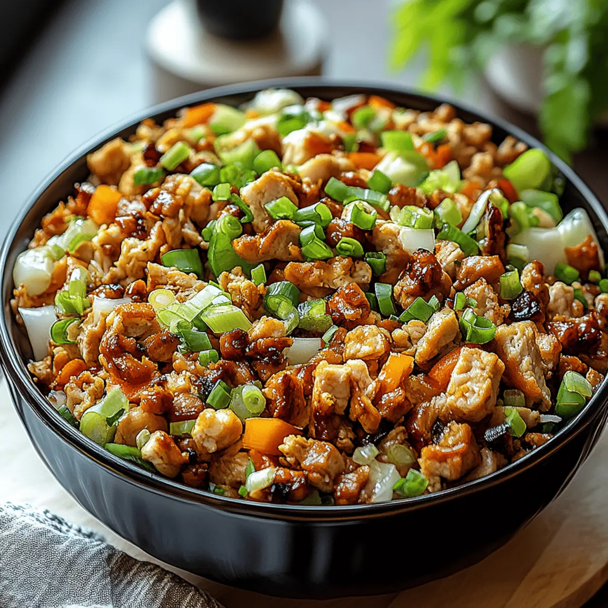 As I stood in my kitchen, the aroma of sizzling garlic and ginger filled the air, transporting me to a vibrant street market bustling with flavors. Today, I’m excited to share my Turkey Egg Roll Bowl, a healthy and customizable one-bowl meal that brings the essence of traditional egg rolls without the frying. Perfect for a busy weeknight, this dish not only takes just 30 minutes to prepare but is also gluten-free and packed with wholesome ingredients. Elevate your dinner game with colorful veggies and savory ground turkey, making healthy eating not just effortless, but truly delicious. Are you ready to explore this delightful twist on a classic favorite? Why is This Turkey Egg Roll Bowl Essential? Quick and Easy: With a cooking time of just 30 minutes, this dish is perfect for busy weeknights when you crave something delicious yet healthy. Customizable Options: Whether you’re gluten-free or seeking vegetarian alternatives, the Turkey Egg Roll Bowl adapts to your dietary needs effortlessly, making it a versatile choice for everyone. Flavor Explosion: The harmonious blend of savory turkey, crunchy veggies, and aromatic spices guarantees each bite is bursting with flavor, reminiscent of your favorite take-out but guilt-free! Meal Prep Friendly: Ideal for meal prepping, this bowl keeps well in the fridge for up to four days, allowing you to enjoy wholesome meals ready in an instant. Looking for more inspiration? Try our Honey Garlic Turkey for an equally delightful meal! Turkey Egg Roll Bowl Ingredients • Here’s what you’ll need to create this delicious dish: For the Bowl Ground Turkey – A lean protein that forms the hearty base of your bowl; you can substitute with ground chicken or tofu for a different flavor. Cabbage – Adds crunch and nutritional value; feel free to use coleslaw mix or kale as alternatives for change in texture. Carrots – Provide sweetness and vibrant color; grated or thinly sliced work best, and zucchini can be a lovely substitute too. Garlic – Elevates the dish with depth; fresh garlic delivers the best flavor but garlic powder is a handy alternative if needed. Ginger – Infuses warmth and aromatic notes; fresh ginger is ideal, while ground ginger works in a pinch—just use less! Green Onions – Offers freshness and a sharp contrast to the savory ingredients; chives can be a milder substitute if preferred. For the Sauce Soy Sauce – Brings that savory umami punch; opt for tamari to keep your Turkey Egg Roll Bowl gluten-free. Rice Vinegar – Adds a zesty acidity that’s essential for balance; apple cider vinegar makes a suitable swap. Sesame Oil – Imparts a nutty flavor; you can replace it with olive or avocado oil, but be aware it may alter the dish’s flavor slightly. Optional Chili Sauce – Adds heat; adjust the amount according to your spice tolerance for the perfect kick! Enjoy your culinary journey crafting this vibrant Turkey Egg Roll Bowl! Step‑by‑Step Instructions for Turkey Egg Roll Bowl Step 1: Prep Ingredients Begin by finely shredding the cabbage and carrots, ensuring they’re ready to add crunch to your Turkey Egg Roll Bowl. Mince the garlic and ginger, and chop the green onions, setting them aside in separate bowls. This prep will streamline the cooking process and ensure your flavors meld beautifully as you progress. Step 2: Sauté Aromatics In a large skillet, heat 1 tablespoon of sesame oil over medium heat until shimmering. Add the minced garlic and ginger, sautéing them for about 1 minute until they’re fragrant and lightly golden. This step will build a flavorful base for your Turkey Egg Roll Bowl, creating an inviting aroma that fills your kitchen. Step 3: Cook Turkey Add 1 pound of ground turkey to the pan, breaking it up with a spatula. Cook for 5-7 minutes, stirring frequently, until the turkey is browned and cooked through, with no pink remaining. Once the meat reaches an even golden color, it’s ready for the next burst of flavor that will make this bowl irresistible. Step 4: Add Vegetables Stir in the shredded cabbage and carrots, cooking for an additional 3-4 minutes. You want them to become tender-crisp, preserving some bite for a lovely texture in your Turkey Egg Roll Bowl. As the vegetables soften, they will mingle with the turkey, enhancing the dish’s vibrant colors and flavors. Step 5: Season Pour in 3 tablespoons of soy sauce, 1 tablespoon of rice vinegar, and the remaining sesame oil, sautéing the mixture for another 2-3 minutes. This seasoning step will coat the ingredients, creating a harmonious balance of savory and tangy flavors that are essential to your Turkey Egg Roll Bowl. Step 6: Add Freshness Remove the skillet from heat and toss in the chopped green onions and optional chili sauce. Mix everything well to combine the fresh ingredients, enriching the overall flavor profile of your Turkey Egg Roll Bowl. The residual heat will slightly wilt the green onions, adding a delightful fresh note. Step 7: Serve Spoon the turkey and vegetable mixture into serving bowls, raining sesame seeds or a drizzle of sriracha on top if desired. As you plate your Turkey Egg Roll Bowl, admire the colorful array of fresh ingredients and savor the satisfaction of this healthy, one-bowl meal that’s as delicious to eat as it is to behold. Helpful Tricks for Turkey Egg Roll Bowl Don’t Overcook the Turkey: Ensure the ground turkey is cooked just until browned. Overcooking can lead to dryness, ruining the fabulous texture of your Turkey Egg Roll Bowl. Prep Ahead for Speed: Chop your veggies and aromatics in advance! Keeping them ready in your fridge can transform your cooking time, making this healthy meal even quicker to whip up. Adjust to Taste: If you love spices, go crazy with the optional chili sauce! Start with a small amount, then add more to your liking. Customize your Turkey Egg Roll Bowl to suit your flavor preference! Store Smartly: For meal-prepping, let your Turkey Egg Roll Bowl cool before placing it 